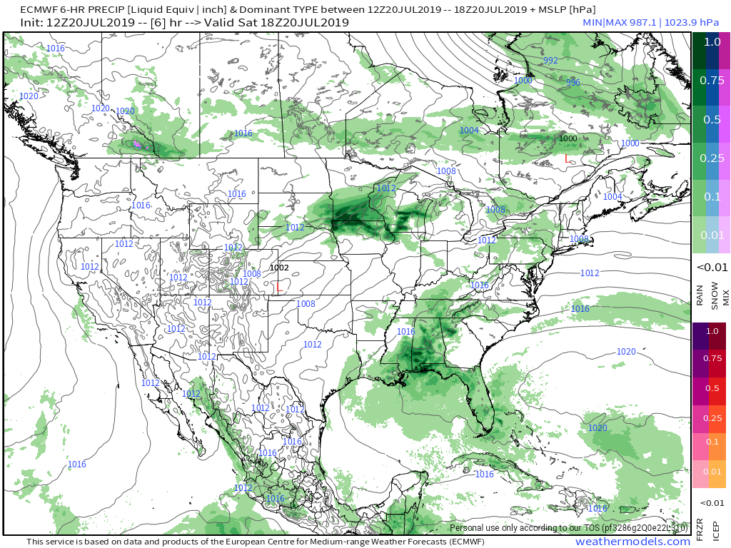 9-km ECMWF USA Cities United States Precip Type & MSLP 6