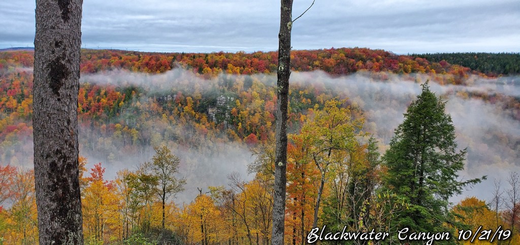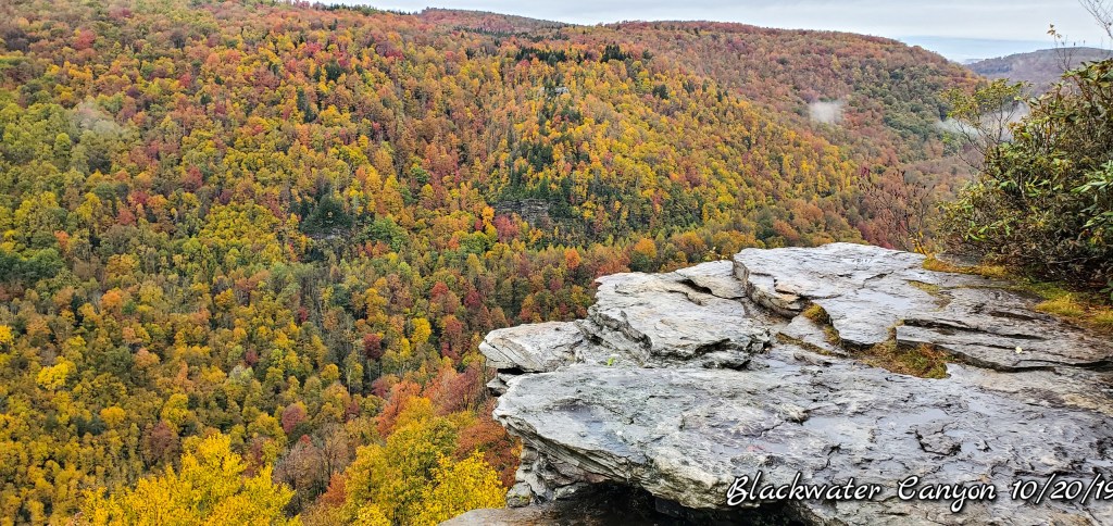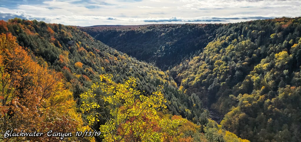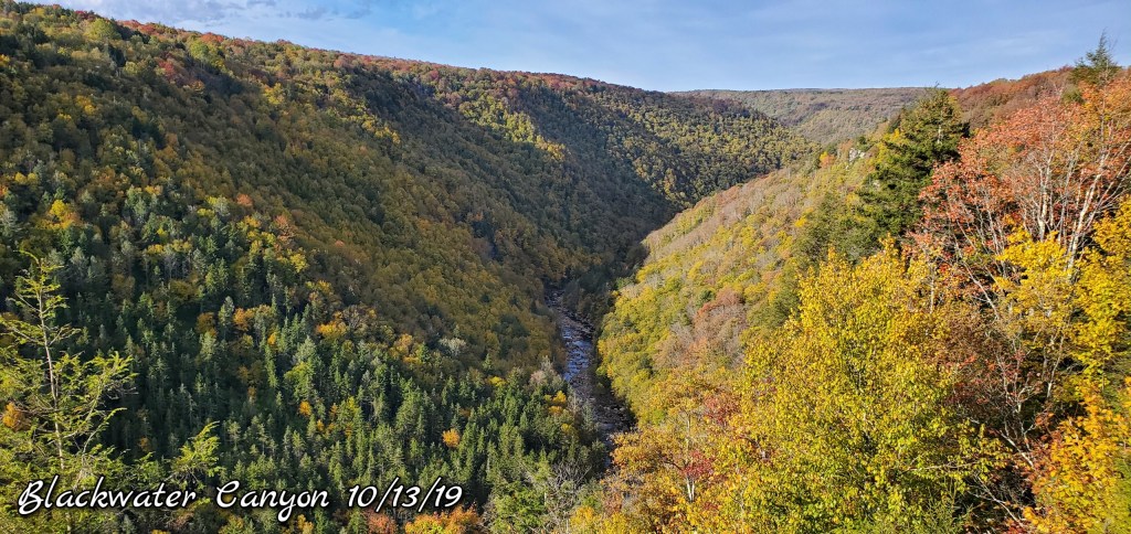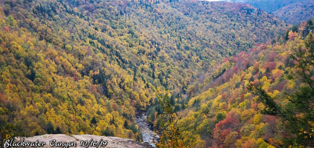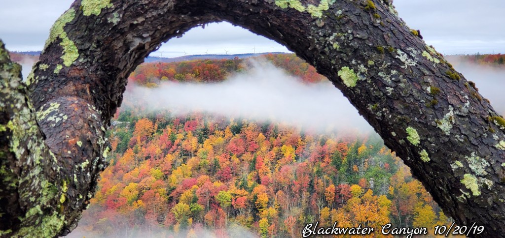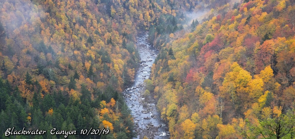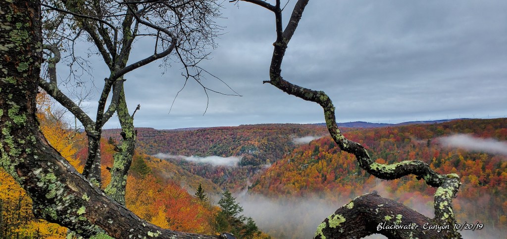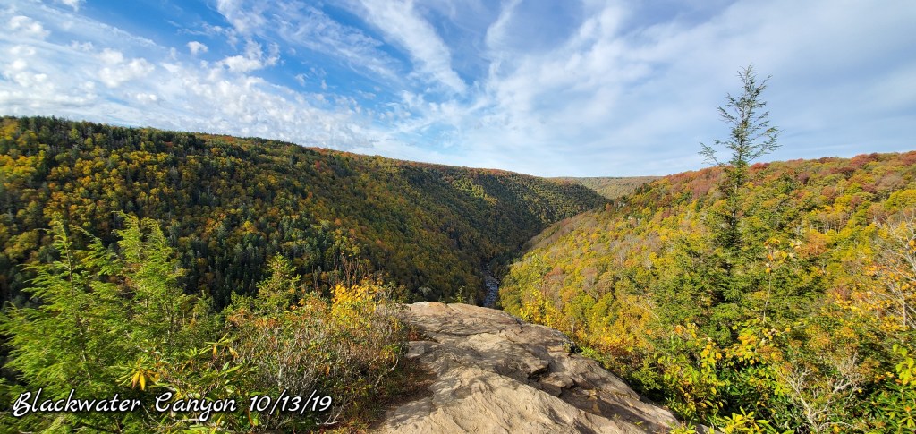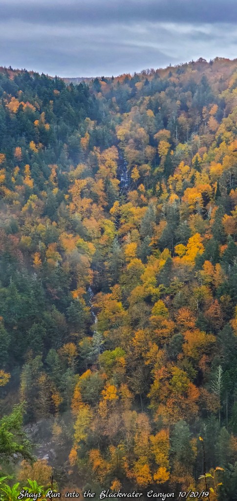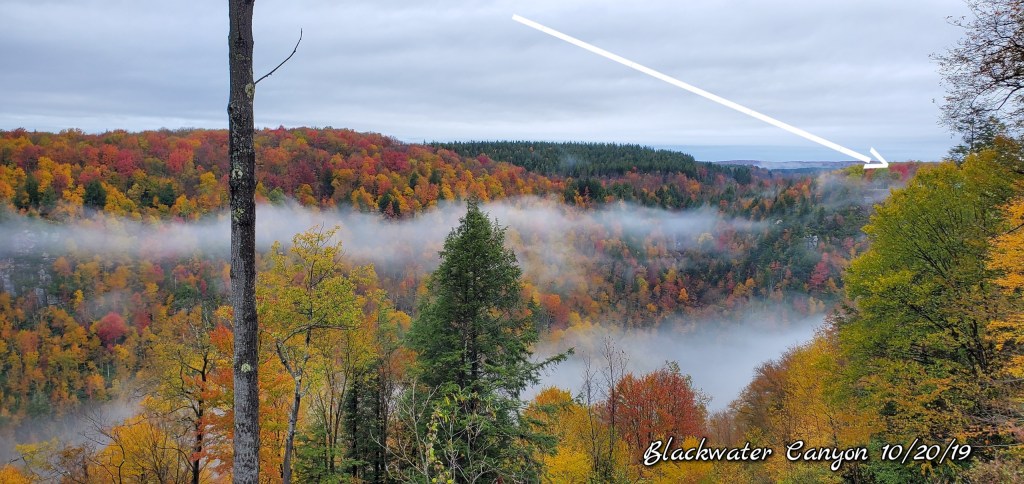 We will begin at Pendleton Point. A superb overlook view across to Shays Run and the crazy golden yellow birches, as well as up and down river of the Blackwater Canyon.