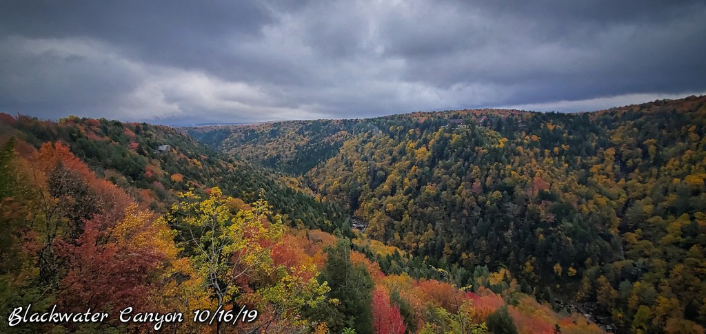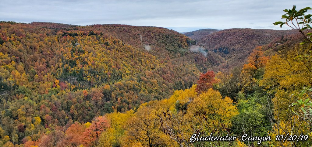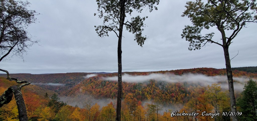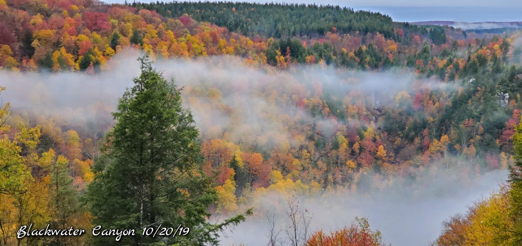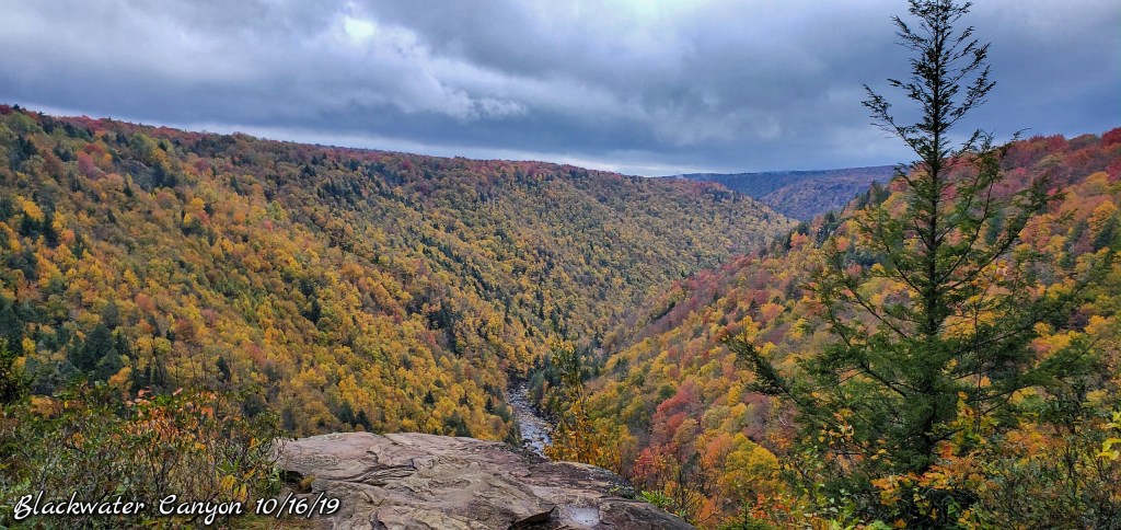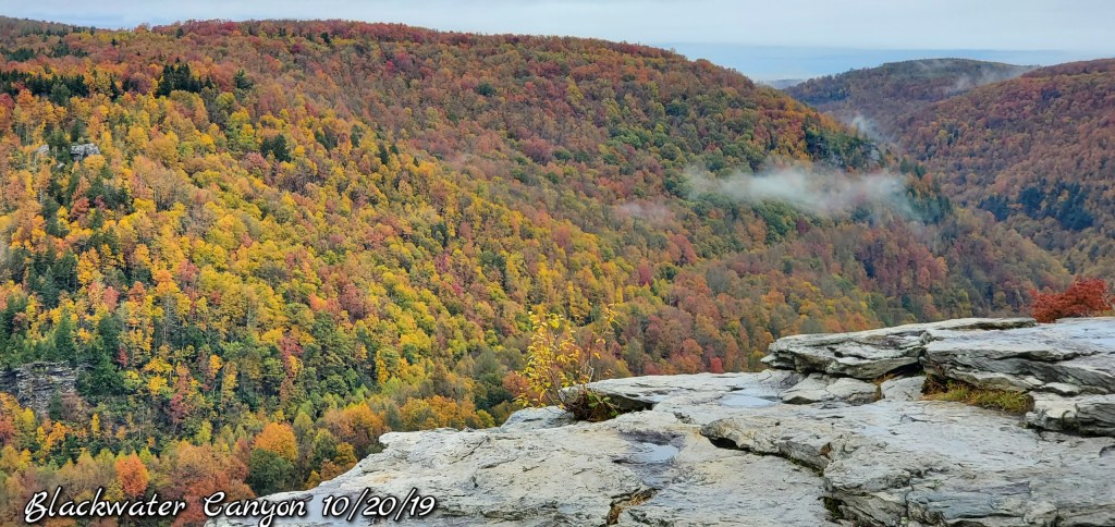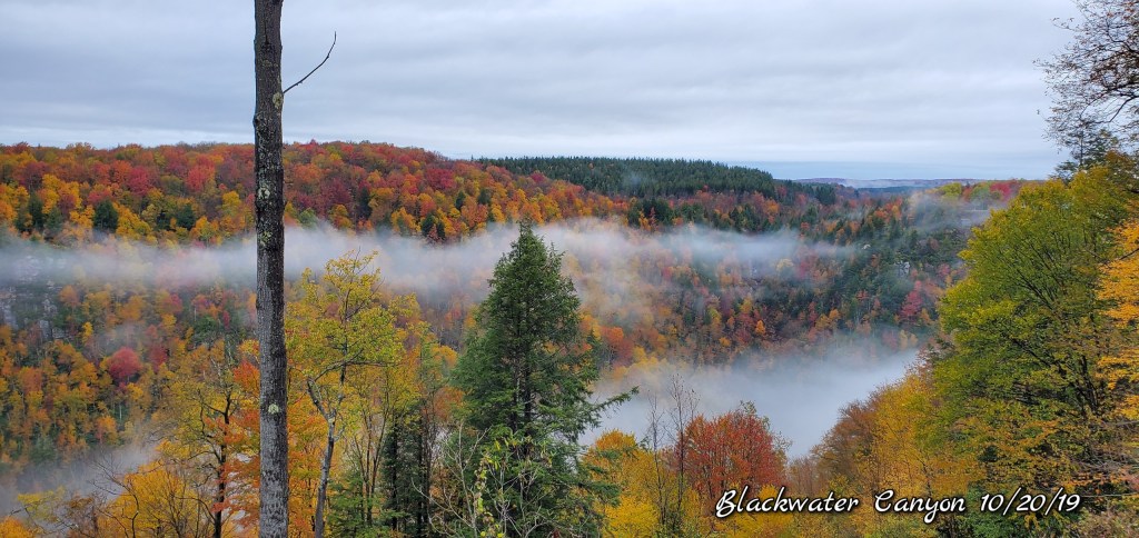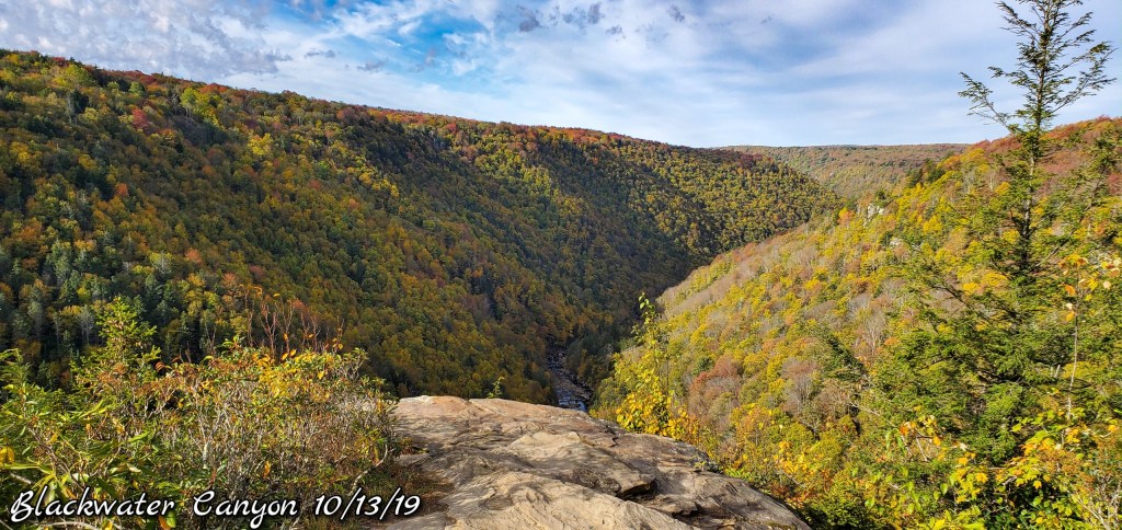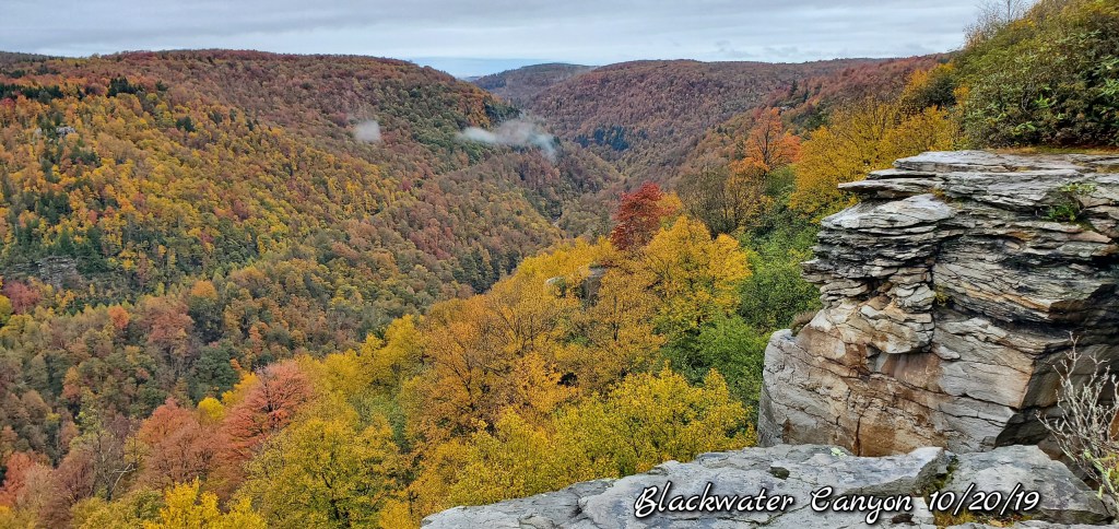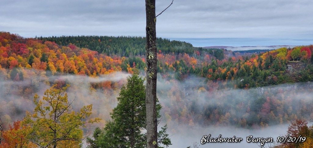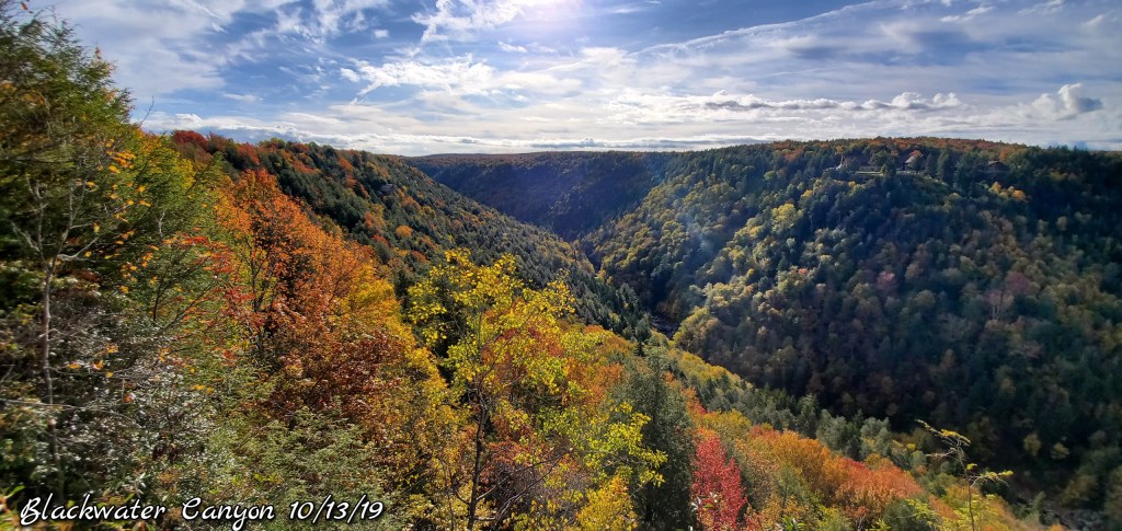 We will begin at Pendleton Point. A superb overlook view across to Shays Run and the crazy golden yellow birches, as well as up and down river of the Blackwater Canyon.