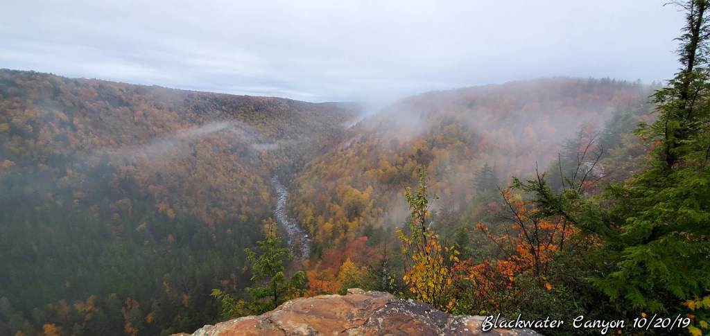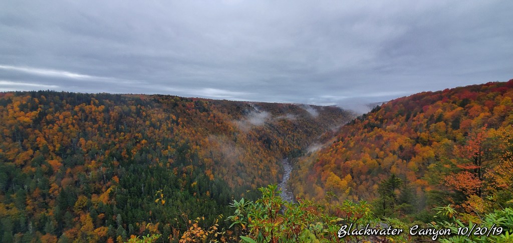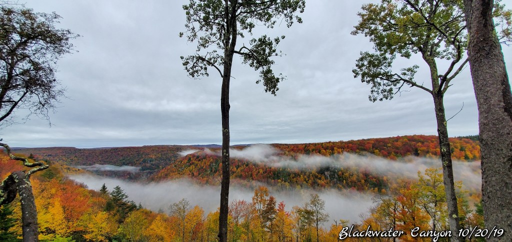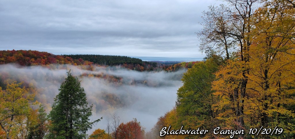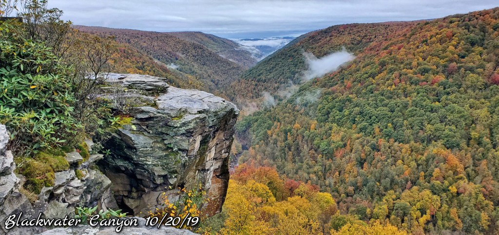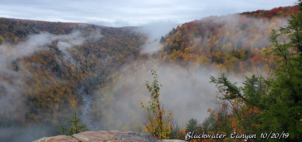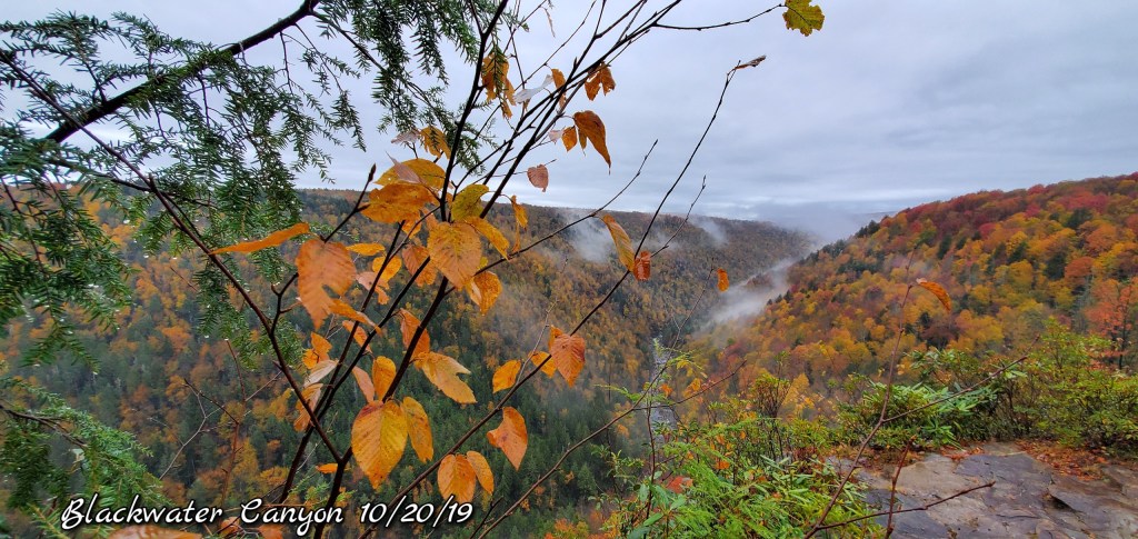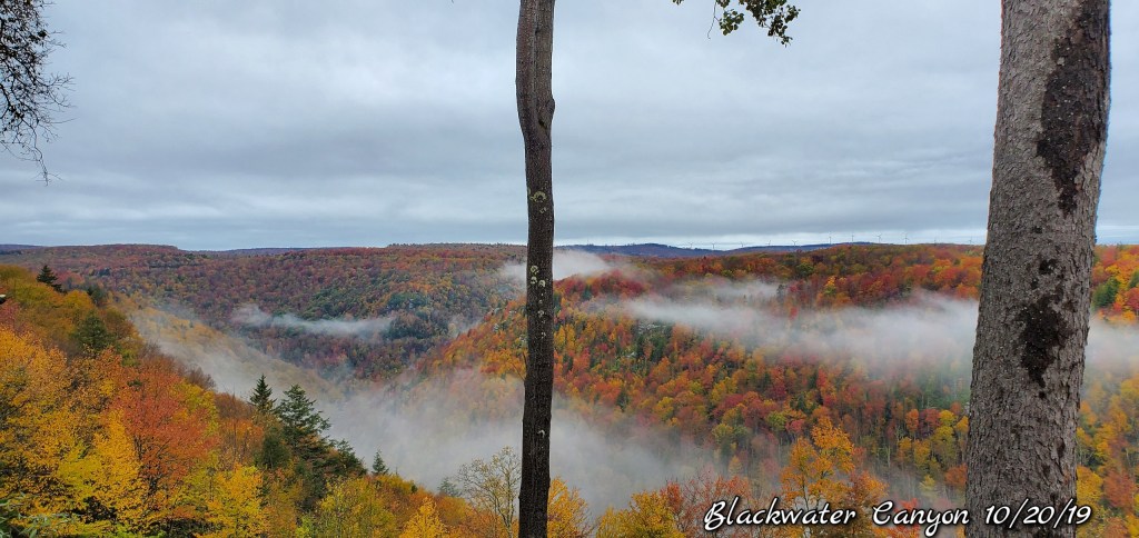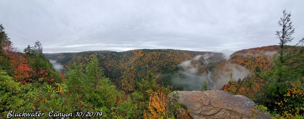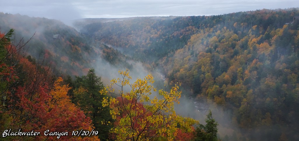 We will begin at Pendleton Point. A superb overlook view across to Shays Run and the crazy golden yellow birches, as well as up and down river of the Blackwater Canyon.