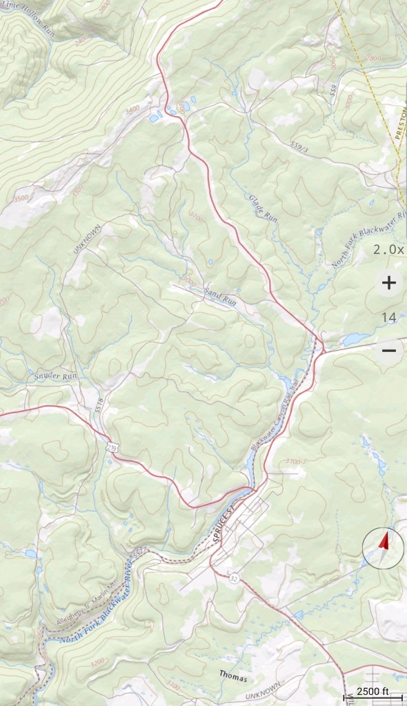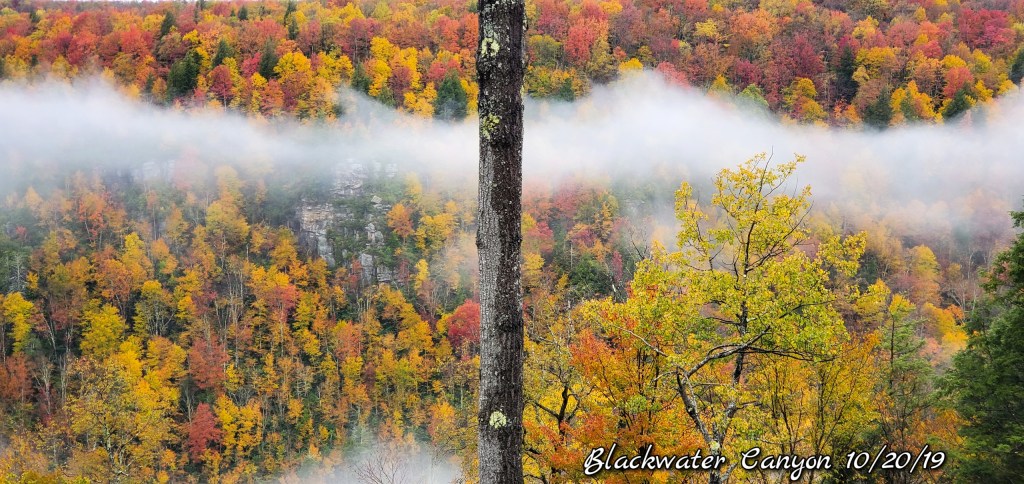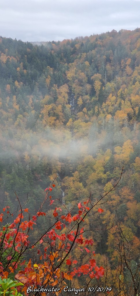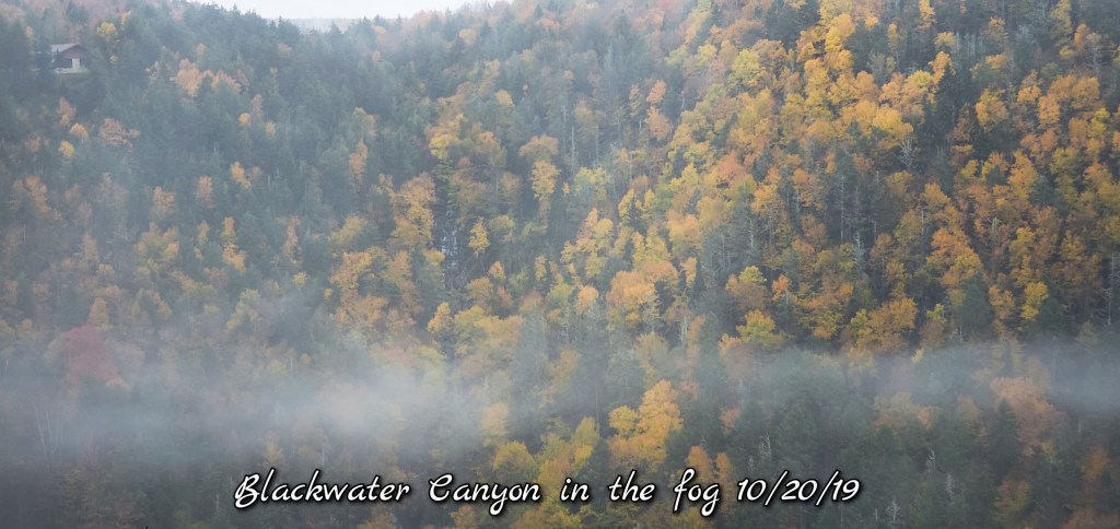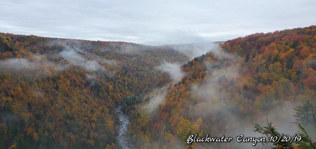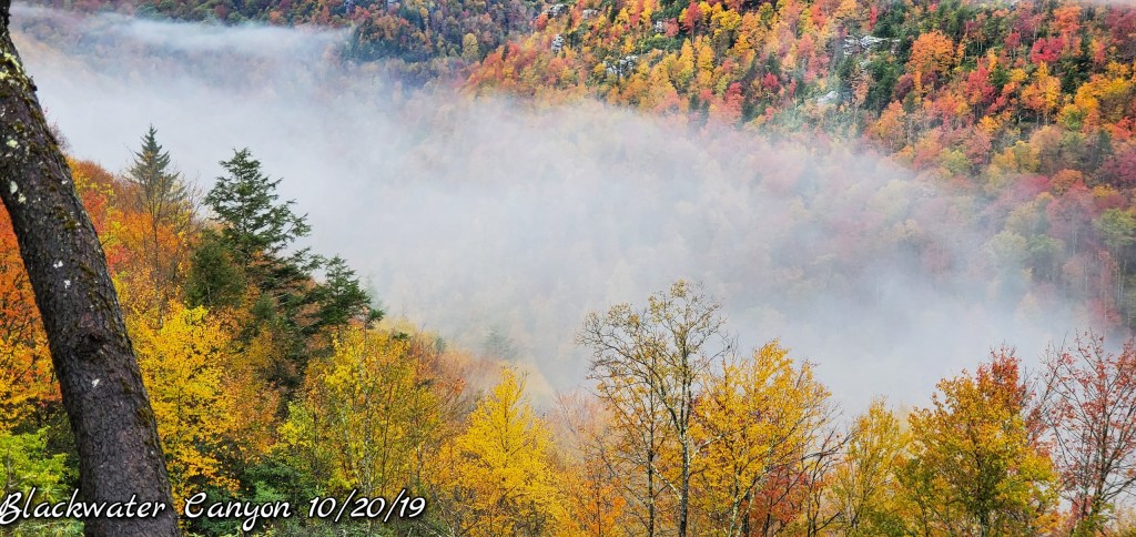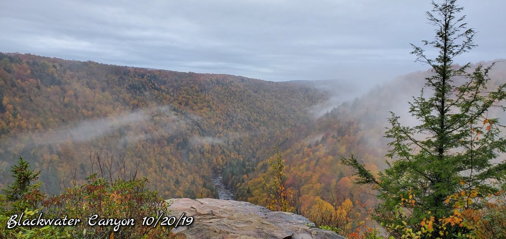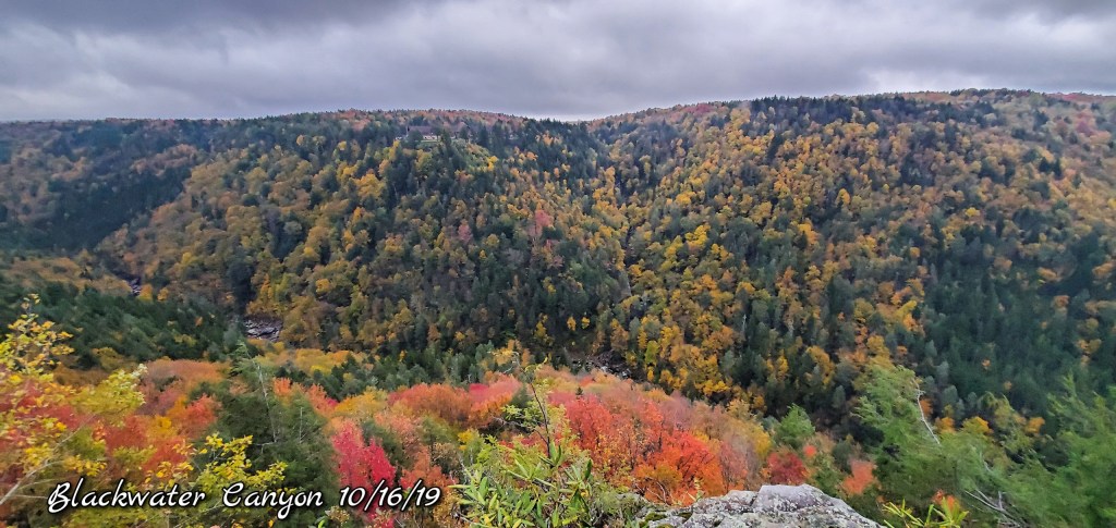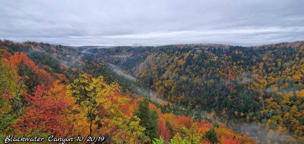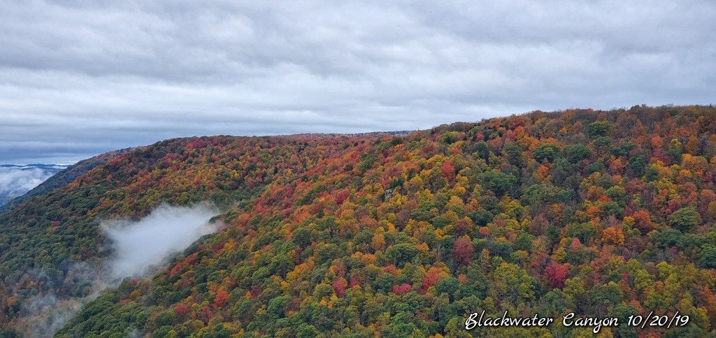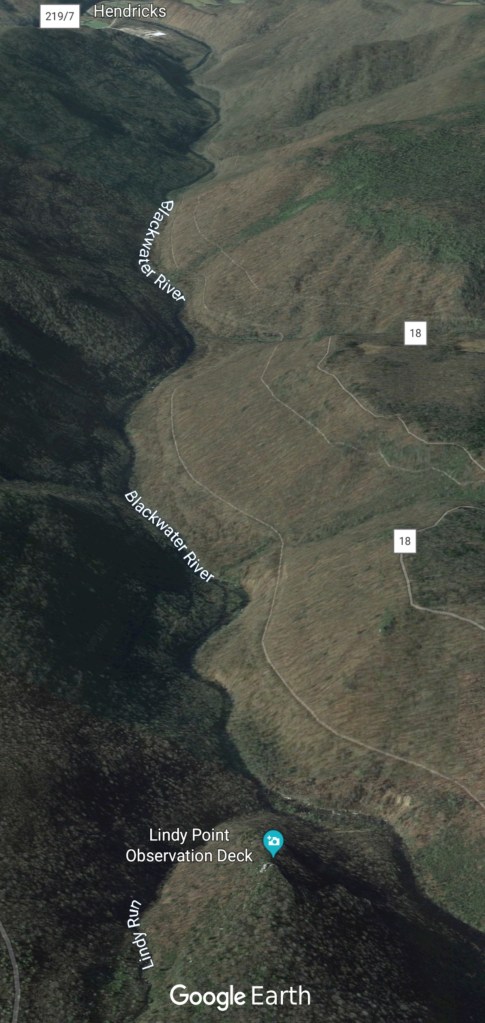 We will begin at Pendleton Point. A superb overlook view across to Shays Run and the crazy golden yellow birches, as well as up and down river of the Blackwater Canyon.