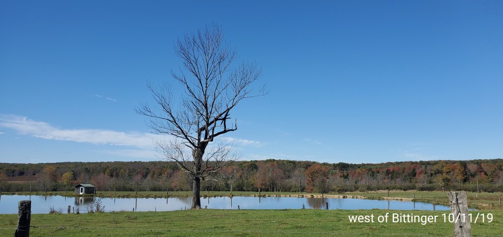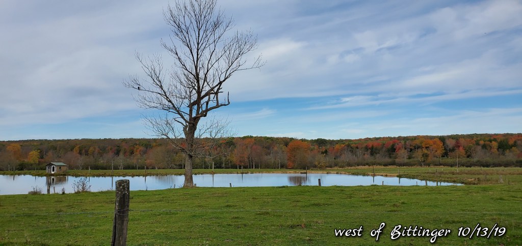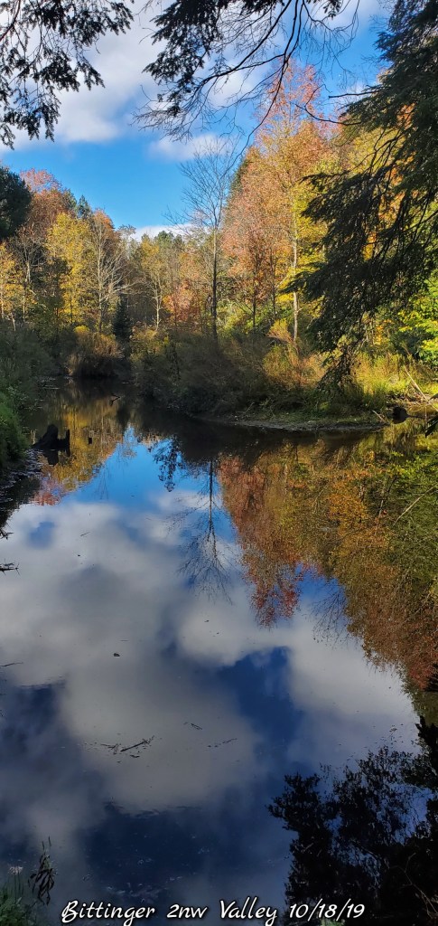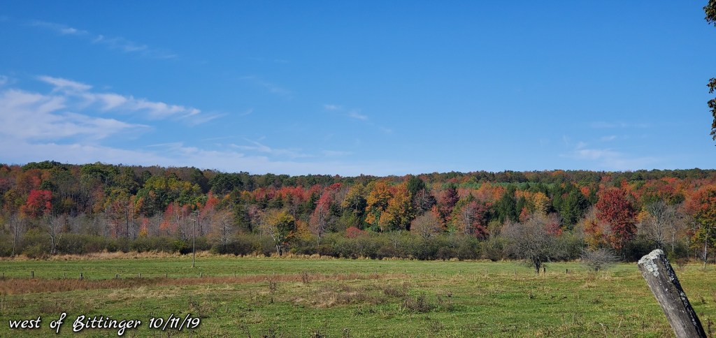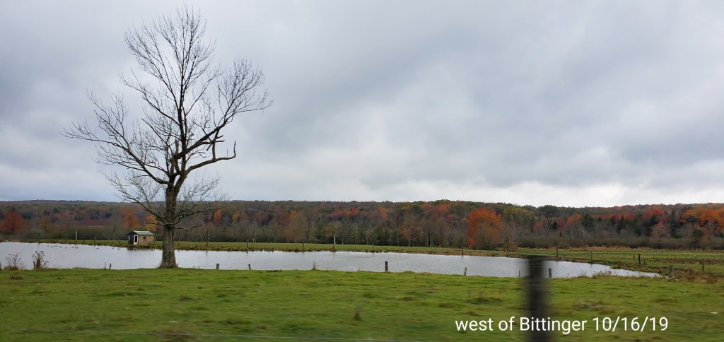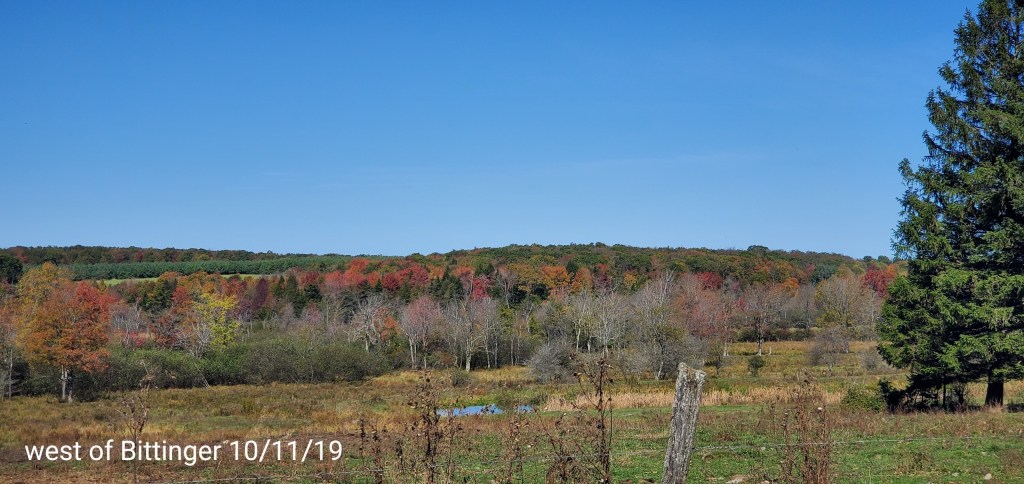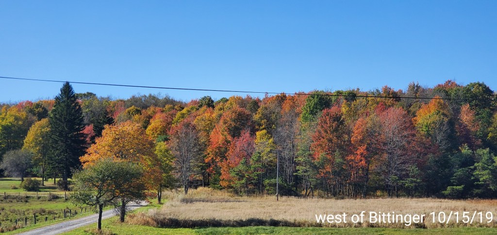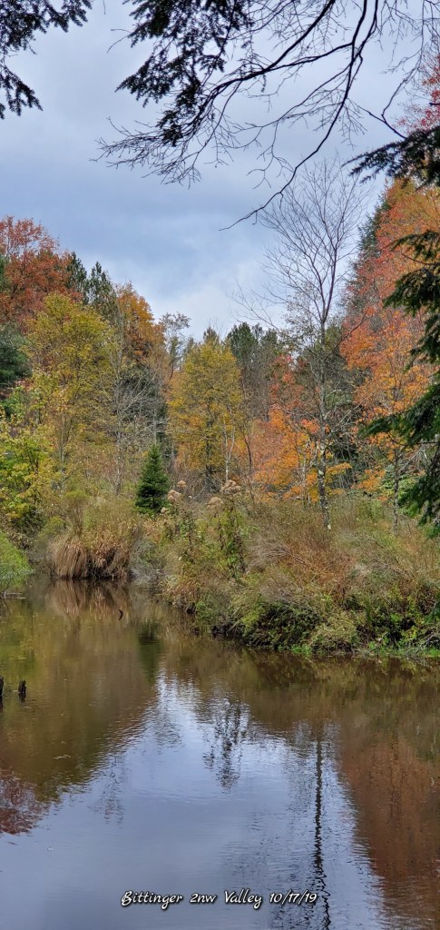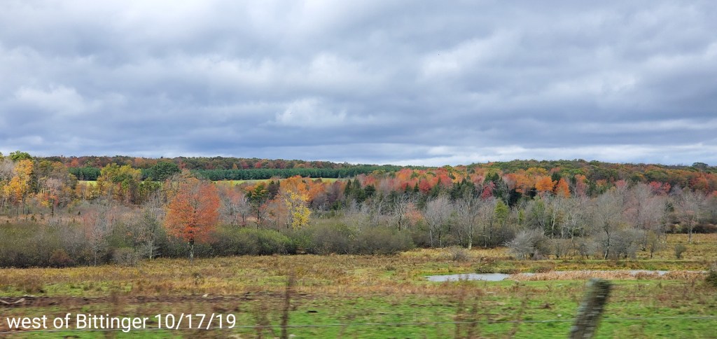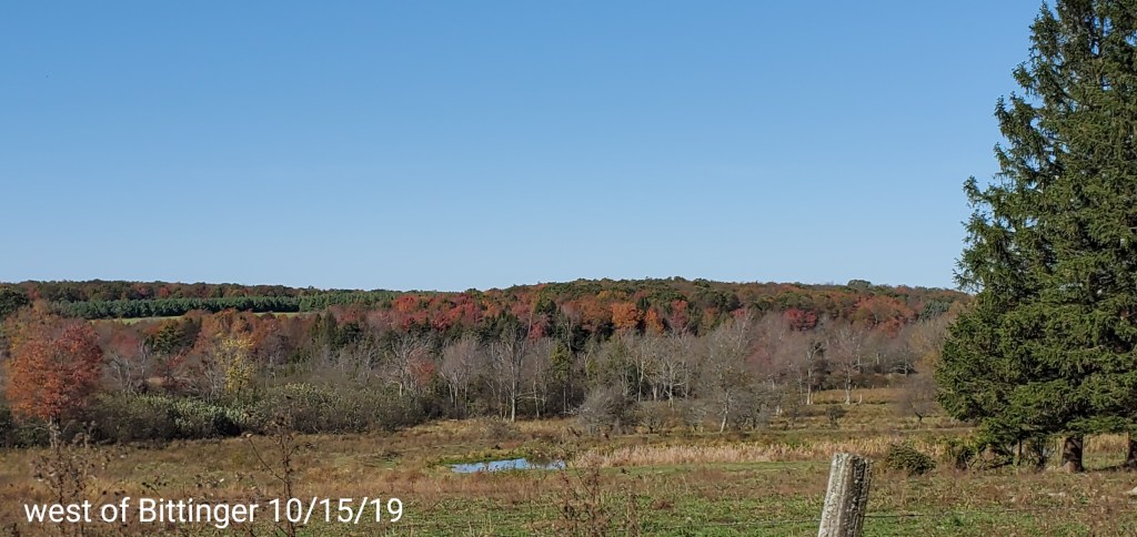 The immediate Lake area is still a slow go, a little more color coming in. But being heavily oak dominated, and red oak, it’s a slow transition. Always is On north from Cherry Creek where the birches and some red maple are colorful, the colors are running out with spotty exceptions near Bittinger with lots on the ground now