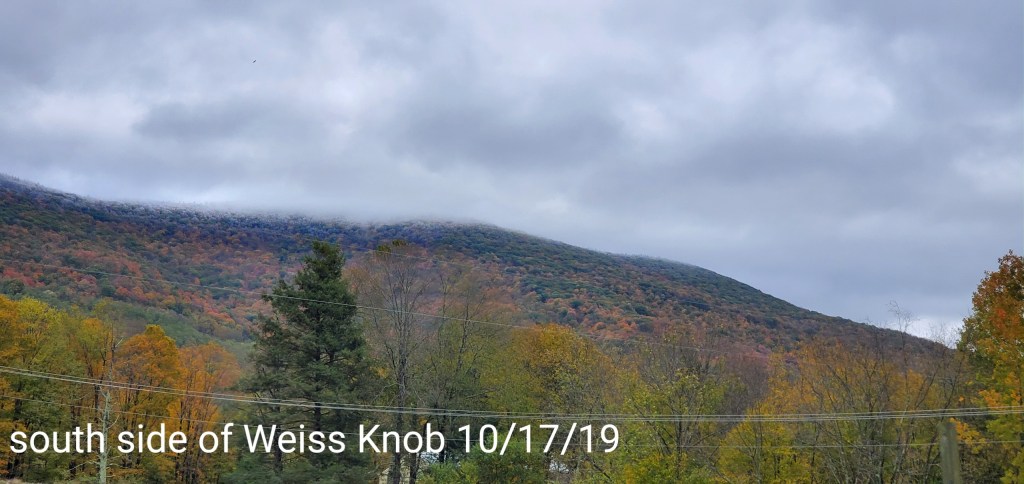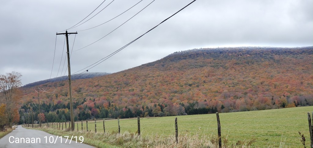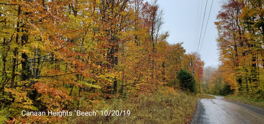 Coming up Canaan Mt from Davis, still some nice color. Lots have fell but not bad. On top, a lot of the understory beech are peaking out with spotty maples retaining nice color. On back Canaan Mt, well and wayyy past peak and a snowless winter look almost.