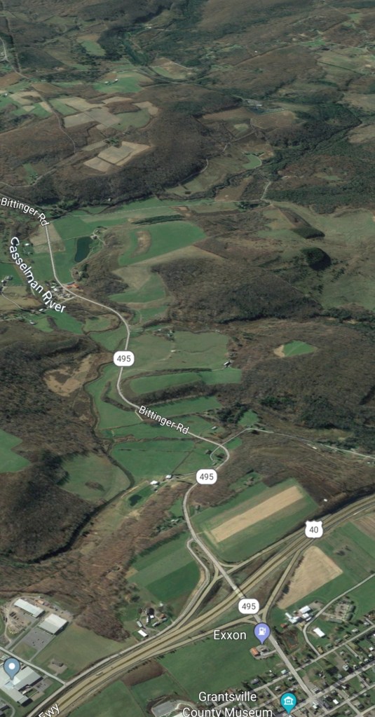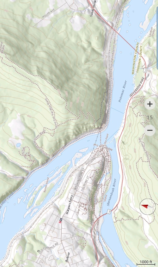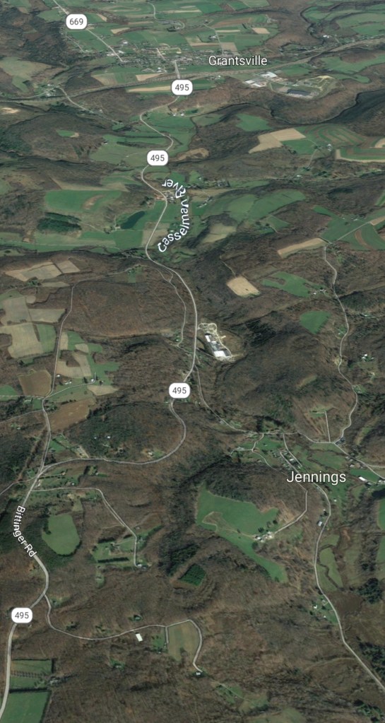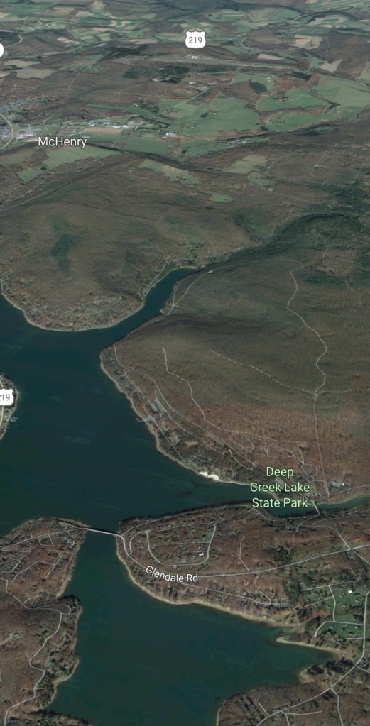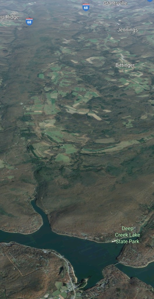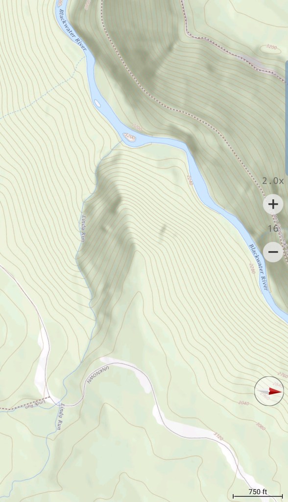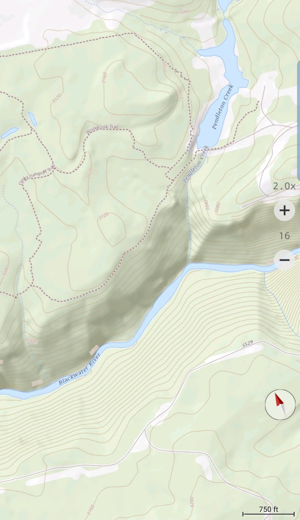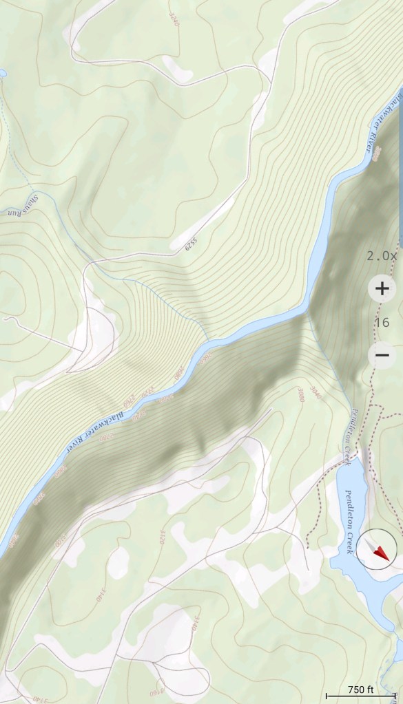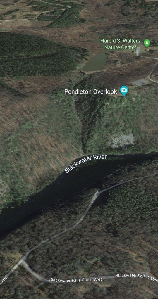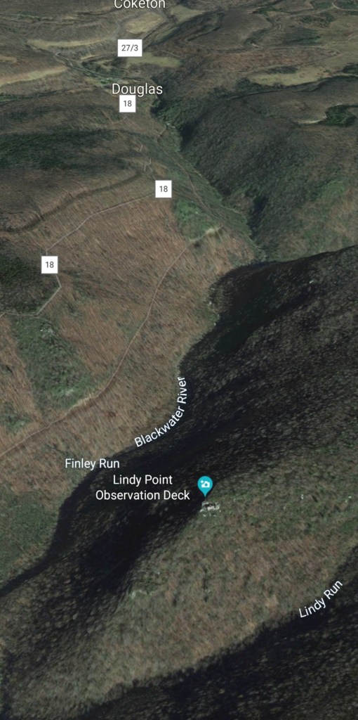 A jump across the Canyon looking back towards Pendleton Point, Pendleton Run and up and down river of the Blackwater.