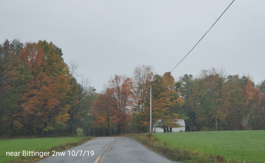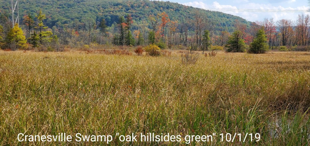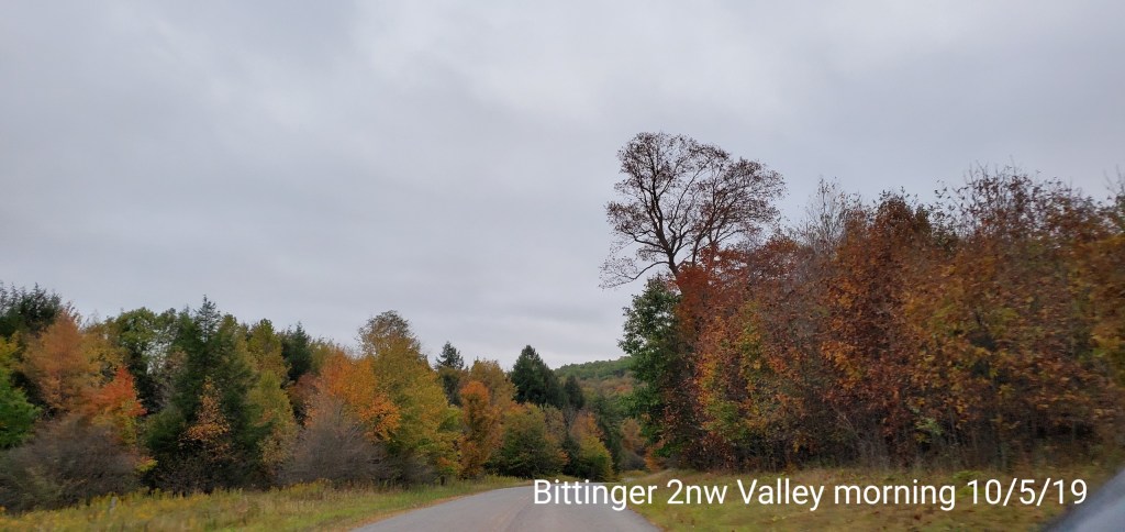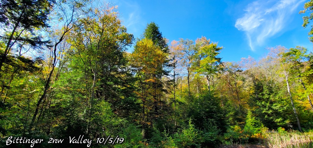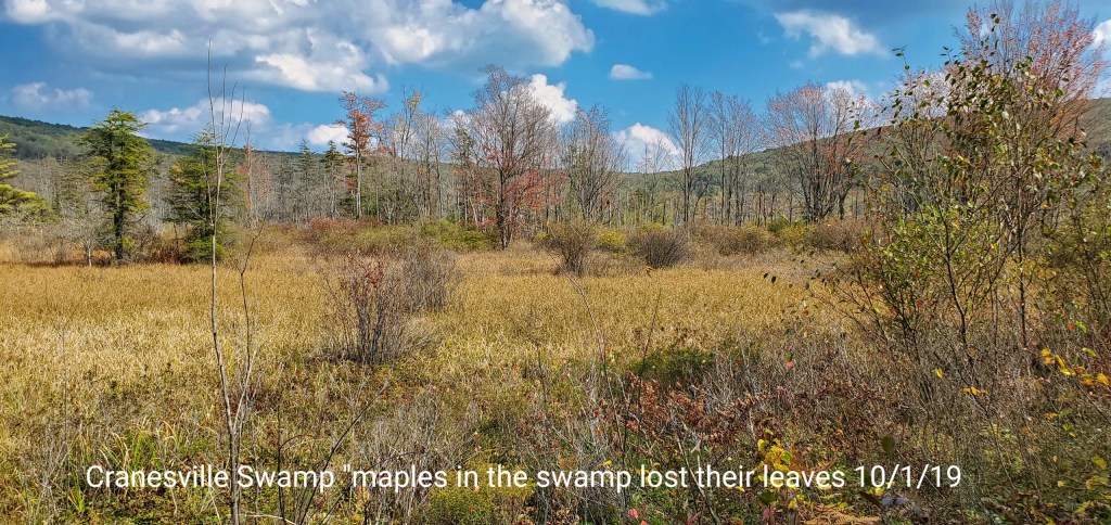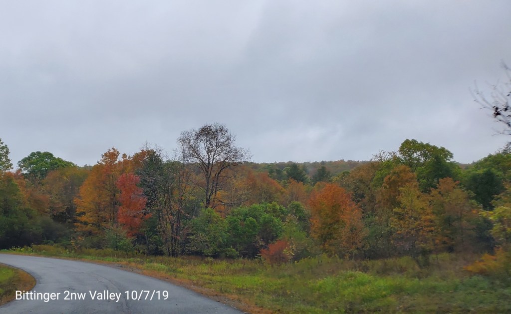 The swamp has some color, but like elsewhere, the maple is dropping fast. Some nice maples have shed lots of colorful foliage The hillsides, it appears a little color, but lots of greens and bare trees. Especially on the windy west facing sides.
