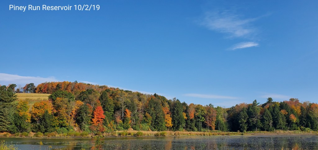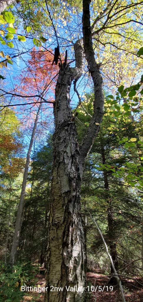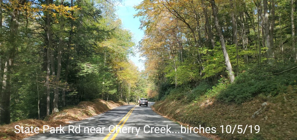 Birches are in color along Cherry creek, and once up near the Rock Lodge and out, the maples have either already fell, or are yet in color. Oaks green,