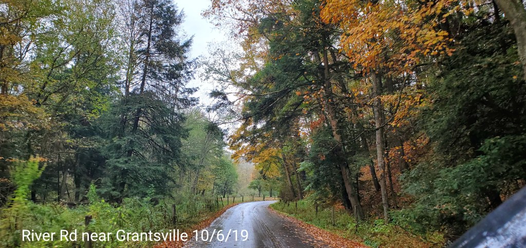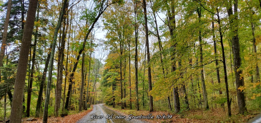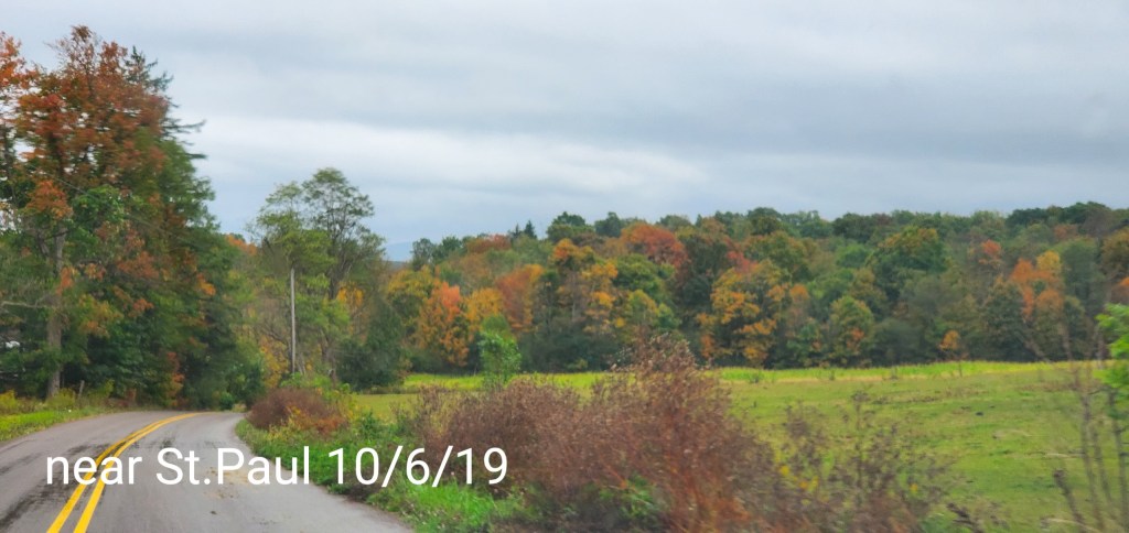 Maples have peaked and foliage dropping, birch are nice along the rivers. Oaks as typical, green. This area has a lot of maple.