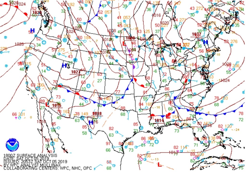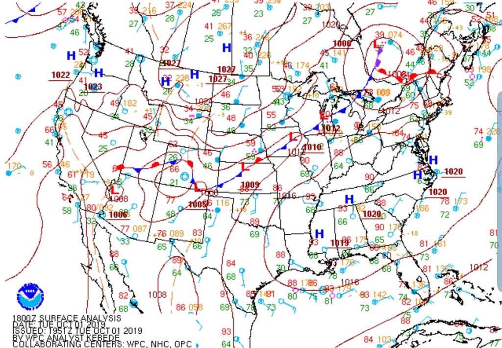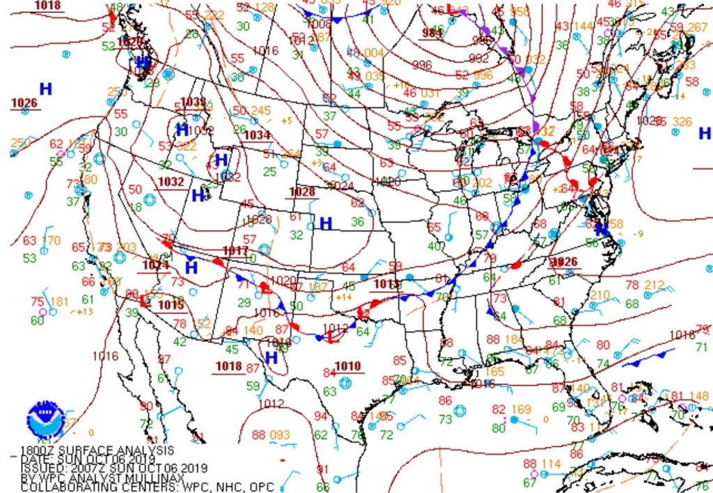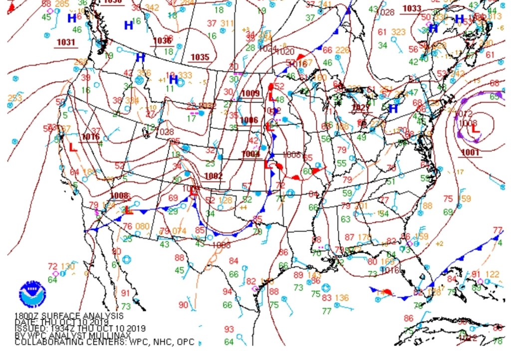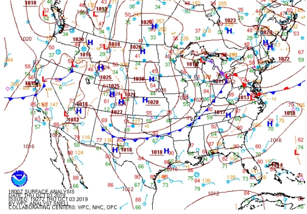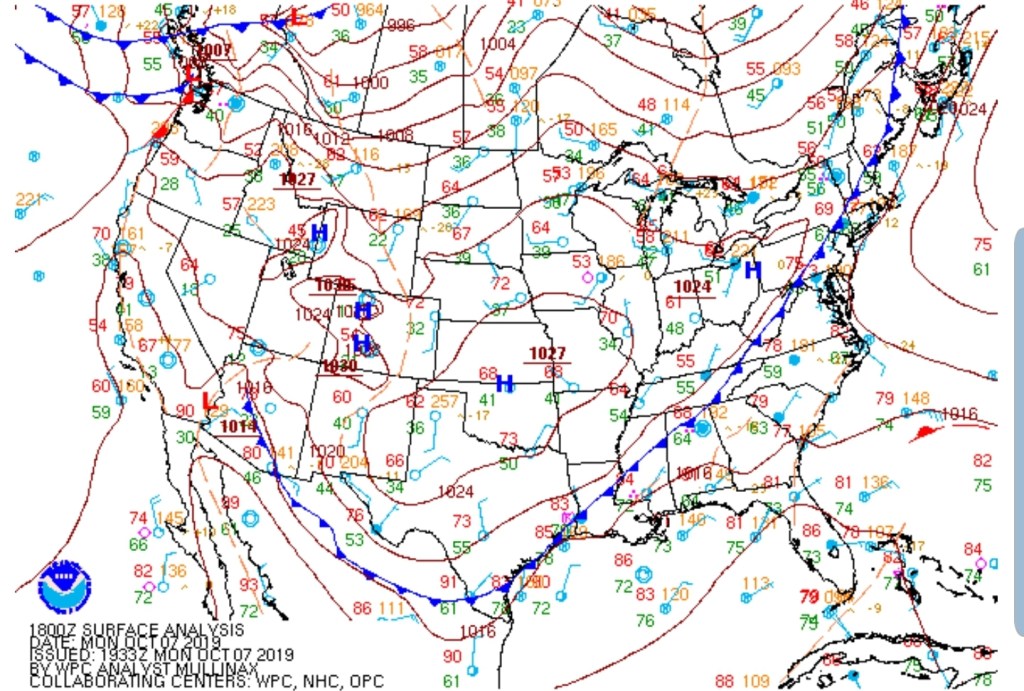 Surface features and 500mb height anomalies and flow