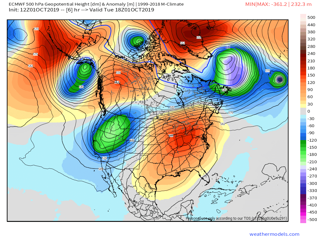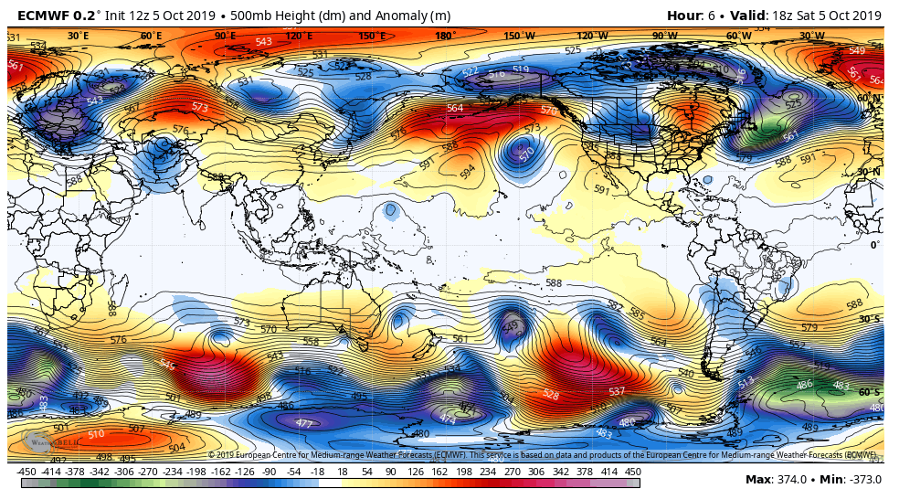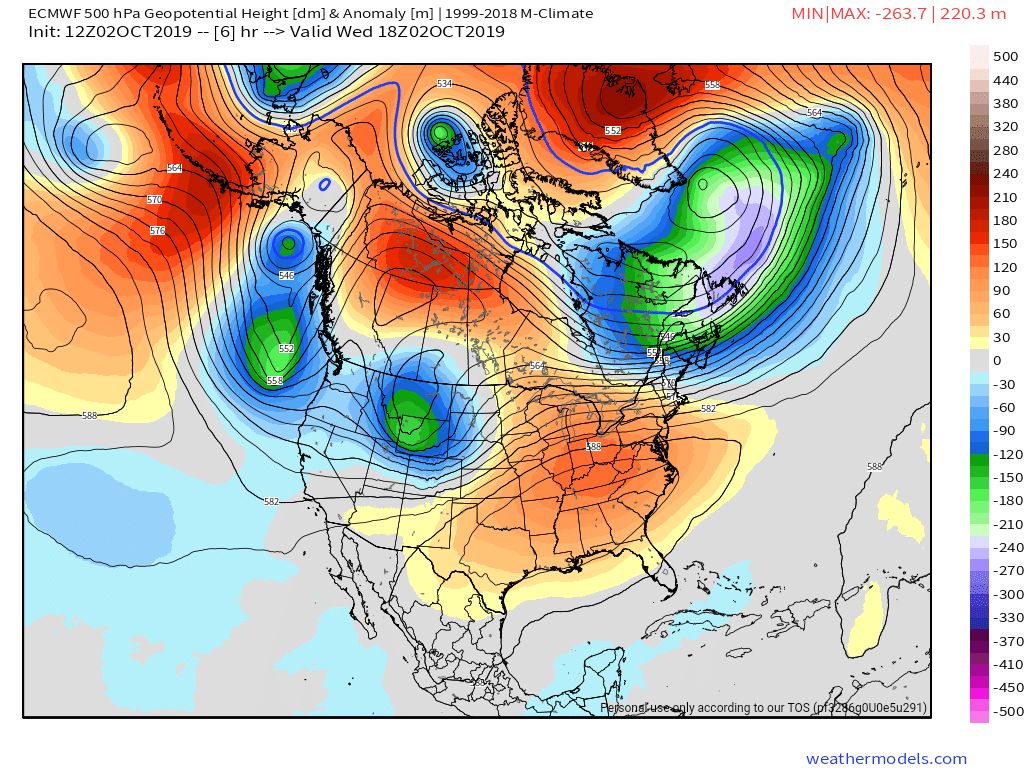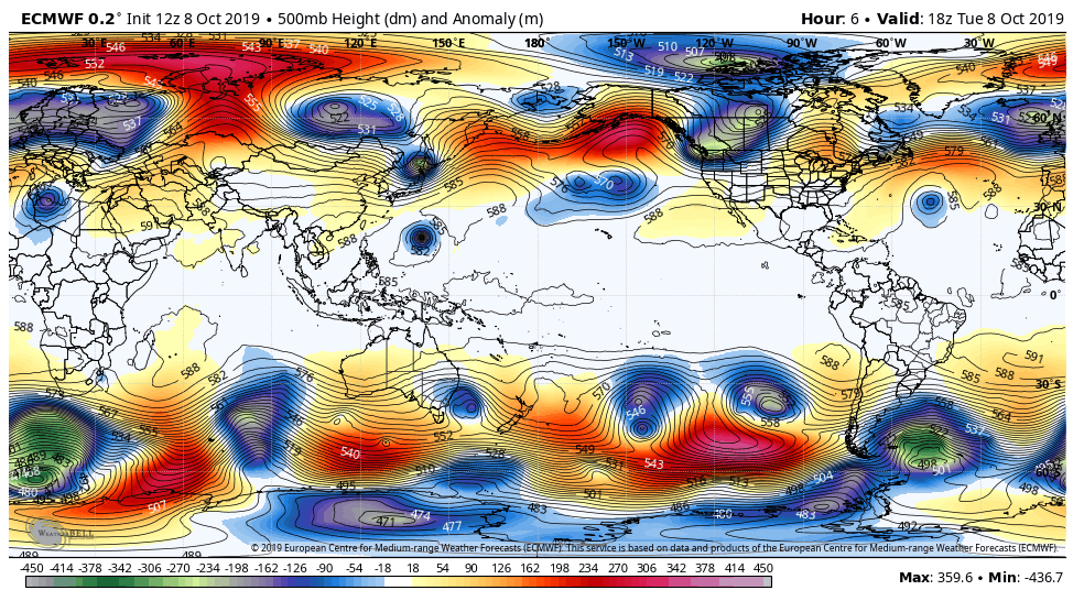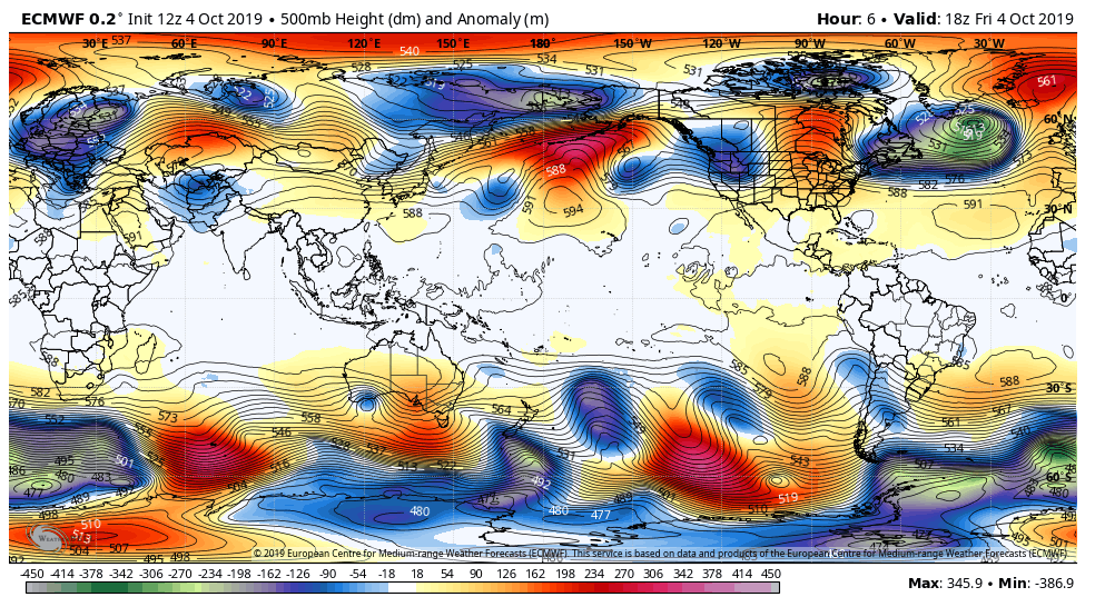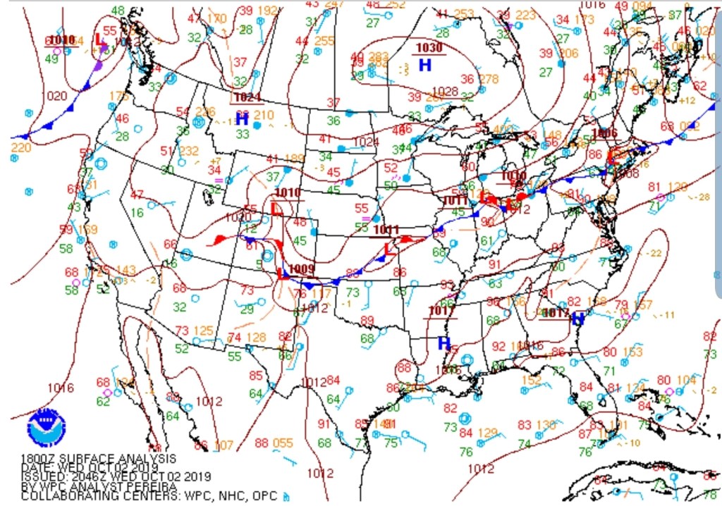 Surface features and 500mb height anomalies and flow