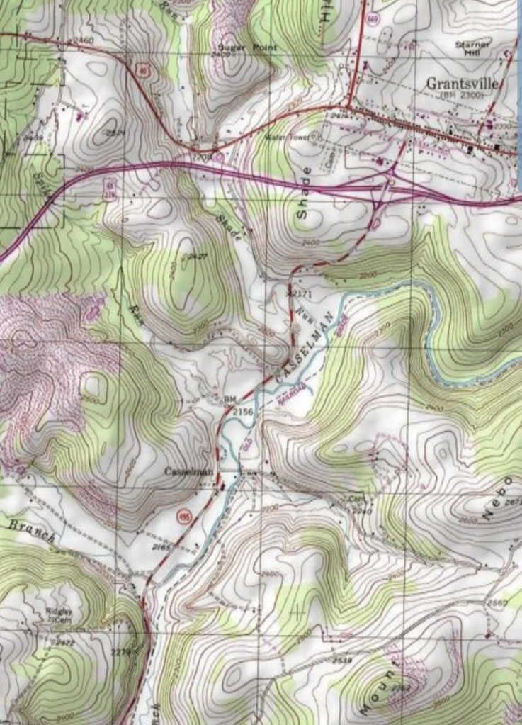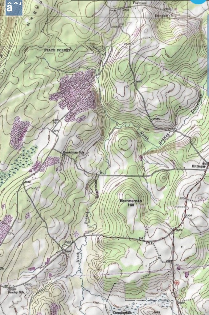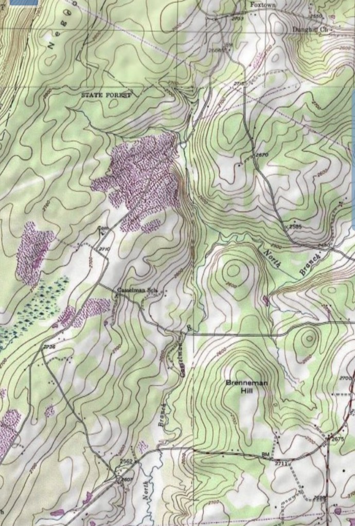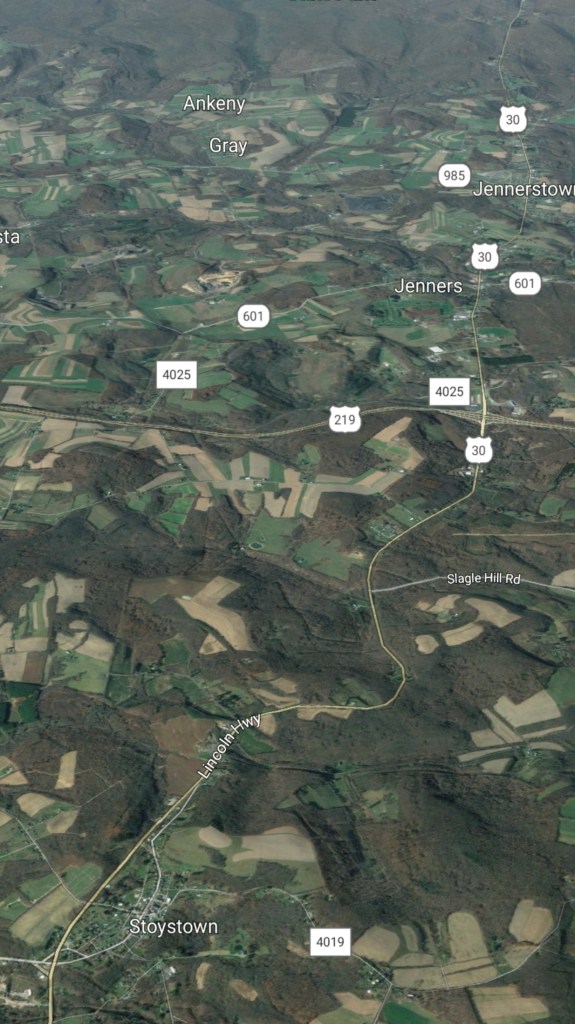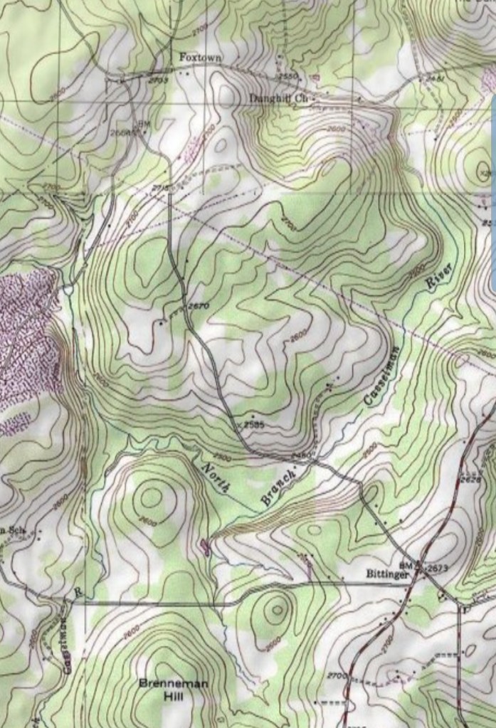 Further north where the north branch of the Cassleman crosses Rock Lodge Rd, backdropped by Brenneman Hill.