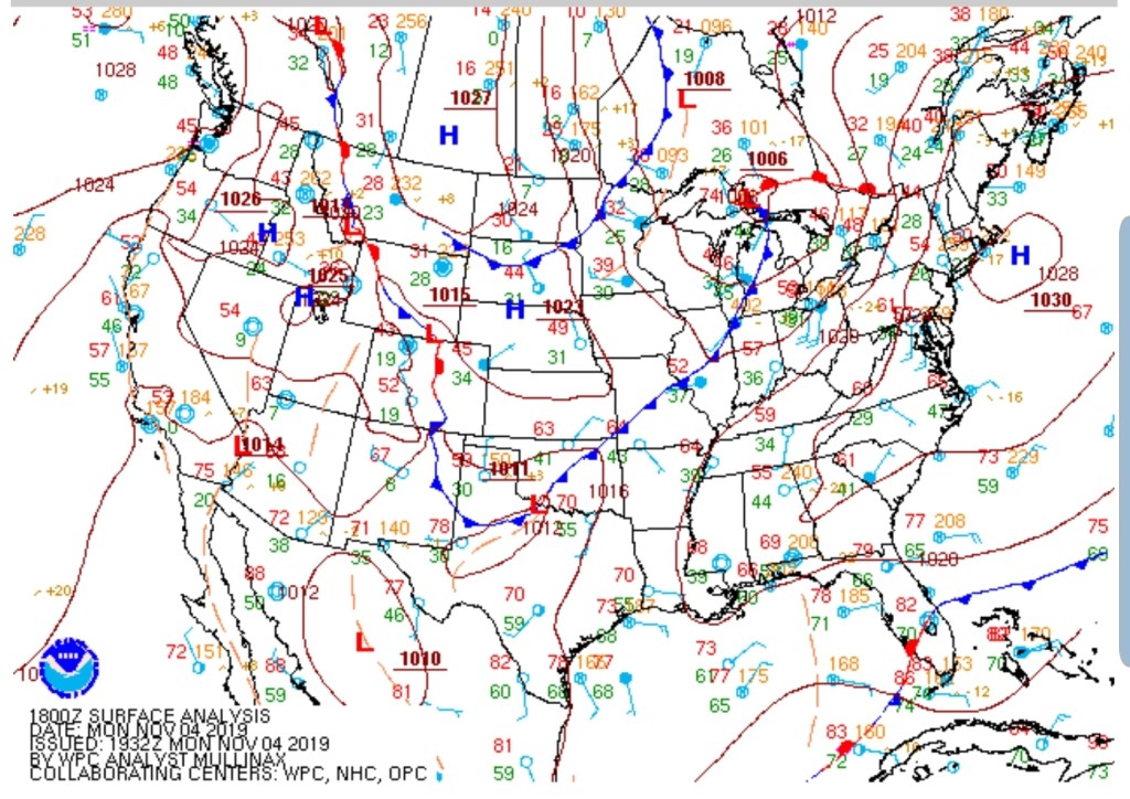 Surface features and 500mb height anomalies and flow.