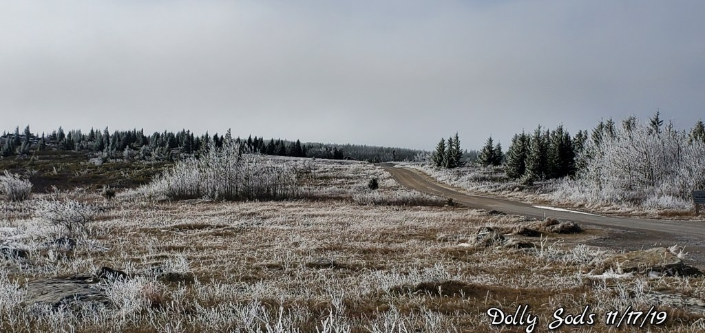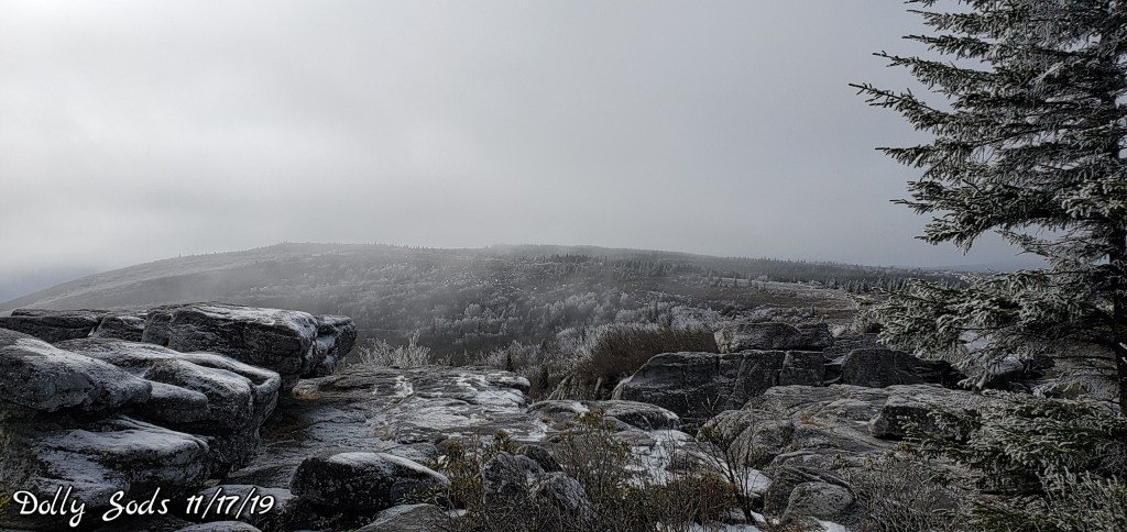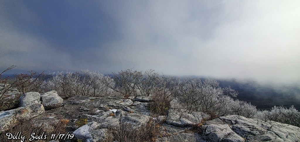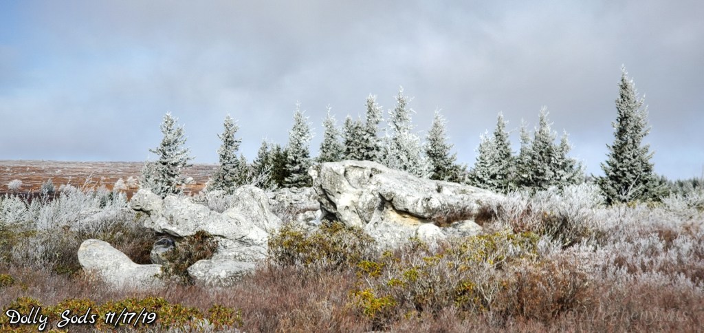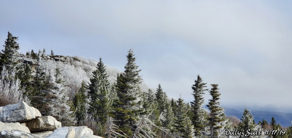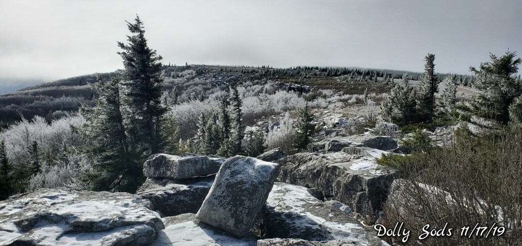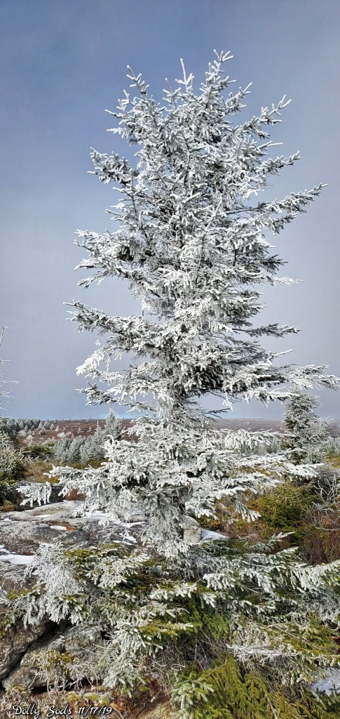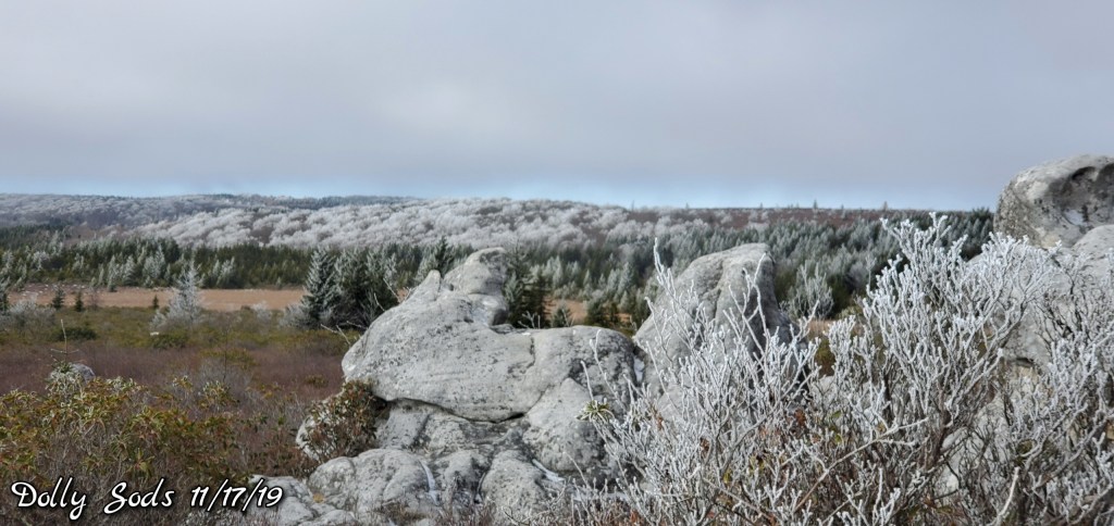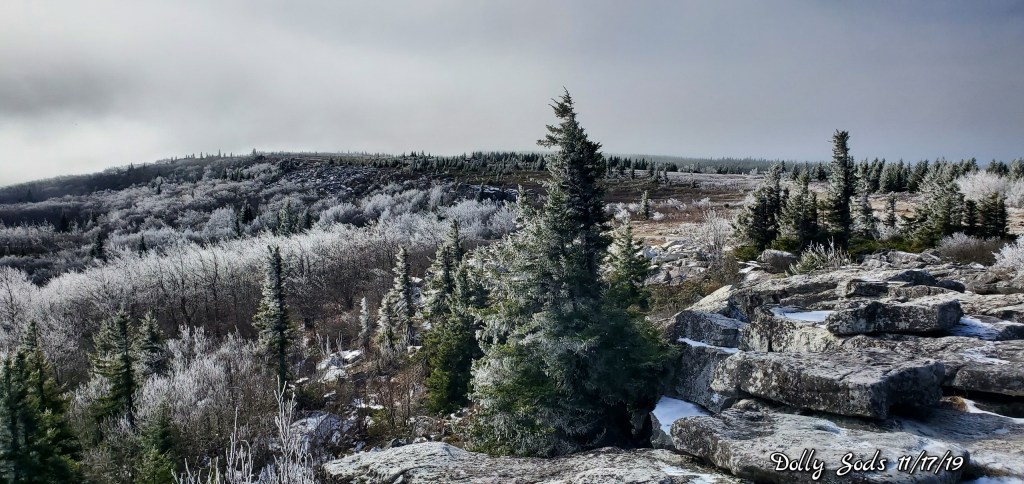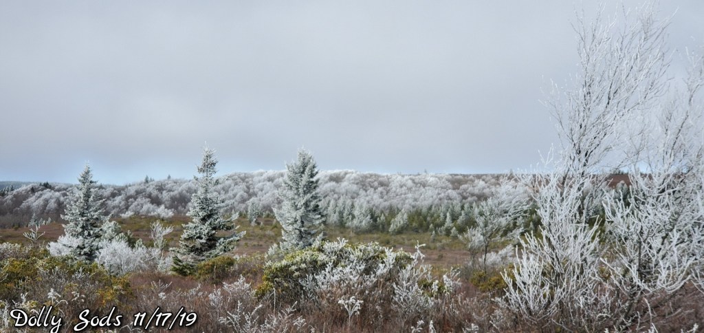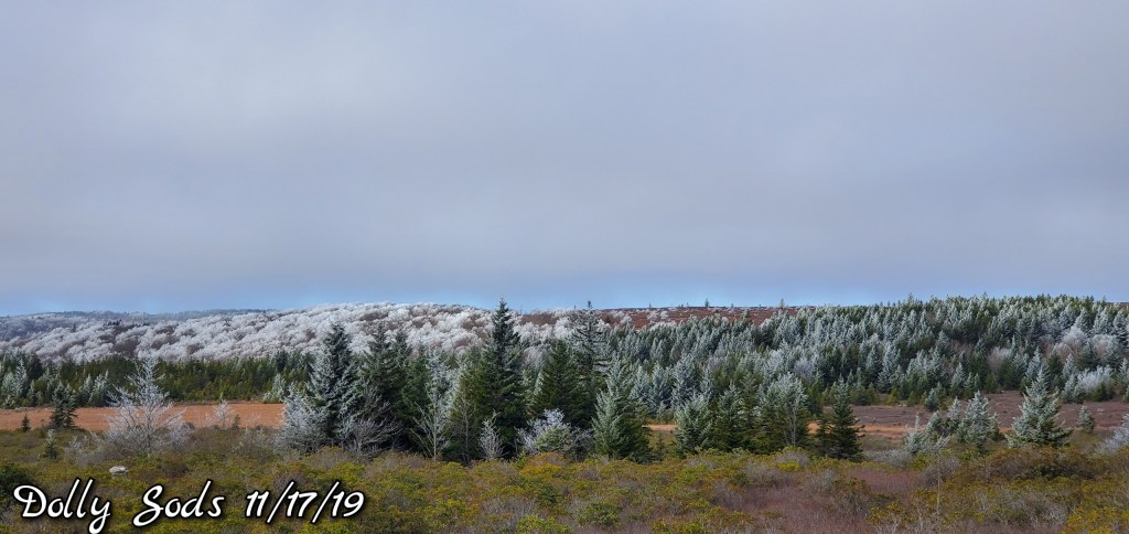 East flow, north central Garrett, points east, and down along the Allegheny Front to the Sods and east saw lots of cloud cover. Some rime across the high Wv on east facing slopes. Sods, Spruce especially. With a dusting of snow, which I believe was just suspended moisture that froze and fell..