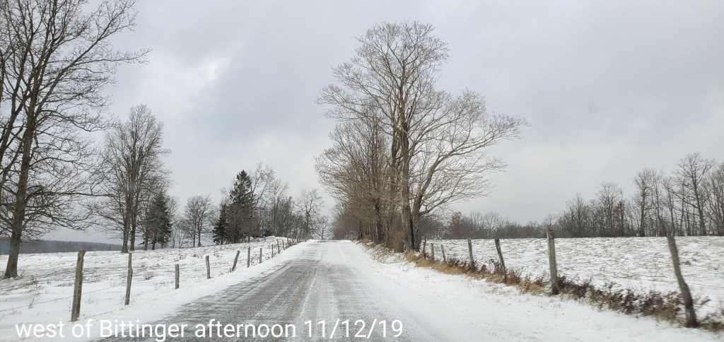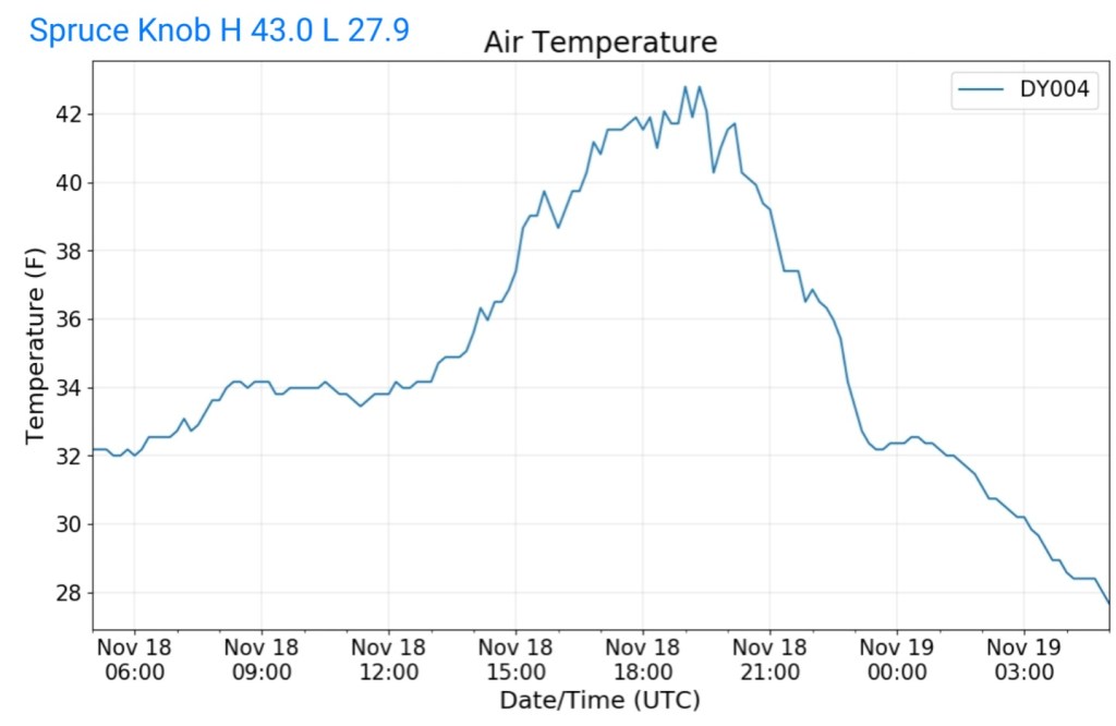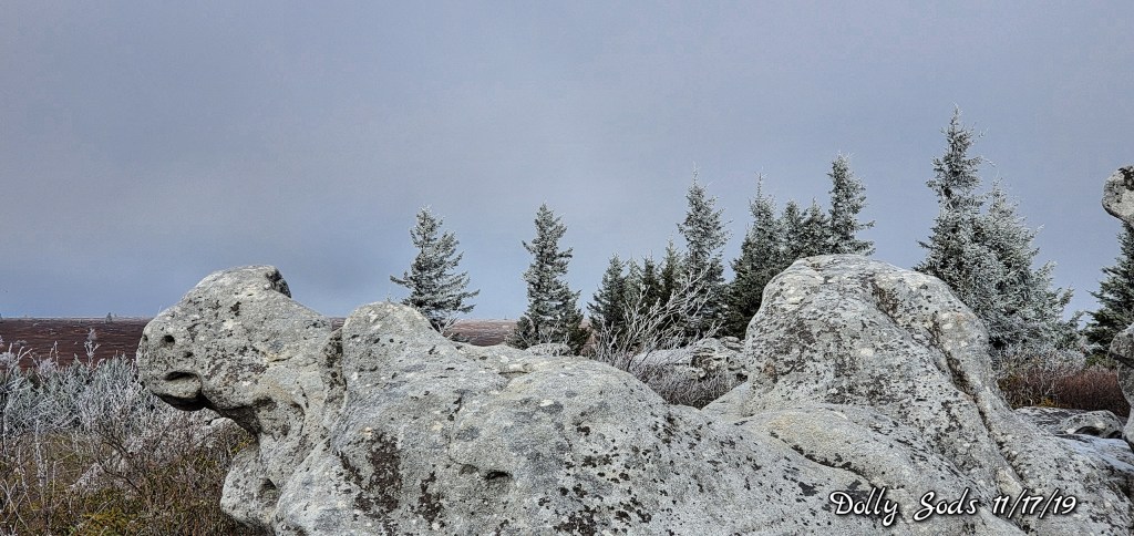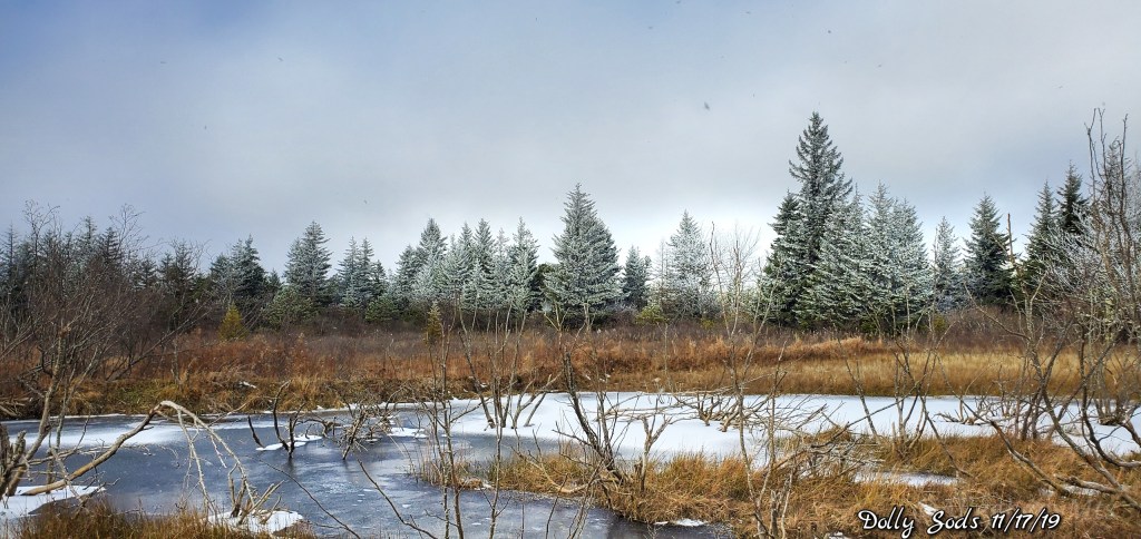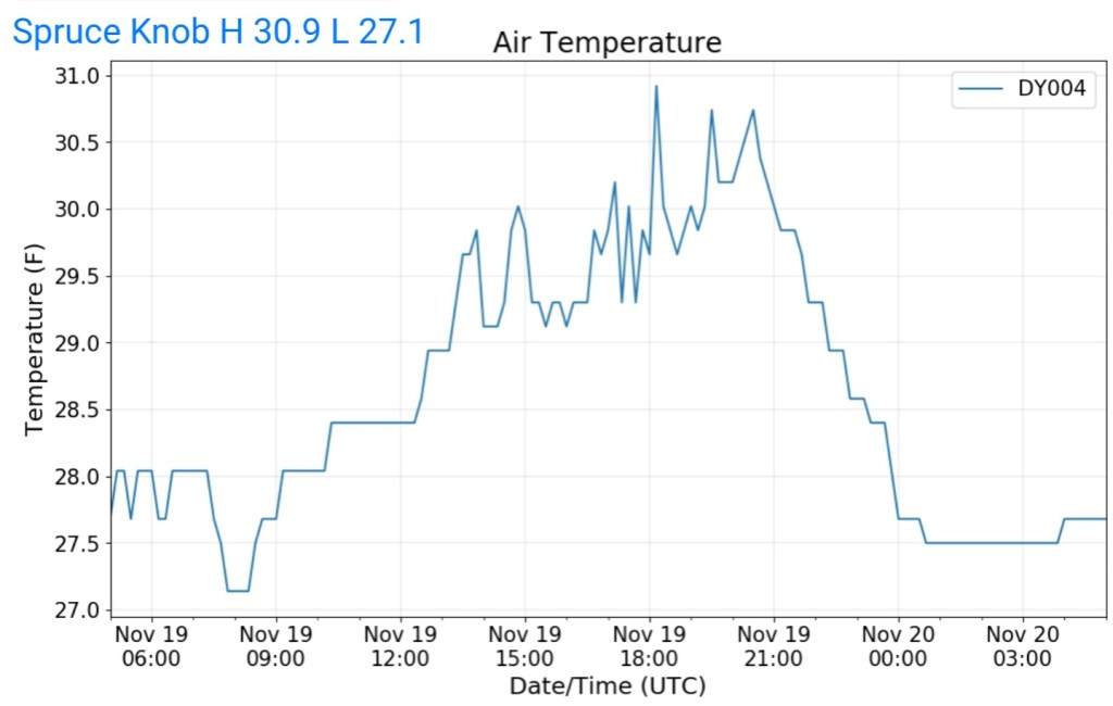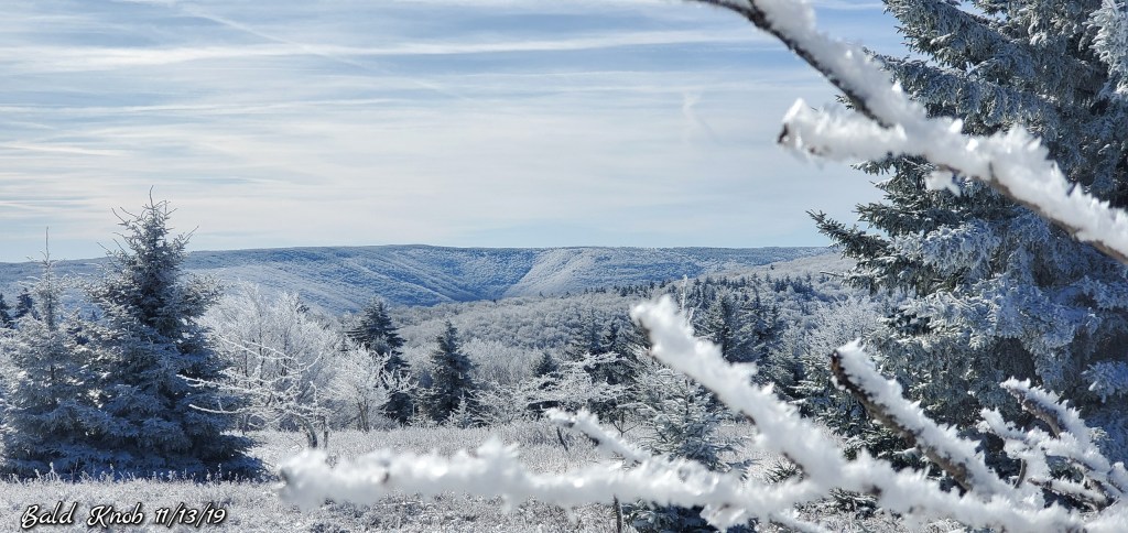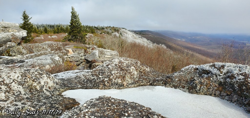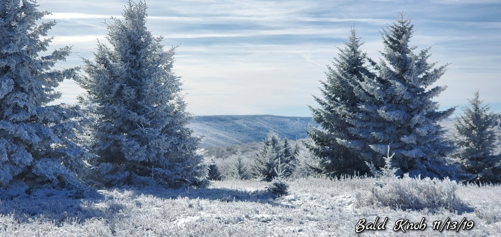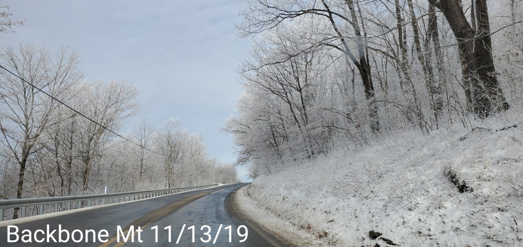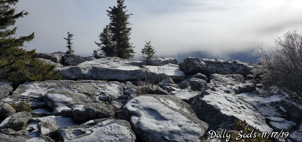 East flow, north central Garrett, points east, and down along the Allegheny Front to the Sods and east saw lots of cloud cover. Some rime across the high Wv on east facing slopes. Sods, Spruce especially. With a dusting of snow, which I believe was just suspended moisture that froze and fell..