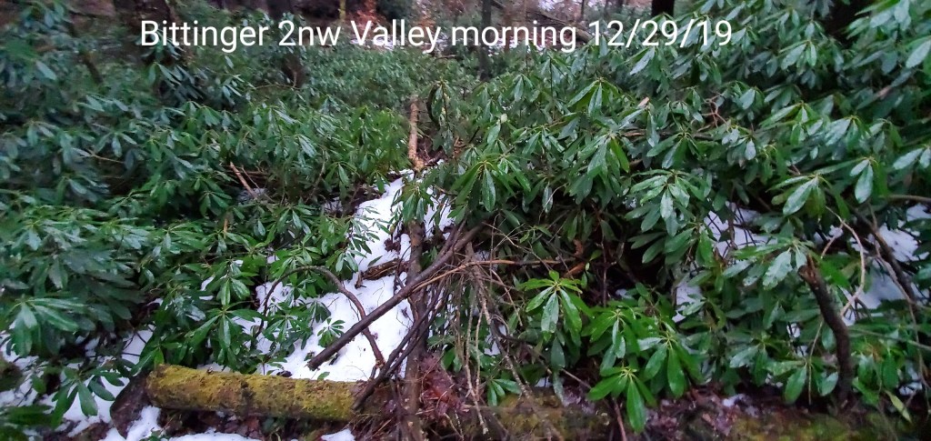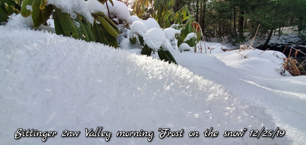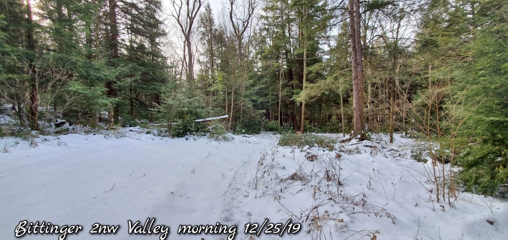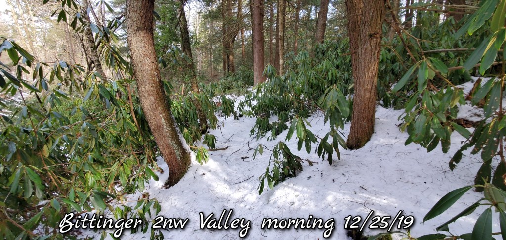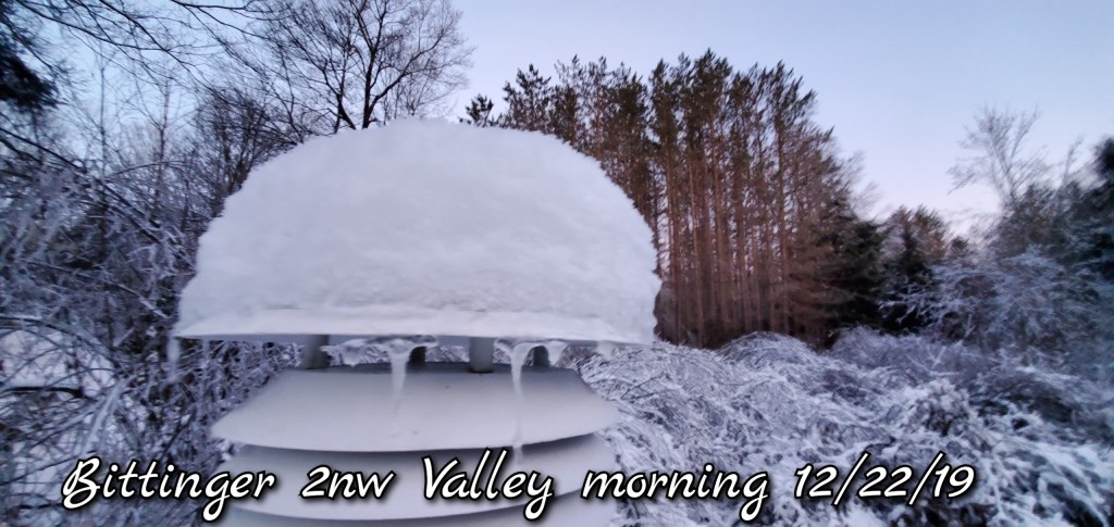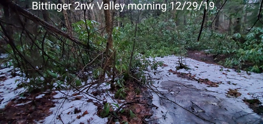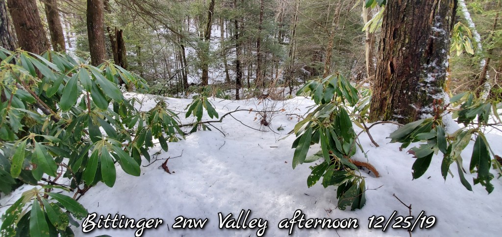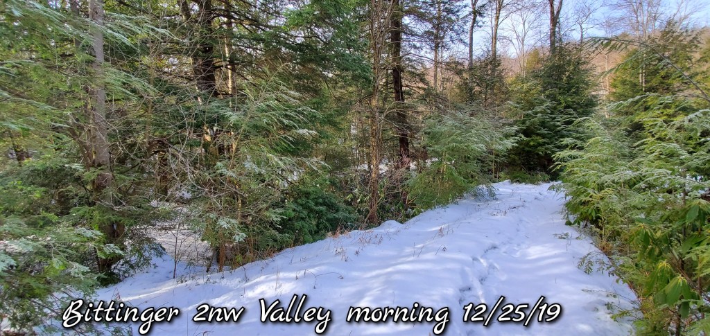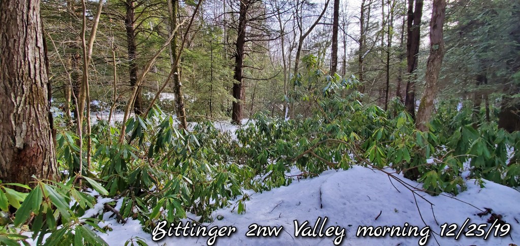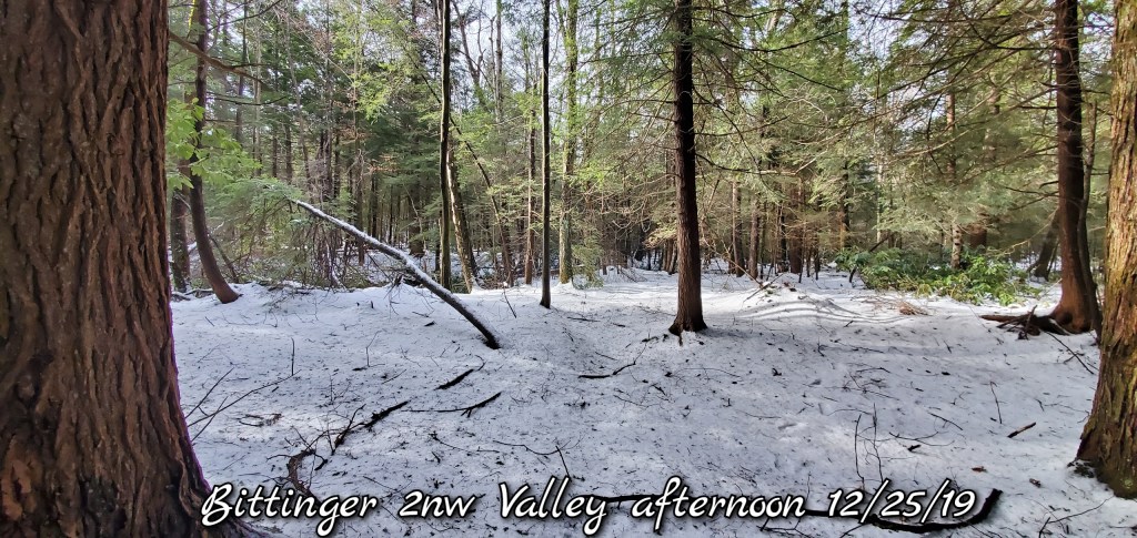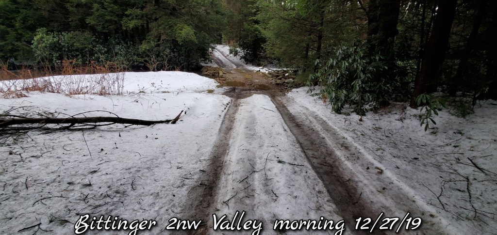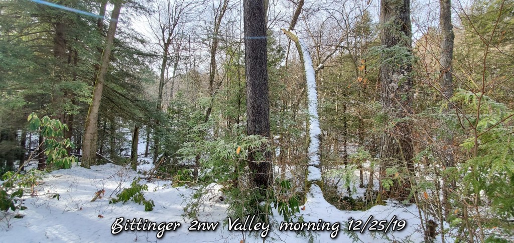 This is an area, that holds cold for the east flow ice events, and west enough to do well on upslope events. Also a sheltered valley that holds cold well. Evident by the temps and remaining snow(lots of pics below)that gave a white Christmas to this area. At 9am, a 3″ hardpack remained.