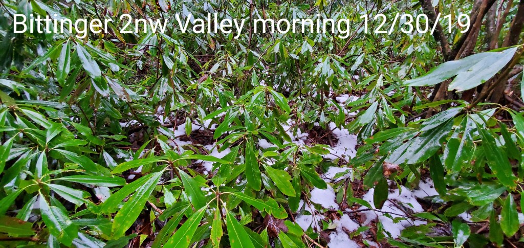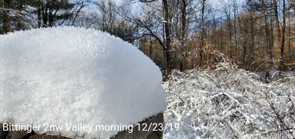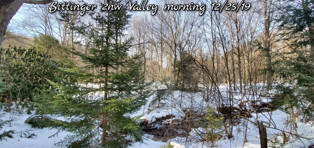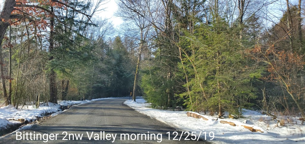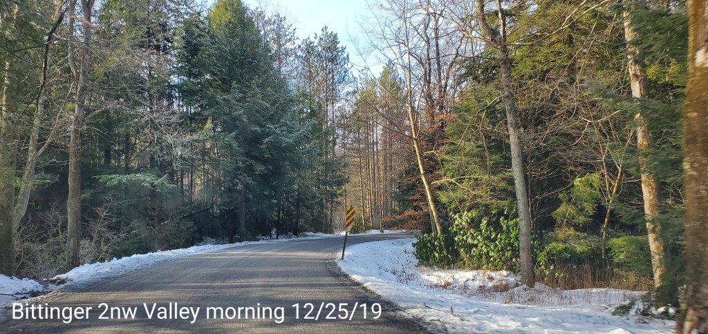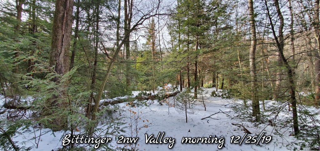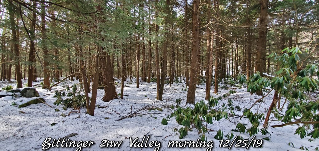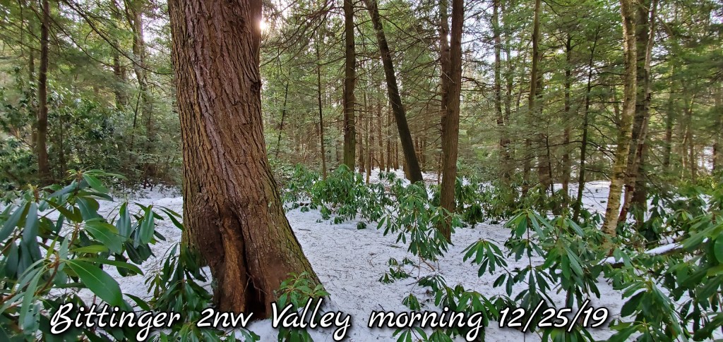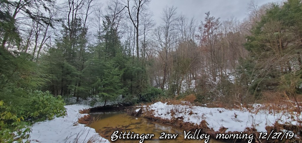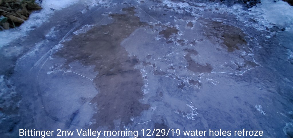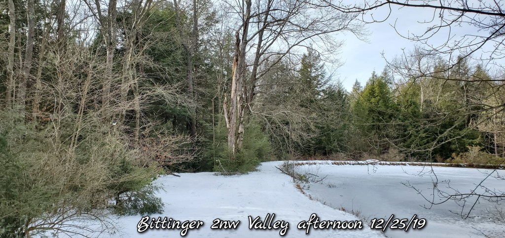 This is an area, that holds cold for the east flow ice events, and west enough to do well on upslope events. Also a sheltered valley that holds cold well. Evident by the temps and remaining snow(lots of pics below)that gave a white Christmas to this area. At 9am, a 3″ hardpack remained.