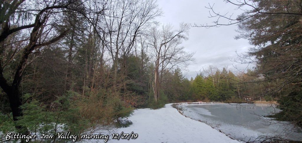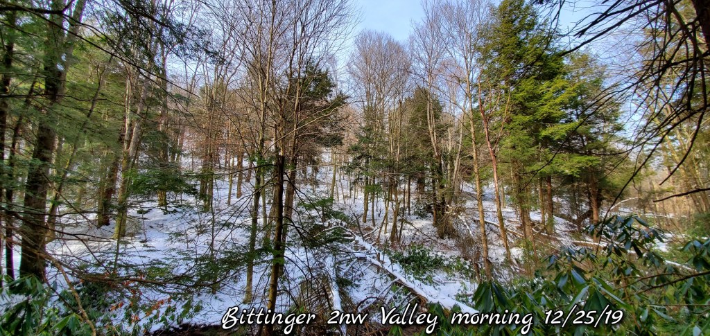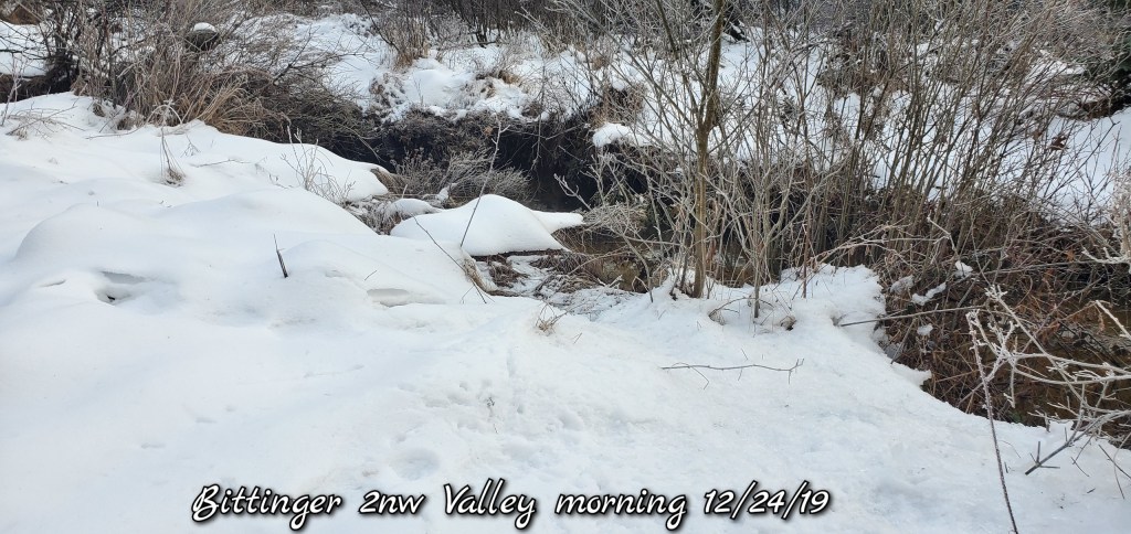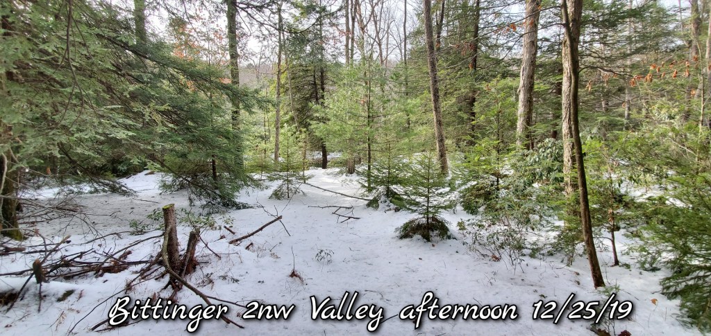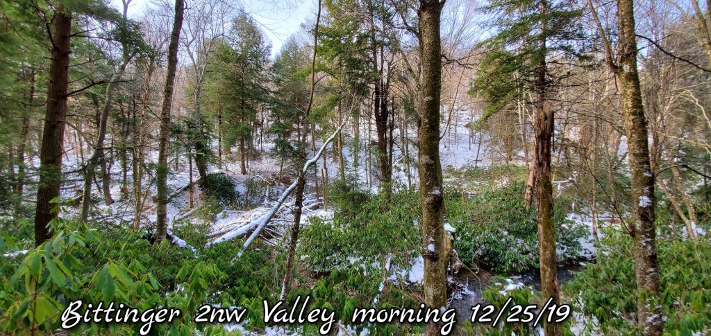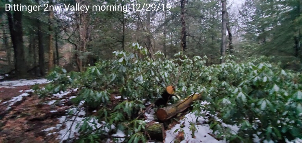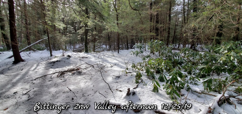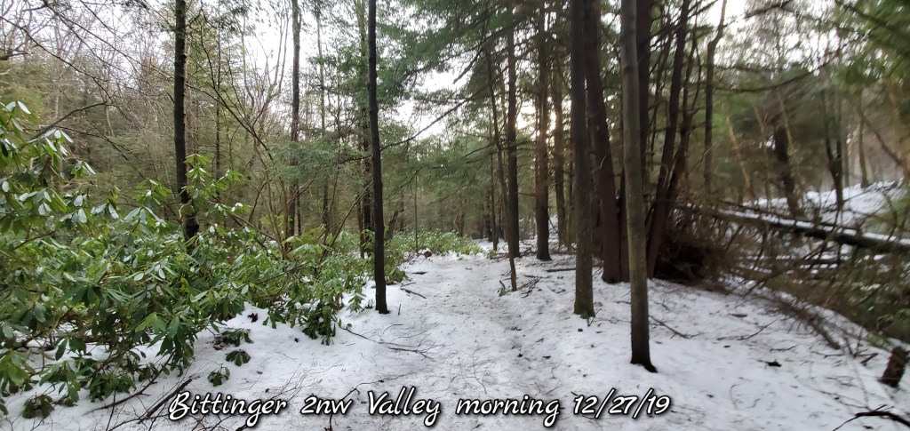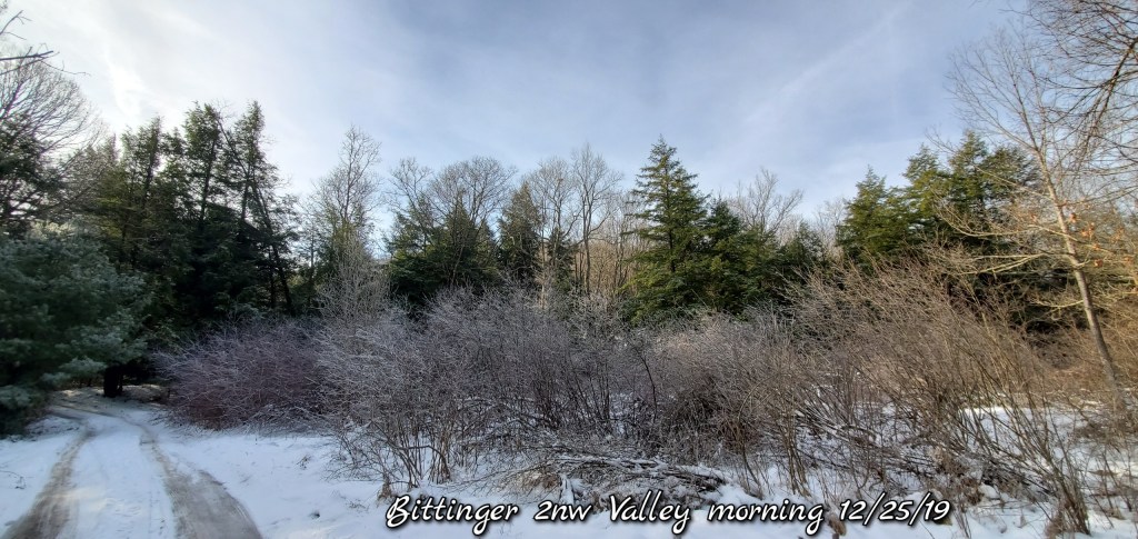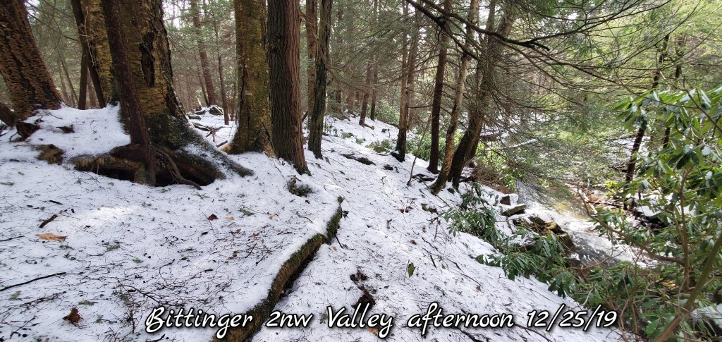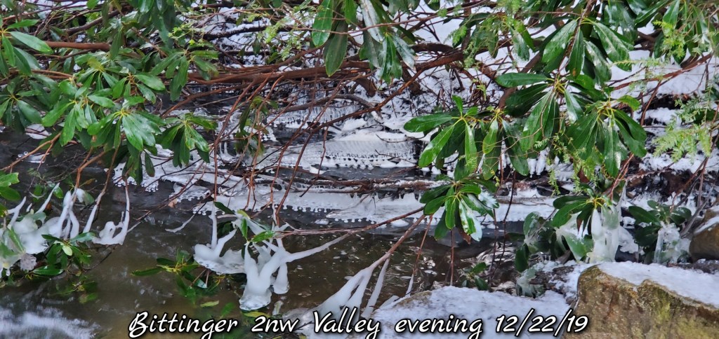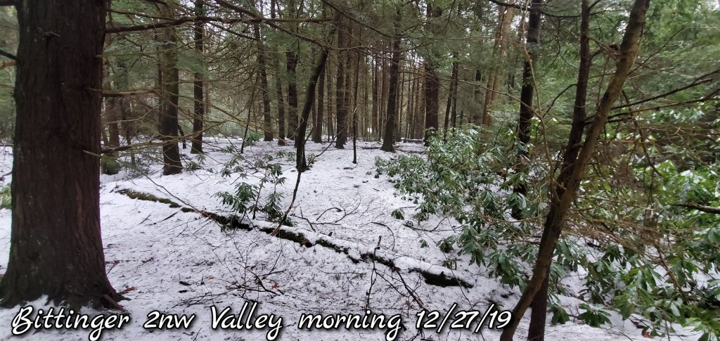 This is an area, that holds cold for the east flow ice events, and west enough to do well on upslope events. Also a sheltered valley that holds cold well. Evident by the temps and remaining snow(lots of pics below)that gave a white Christmas to this area. At 9am, a 3″ hardpack remained.