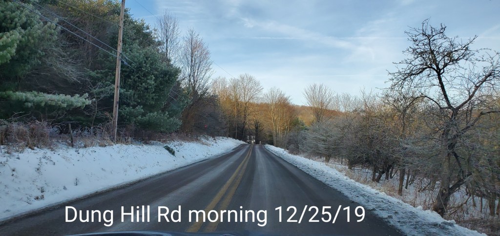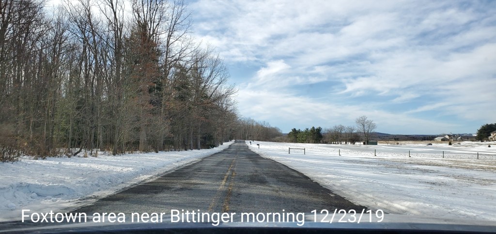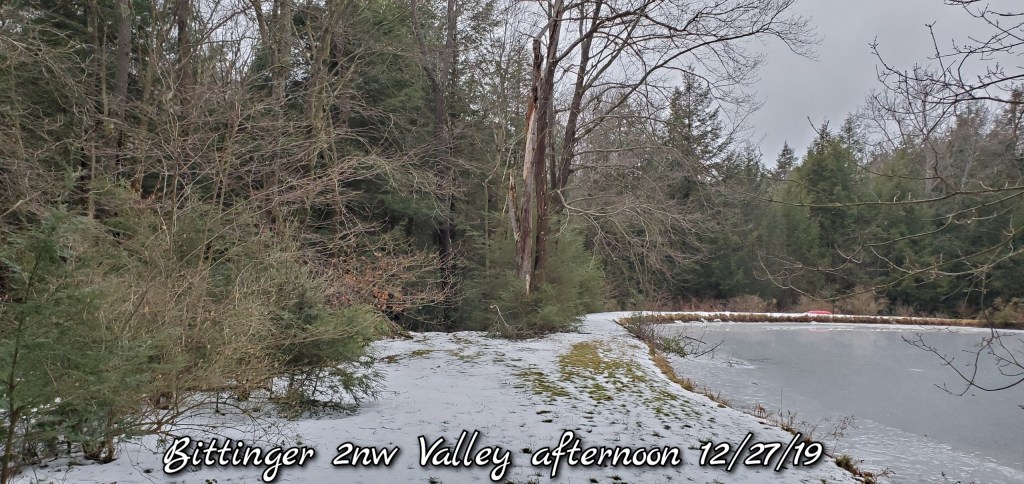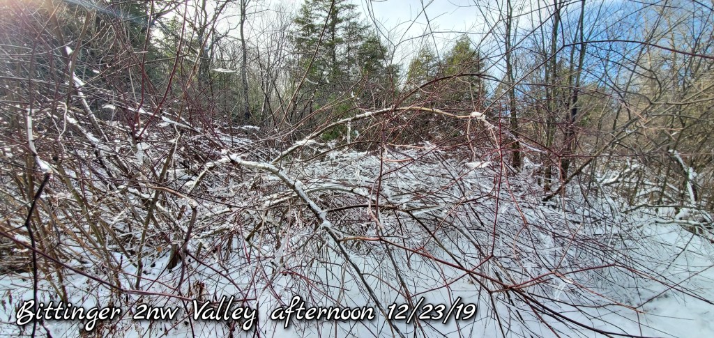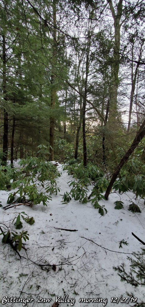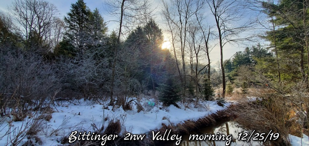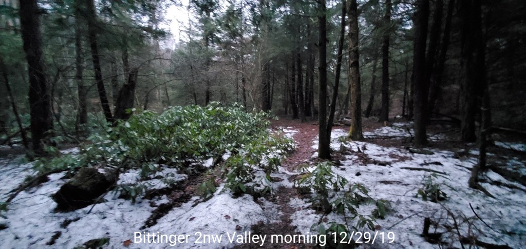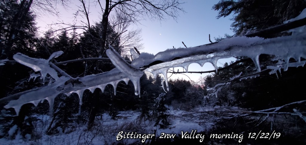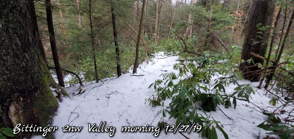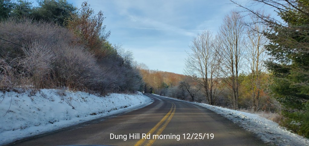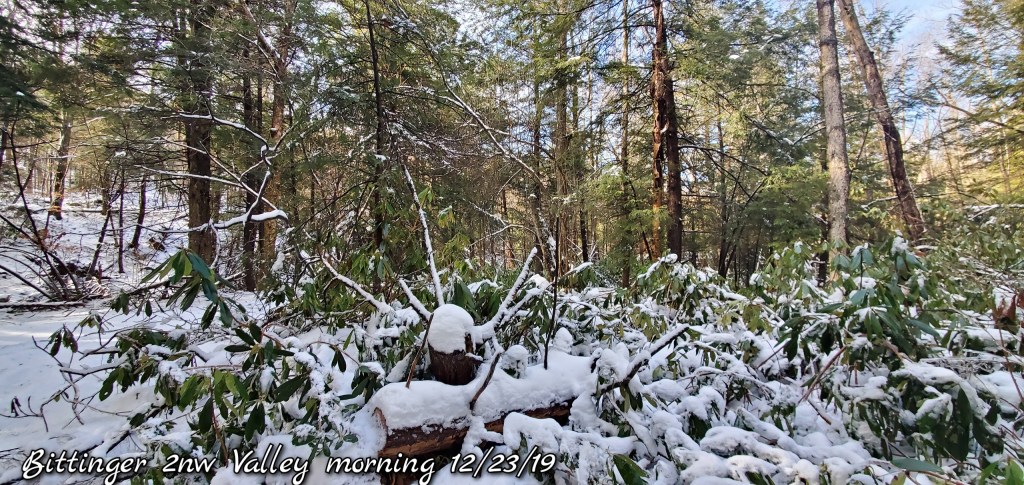 This is an area, that holds cold for the east flow ice events, and west enough to do well on upslope events. Also a sheltered valley that holds cold well. Evident by the temps and remaining snow(lots of pics below)that gave a white Christmas to this area. At 9am, a 3″ hardpack remained.