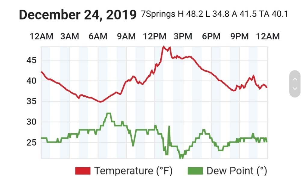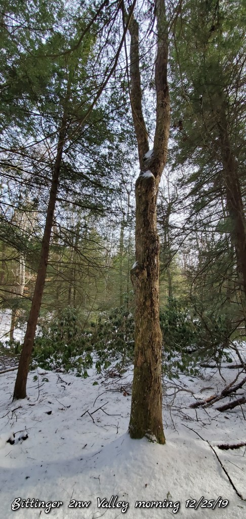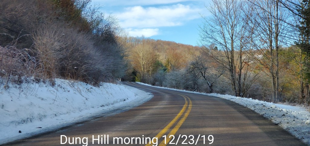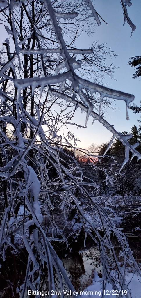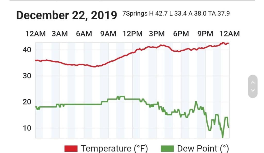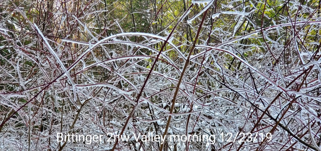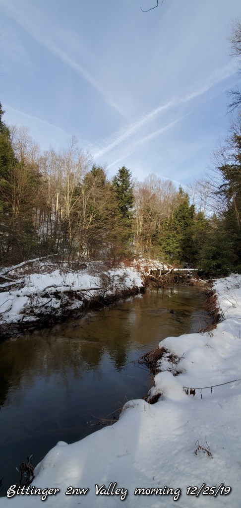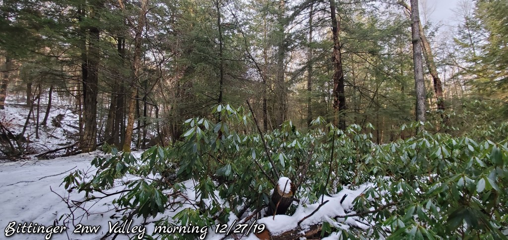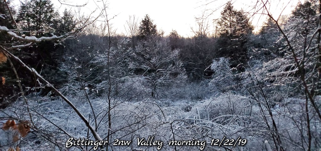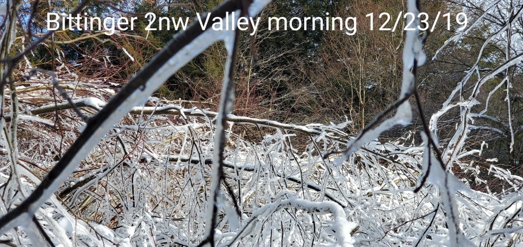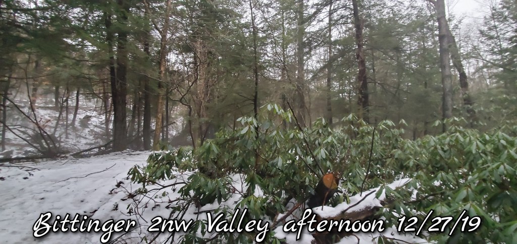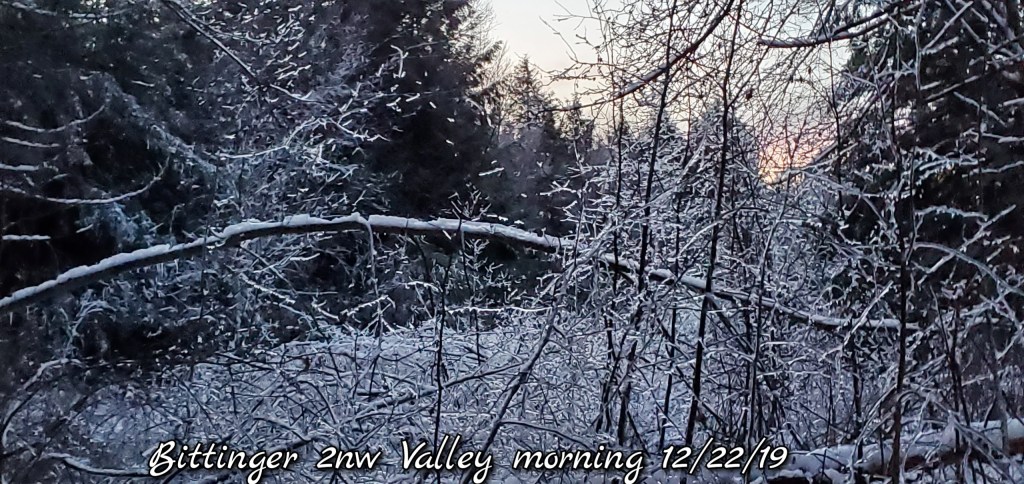 This is an area, that holds cold for the east flow ice events, and west enough to do well on upslope events. Also a sheltered valley that holds cold well. Evident by the temps and remaining snow(lots of pics below)that gave a white Christmas to this area. At 9am, a 3″ hardpack remained.
