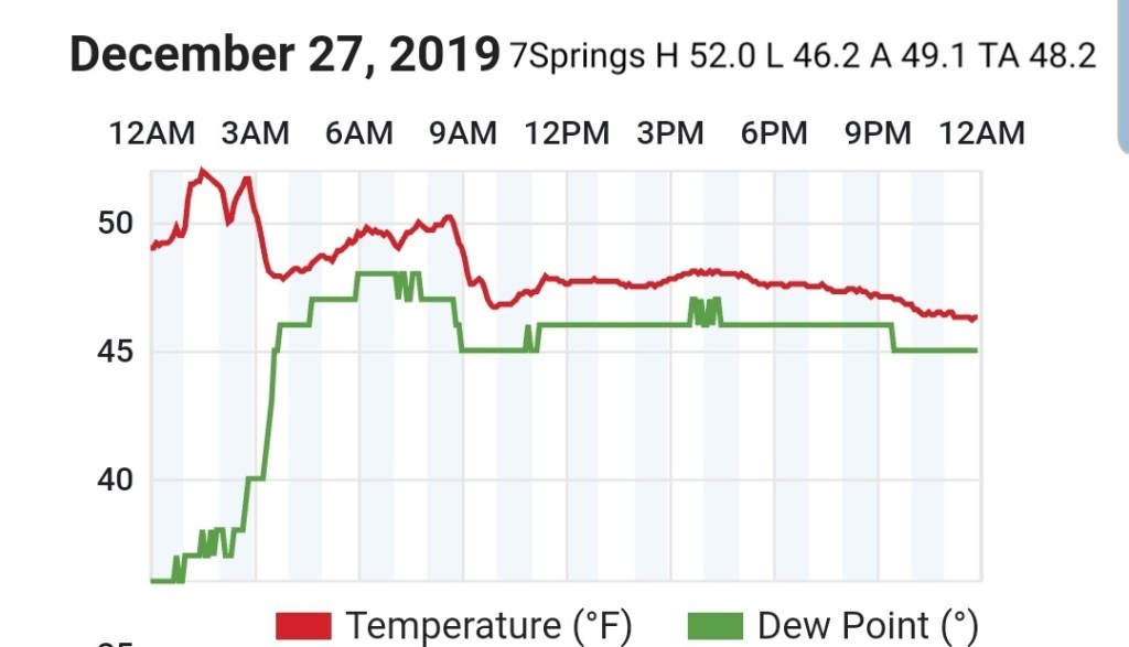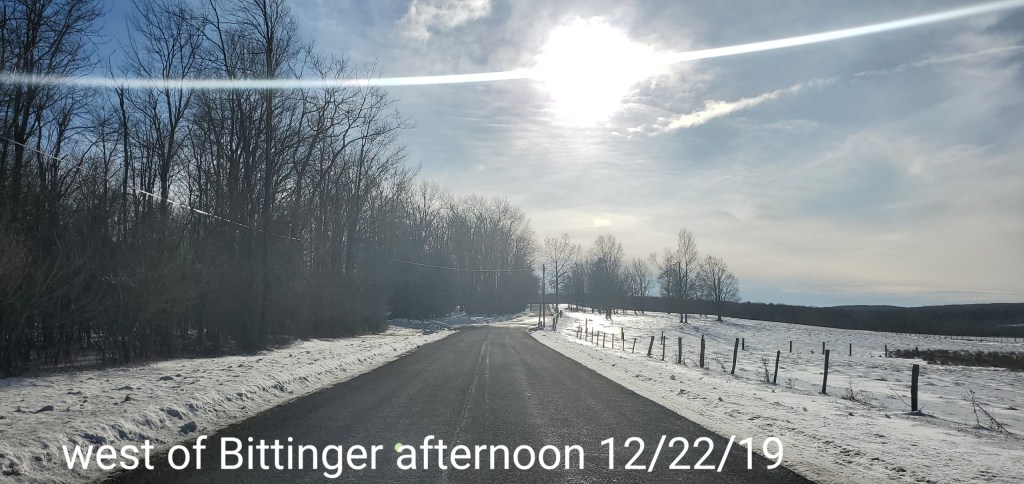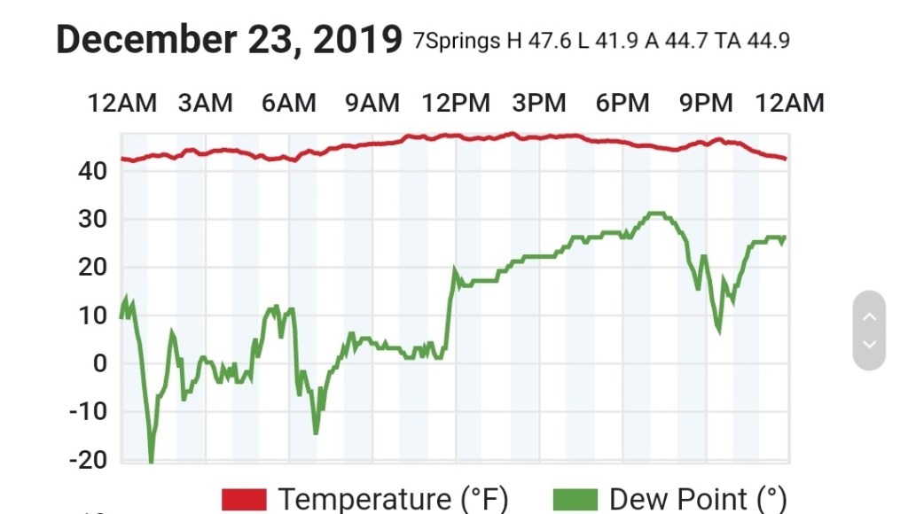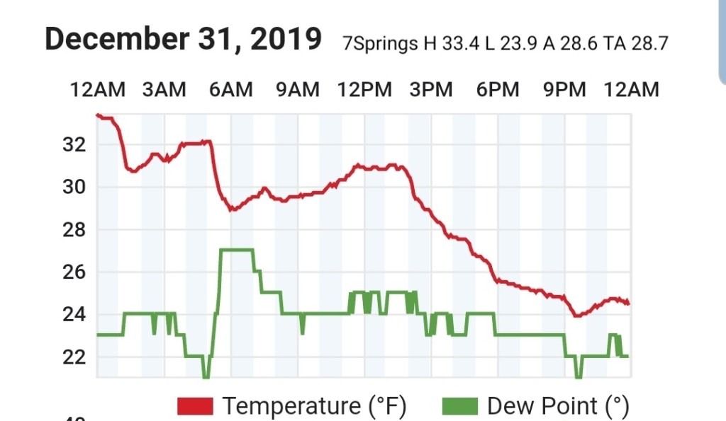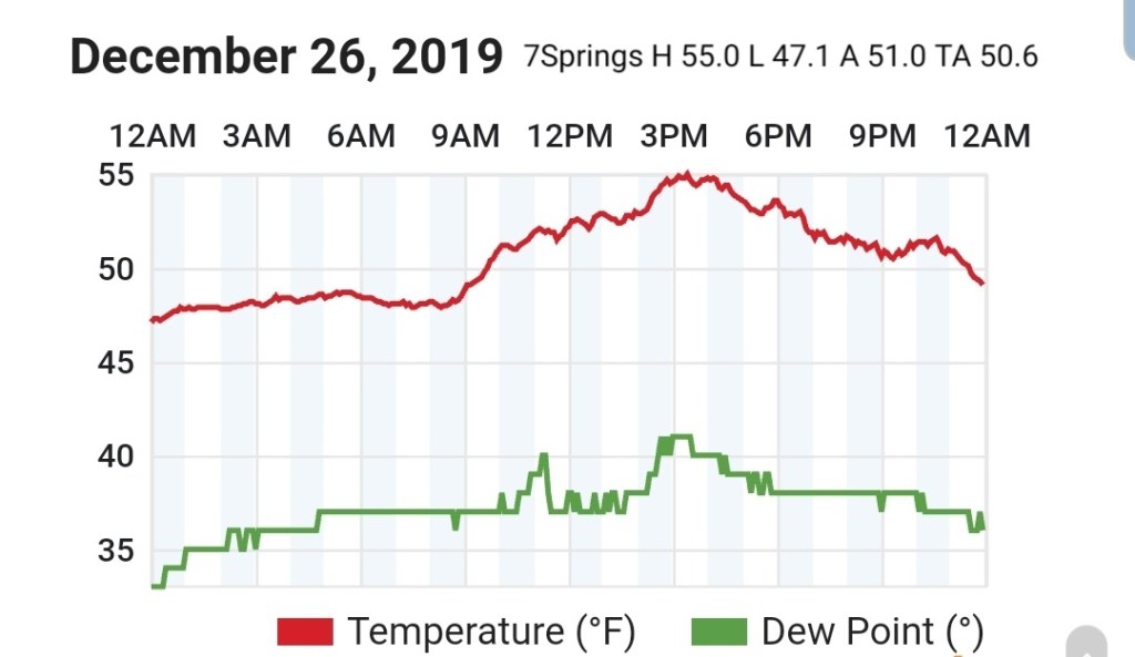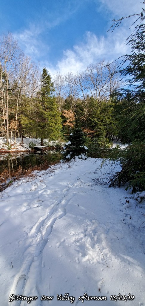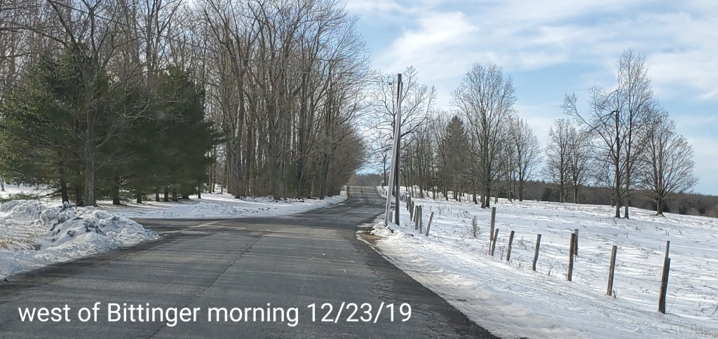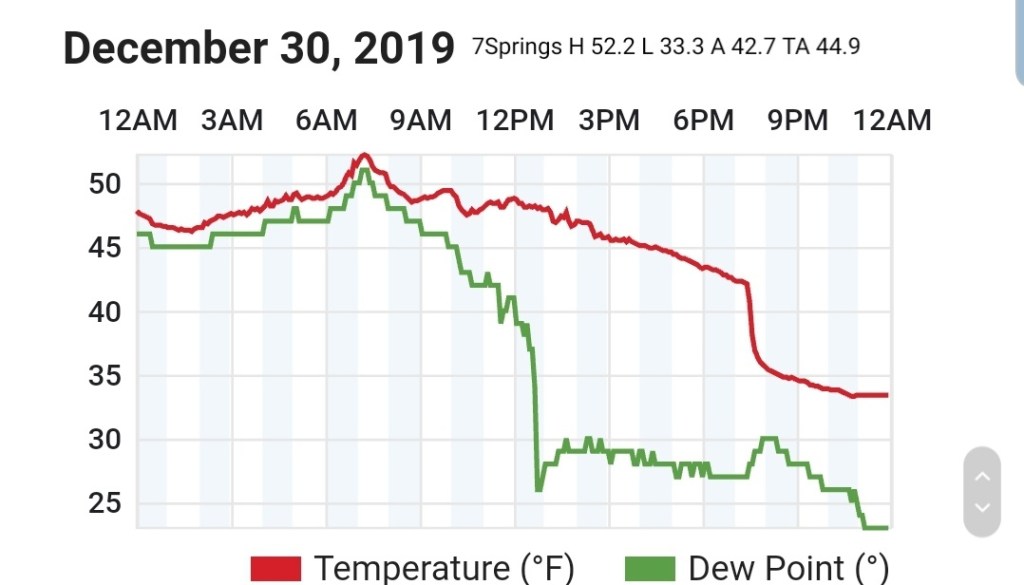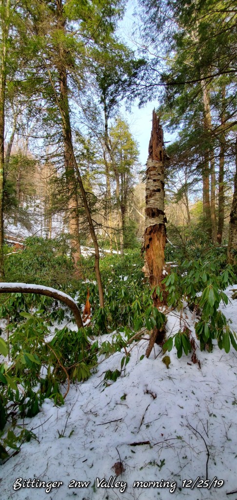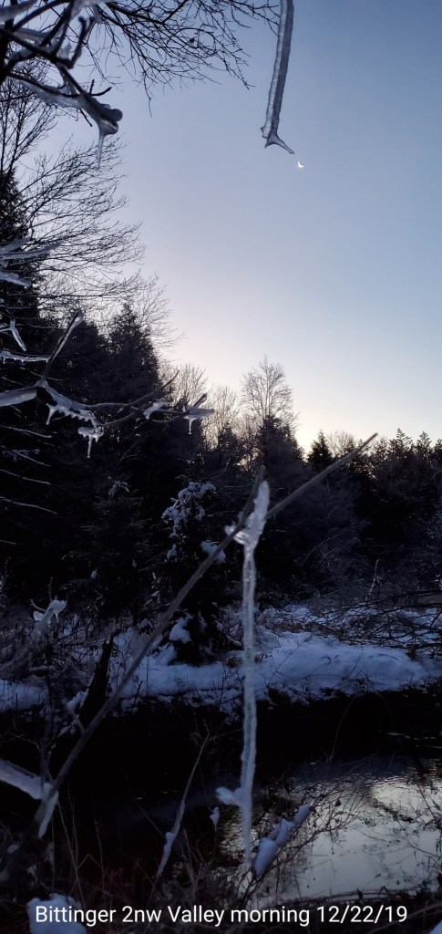 This is an area, that holds cold for the east flow ice events, and west enough to do well on upslope events. Also a sheltered valley that holds cold well. Evident by the temps and remaining snow(lots of pics below)that gave a white Christmas to this area. At 9am, a 3″ hardpack remained.