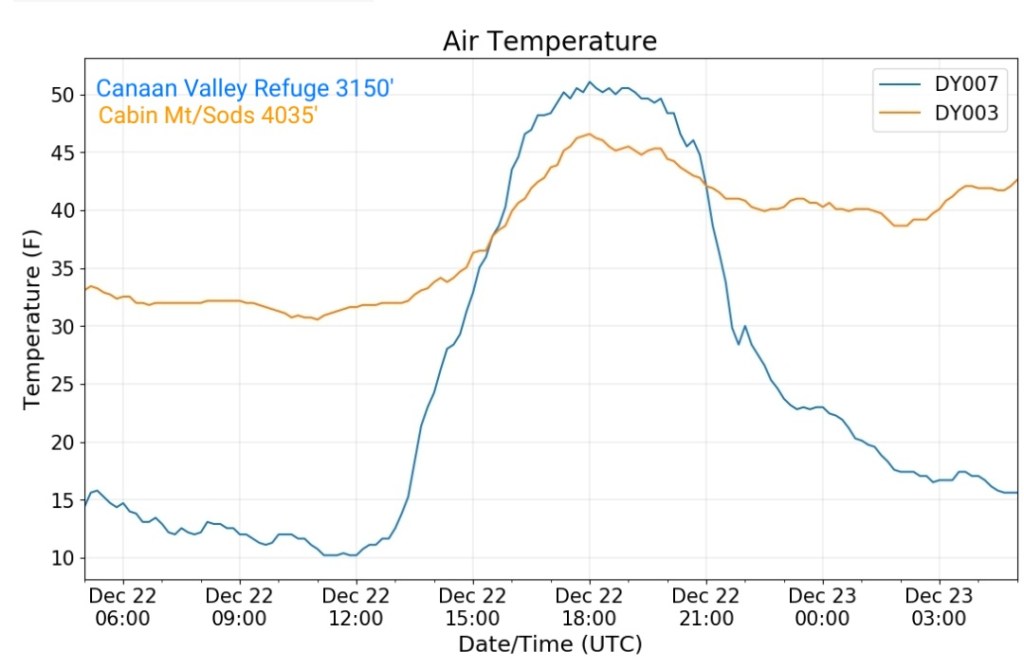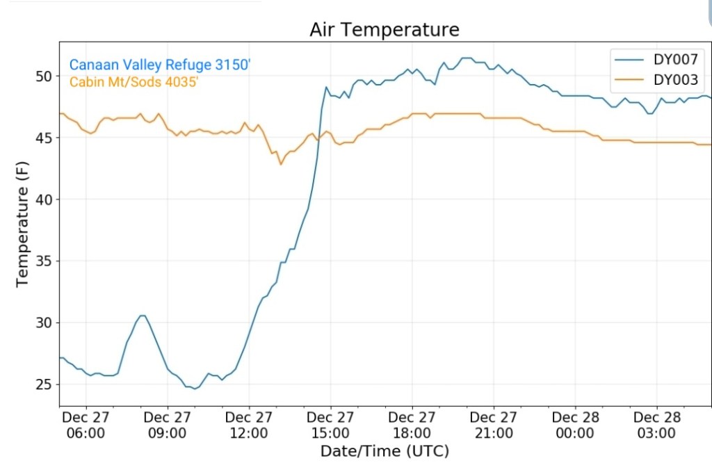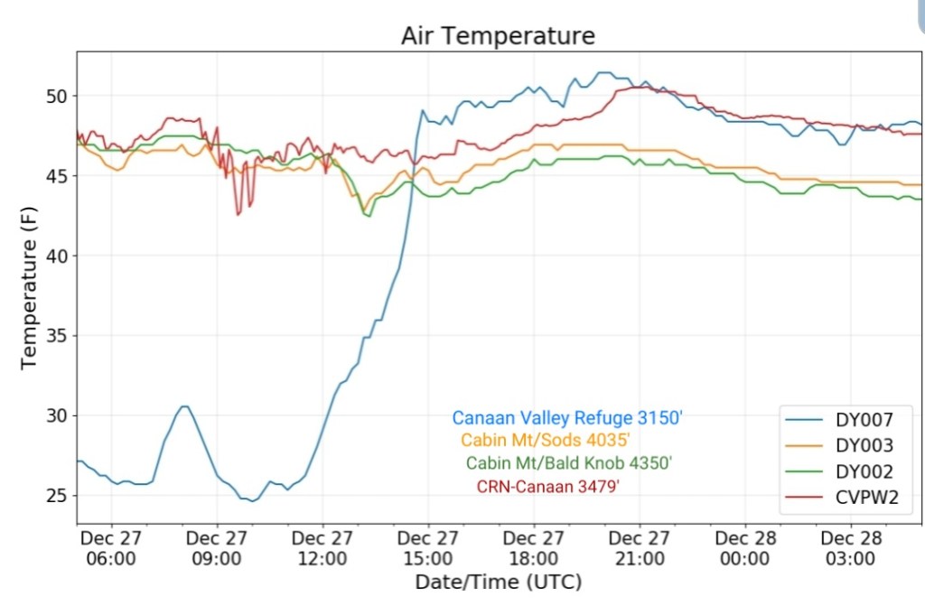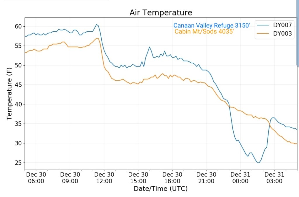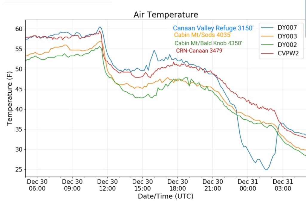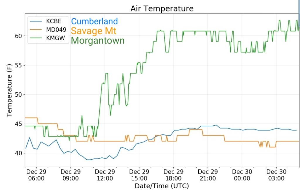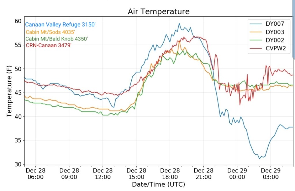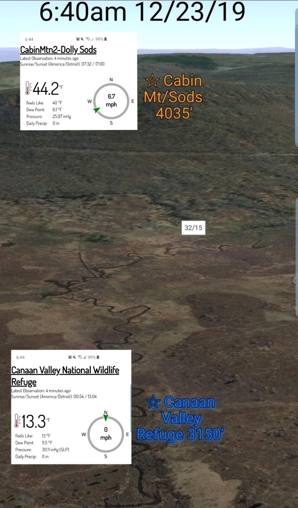 Another fascinating local climatology event at play. While not cold enough for ice, those same areas this Sunday look to remain much chillier than the Wv high ground and west of the mts….the same almost identical repeated boundary.