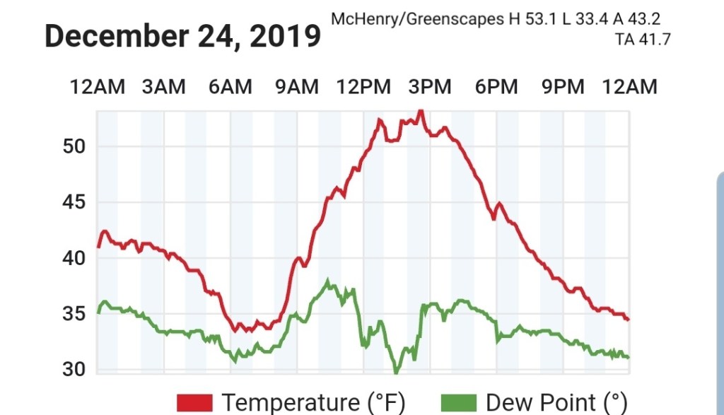 Station is down and offline. With the holiday season upon us, it may be down for a little bit. Will substitute the nearby Greenscapes station. It is a rooftop station. Not fond of rooftop stations. But for a continuation of data from a station close, it will be used.