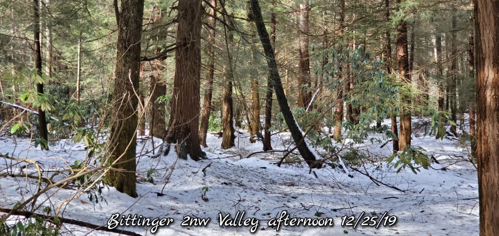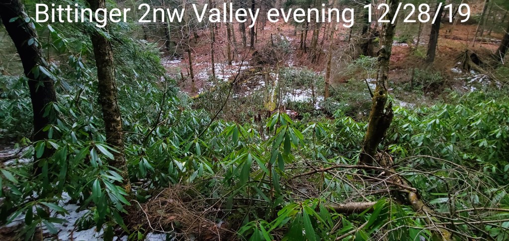This is mainly the Bittinger 2nw Valley area with exceptions. The fascinating micro climates. Snow cover in a sheltered valley that refrigerated itself prolonging its existence well beyond surrounding areas.