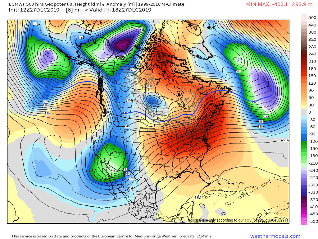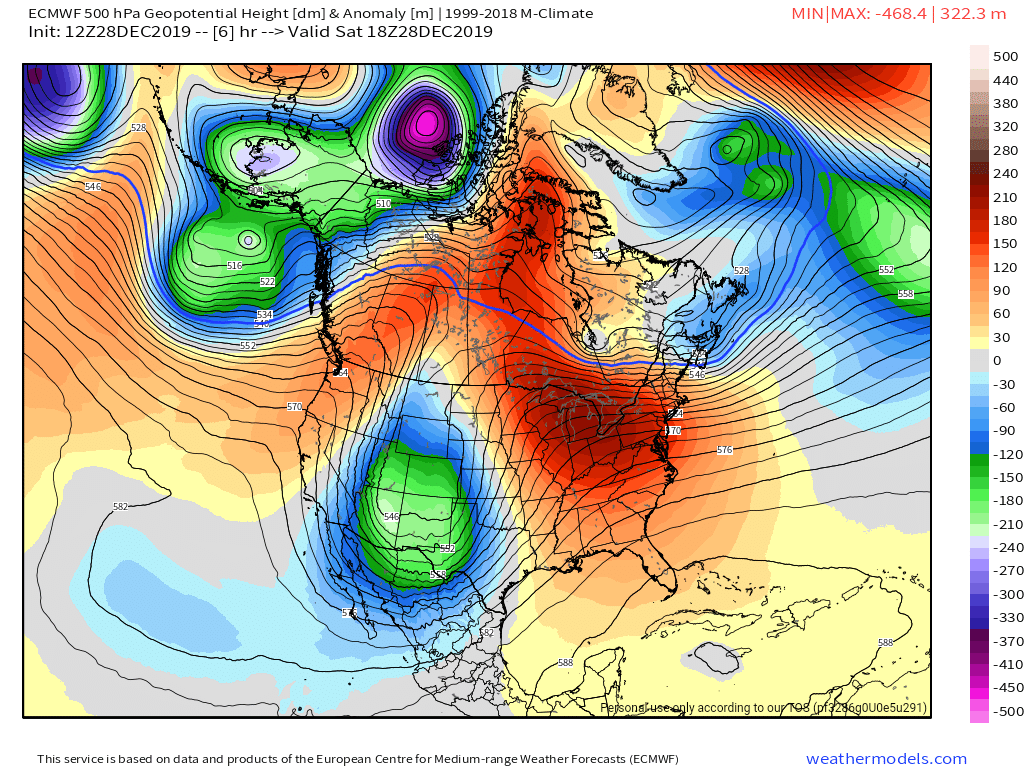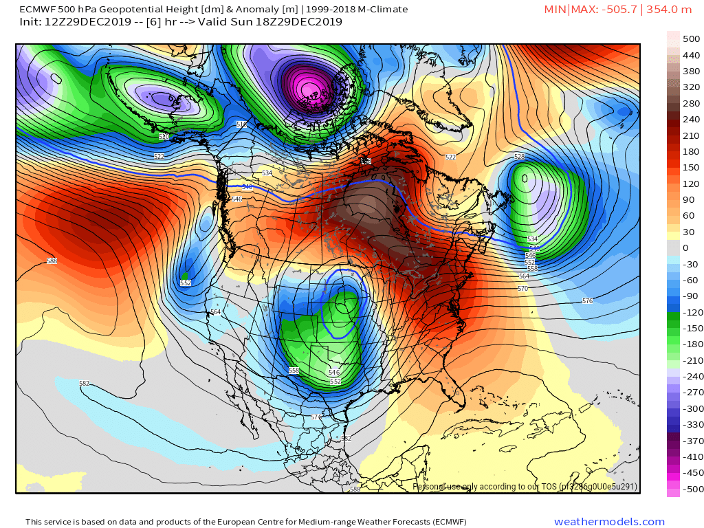 Look at that continued large ridge. If that is the case. You will get a day, or 3 of winter, then the SW flow rapidly takes over. The GFS has this Ridge, although is a little less bullish on it.
