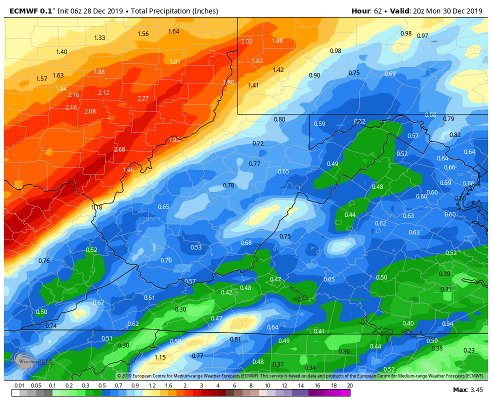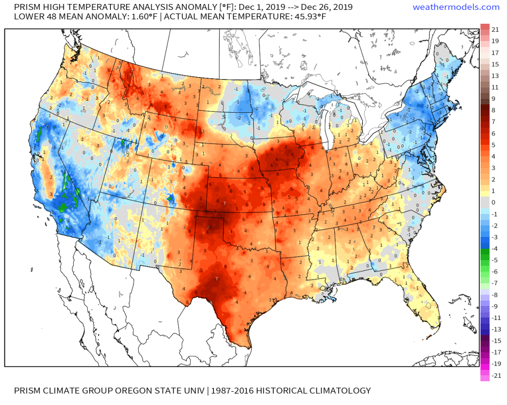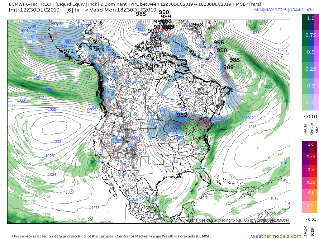 Making hay in a rainy pattern may be the equivalent to getting snow in a mild pattern. There is usually a break for it to occur. There is the light snow event to close out 2019 this week, that goes to meet its maker late week with the return of the SW flow.