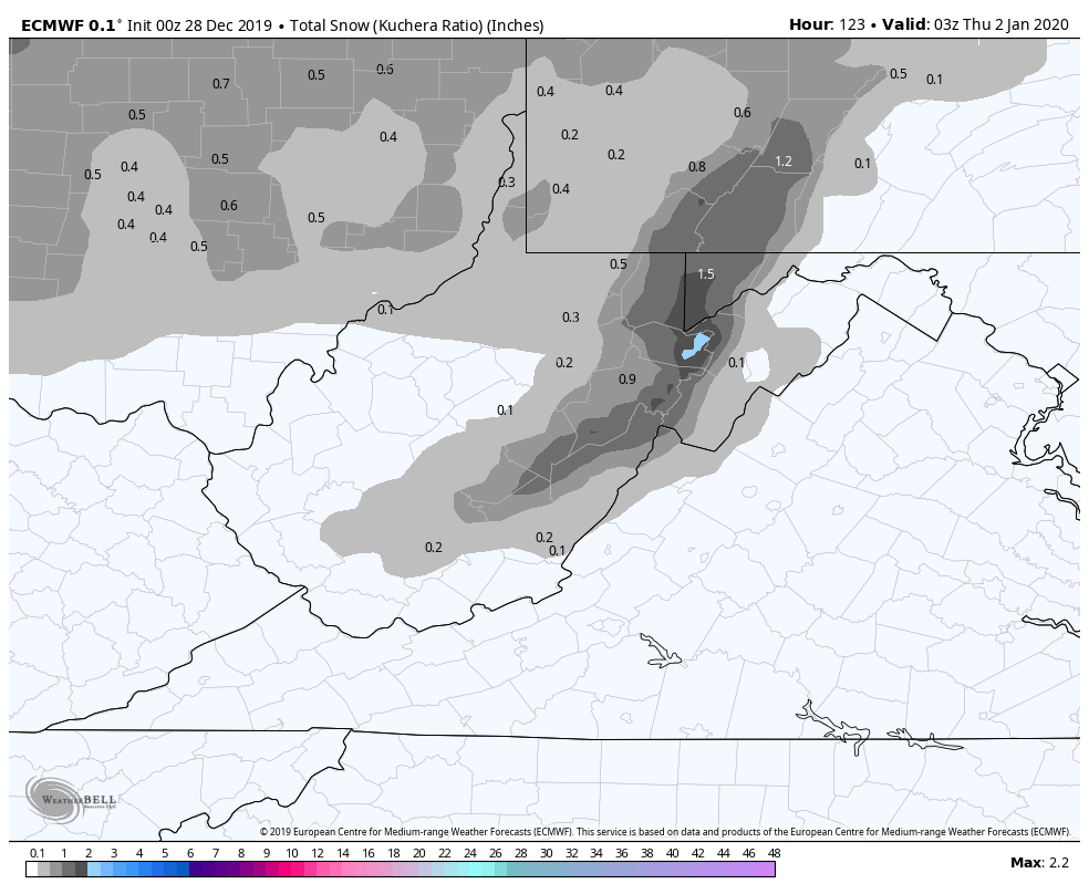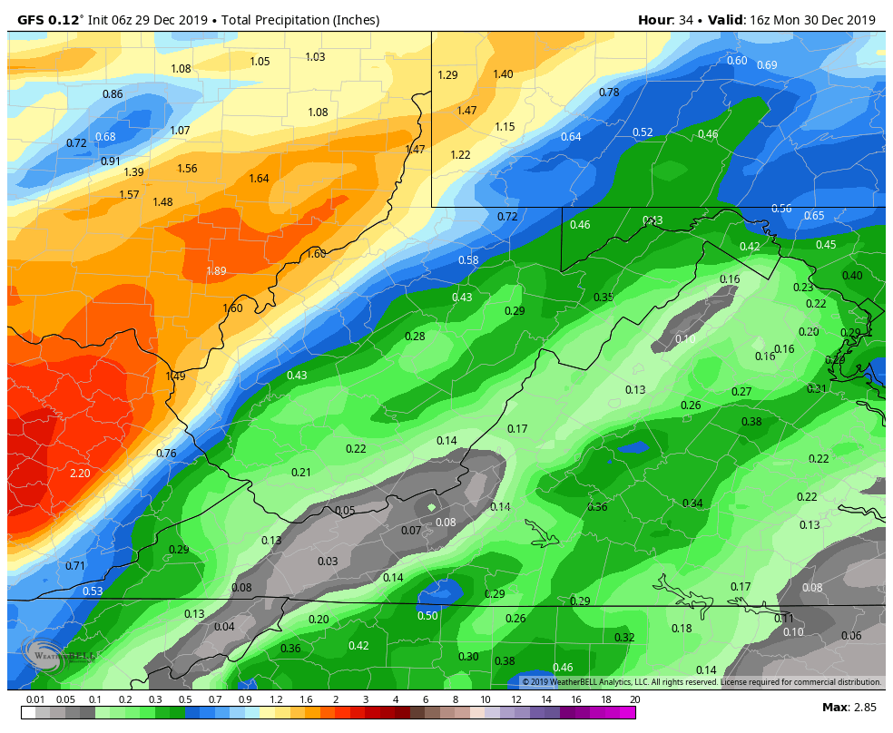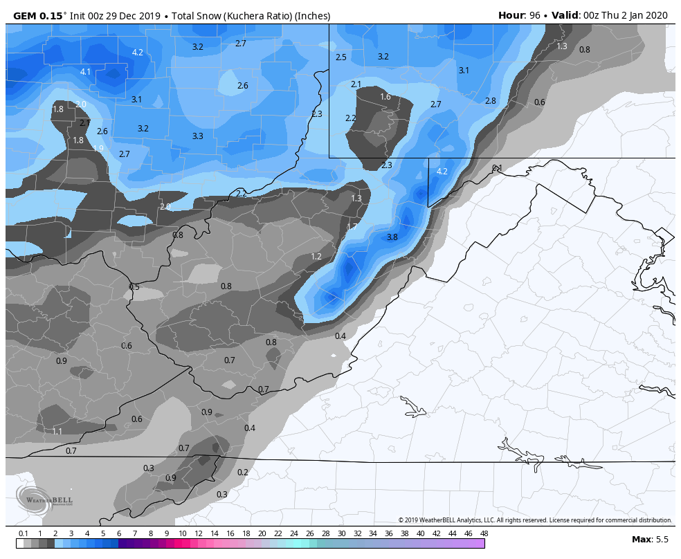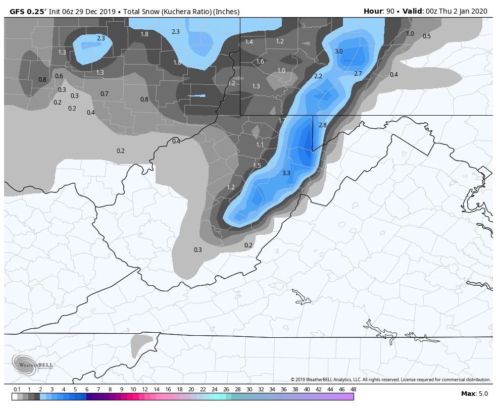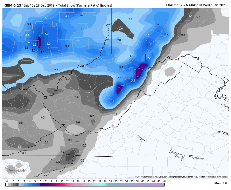 A widespread 1-3″ looks likely with up to 5″ across the Wv high ground. Tweaks to come, but likely minimal either way.