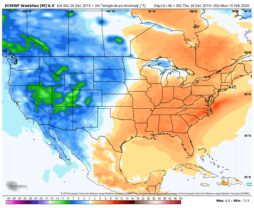 last night’s run of the ECMWF weeklies looked like this for the overall mean of the next 46 days. (Fortunately this model has not been good)