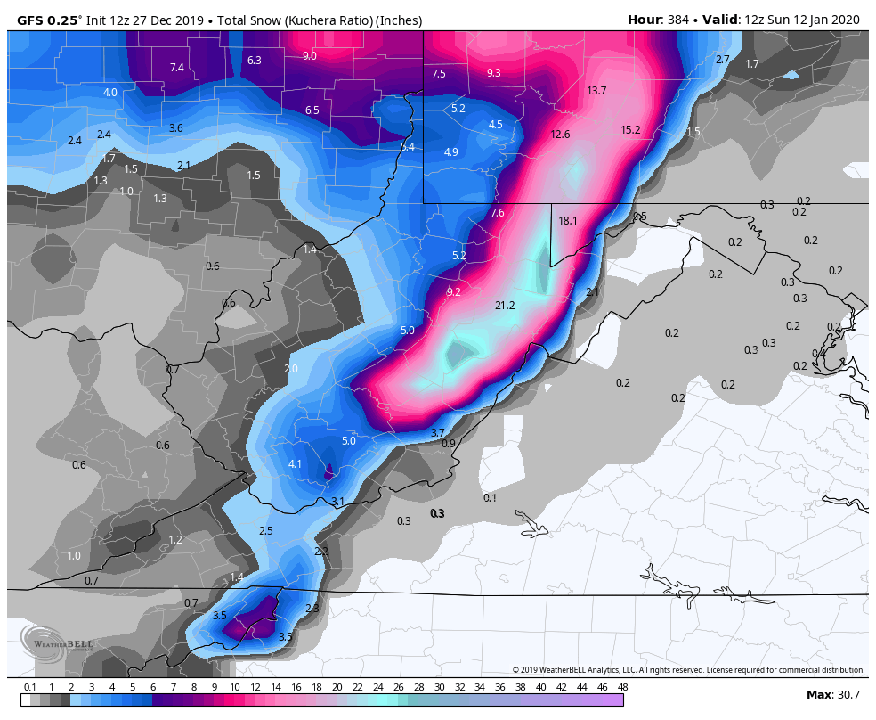 Interestingly enough, the long range GFS pumps out quite a bit of upslope snows days 8-16. Color me surprised if it occurs…just keeping some hope for the winter lovers….if the SE mega 500mb Ridge breaks, we are back in the game…..if not we are the Steelers without Roethlisberger hoping someone else can play QB.