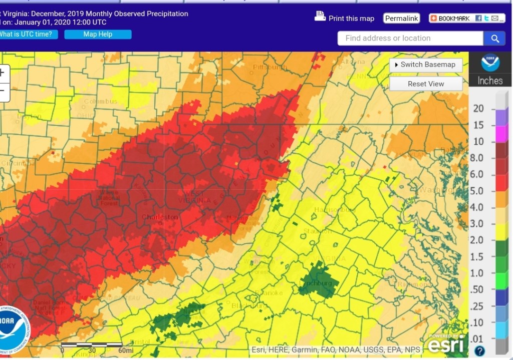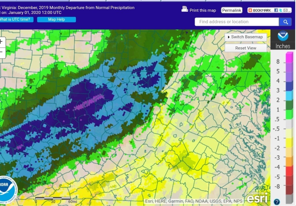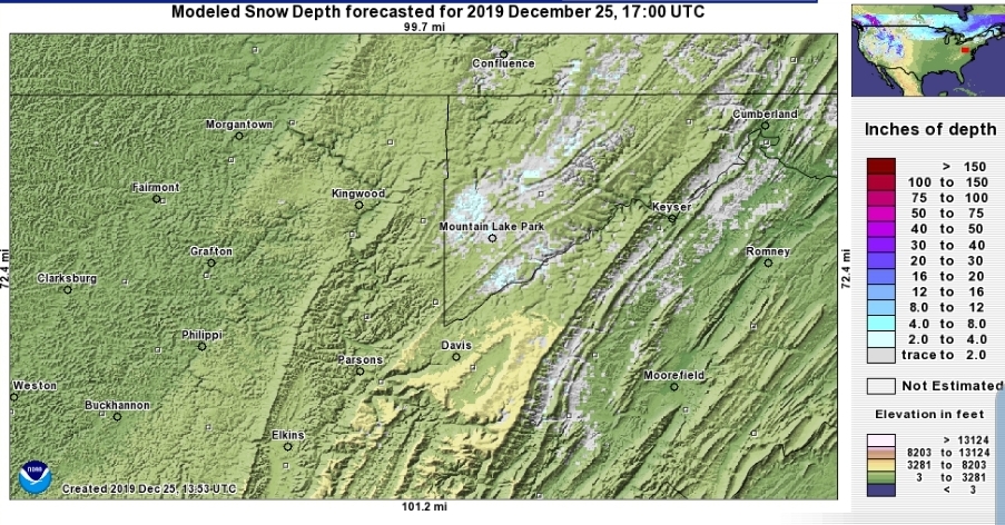 The continuation of the SW flow aloft has put a halt on winter across the high ground. Over the next few weeks, the hope’s of sustained winter look bleak. What is beyond that period is anyone’s guess. If history is the example, January may have little in the way of sustained winter. With a large pool of very warm water off the southeast coast, into the gulf, the dreaded 500mb ridge sits in place like a giant. At times it gets attacked, weakens, but feeds back and builds over those warm waters. This causes a storm track to our west, in some instances far enough west the rain even misses to the west and other instances we get the rain to snow scenario. A few in the area, mainly north in Garrett, and north and east into the lower elevations, some cold air can be left in tack from departing cold to allow for some ice. Upcoming, that doesn’t look to be the case without cold highs to our north.