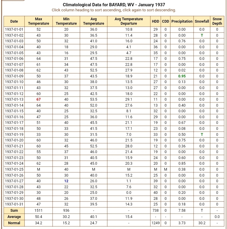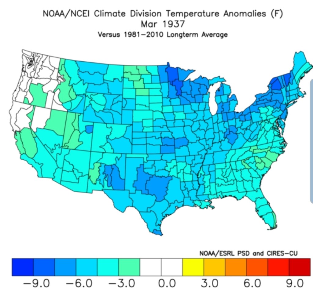 Feb of 1937 seen some variability in temps, that ended in a overall normal month