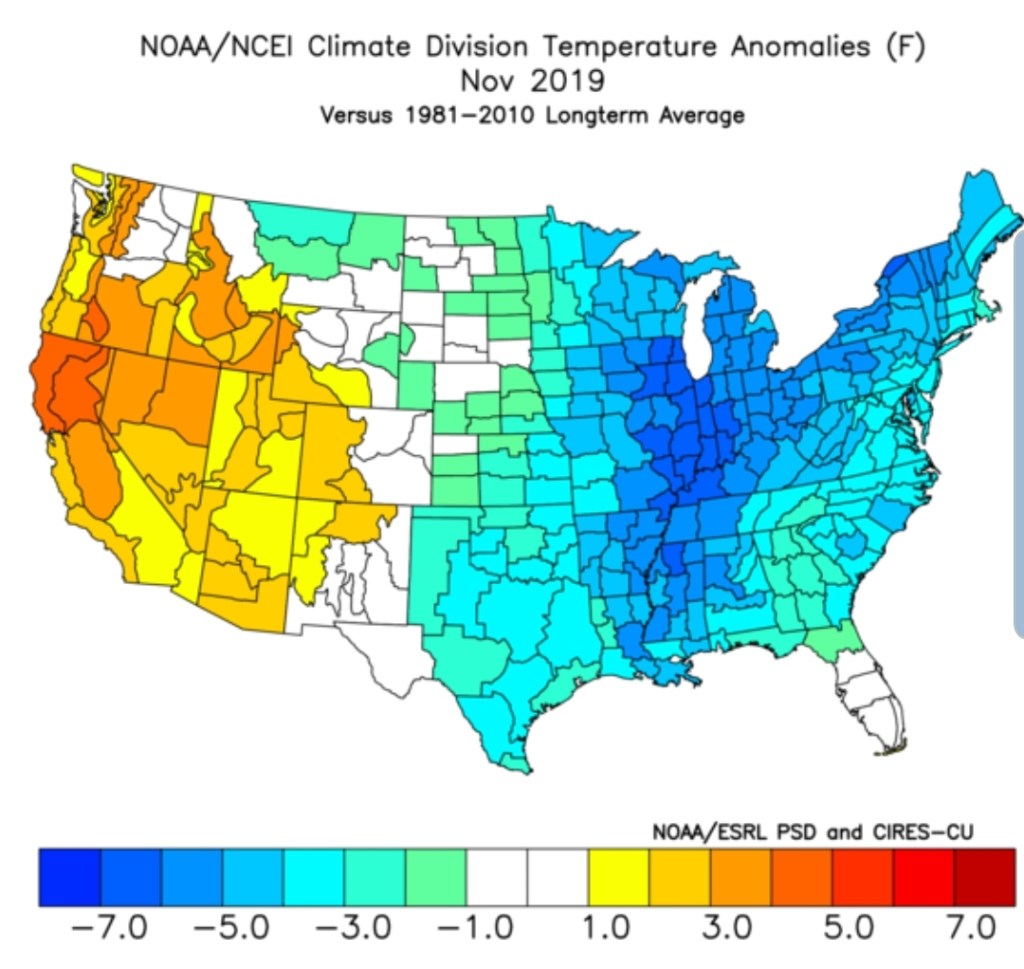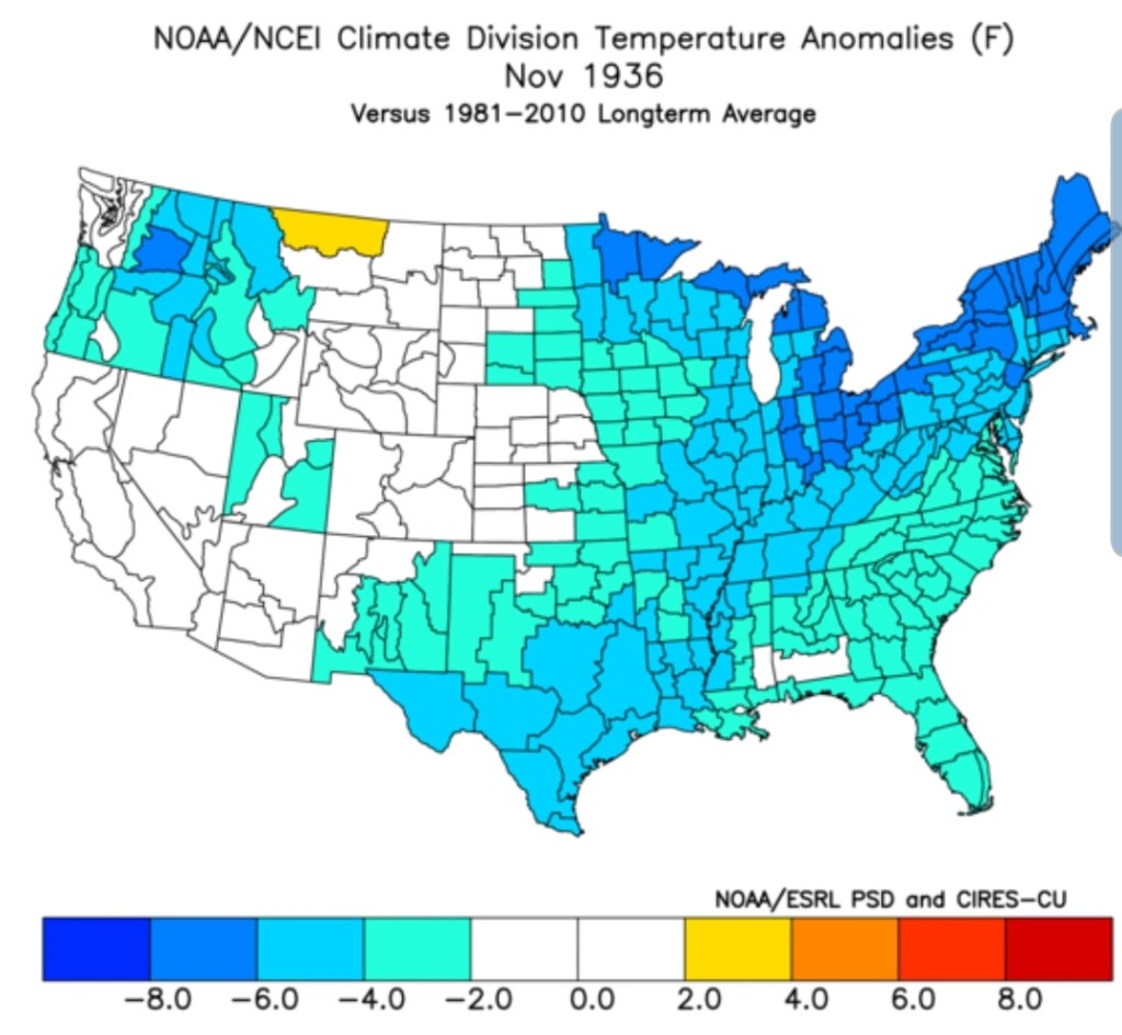 November 1936, November 2019….the coldest area is centered in much the same area.