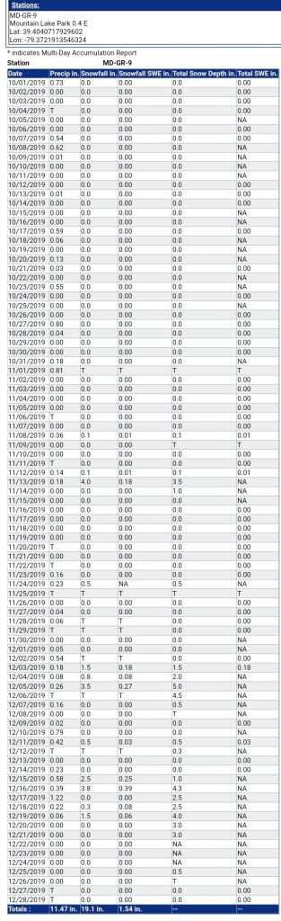 Station at Sines Deep Creek, not exactly my location- was at 20.6″ on the season