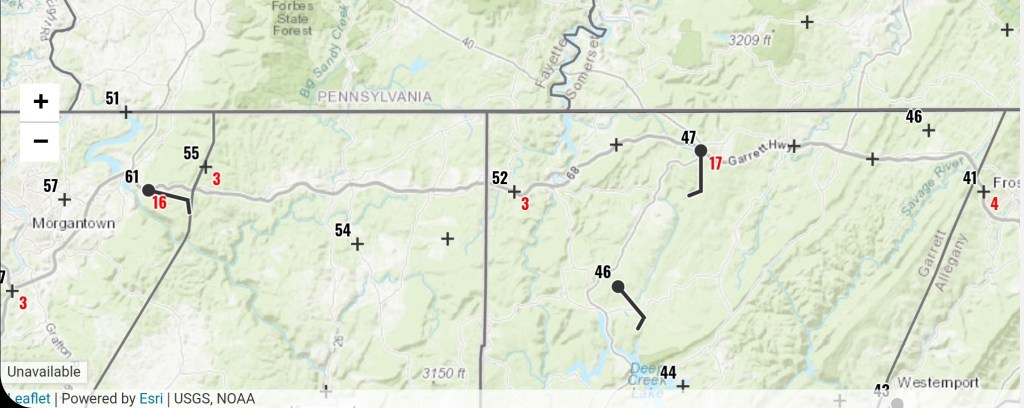 Case in point, this morning the separation from Savage Mt in east Garrett to Cabin Mt in Tucker is evident