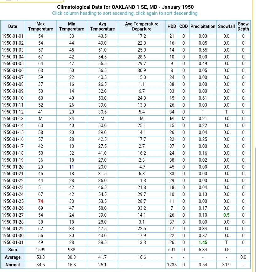 Oakland snowfall through January 37. A monthly jump from 18 to 22.