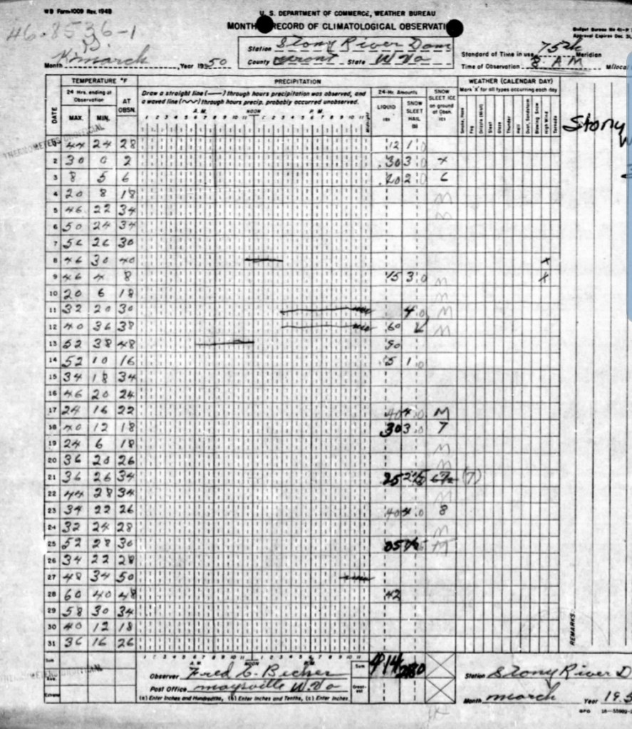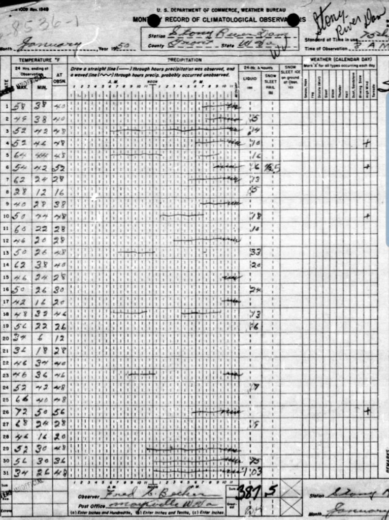 Back up to the Stony River Dam site. No longer in existence, but it provides some data pre Canaan co-op days