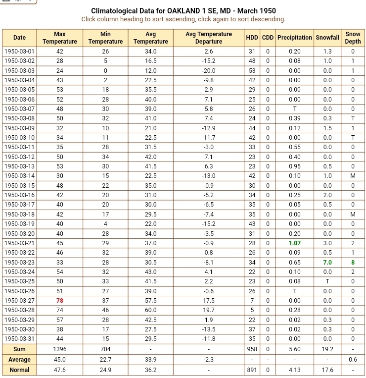 *this site has missing data. In all appearances it’s highly likely they only recorded in snowfall obs when it occured.