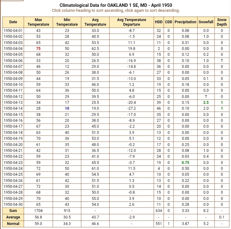 Some of that variability in temperature can be seen here at the Oakland site. Each bar representing the max/min. Lots of up and down swings through the 2nd half of the winter with colder air outweighing the warmth, but even then, some warmth was still existent.