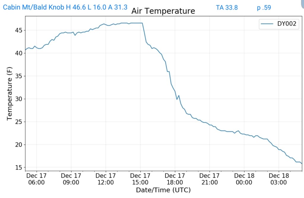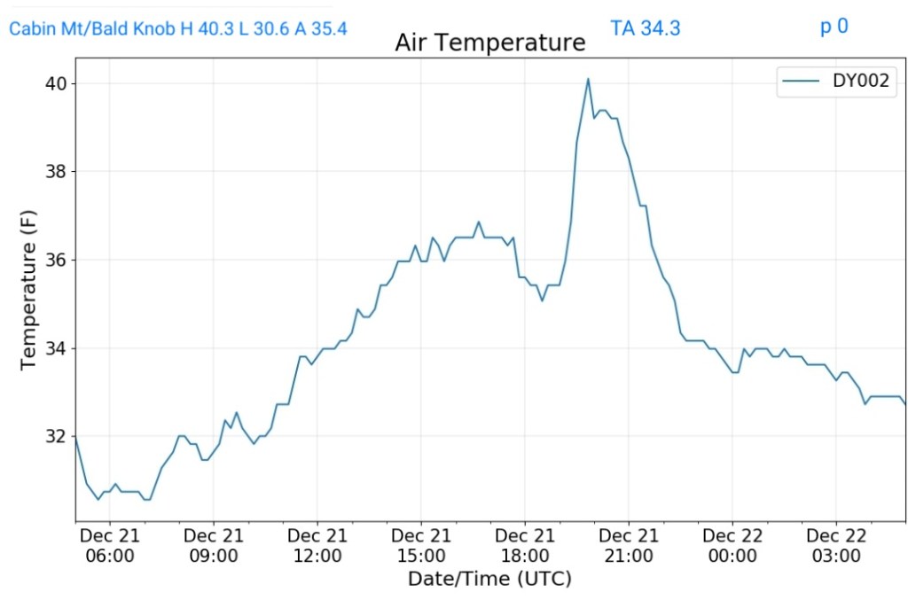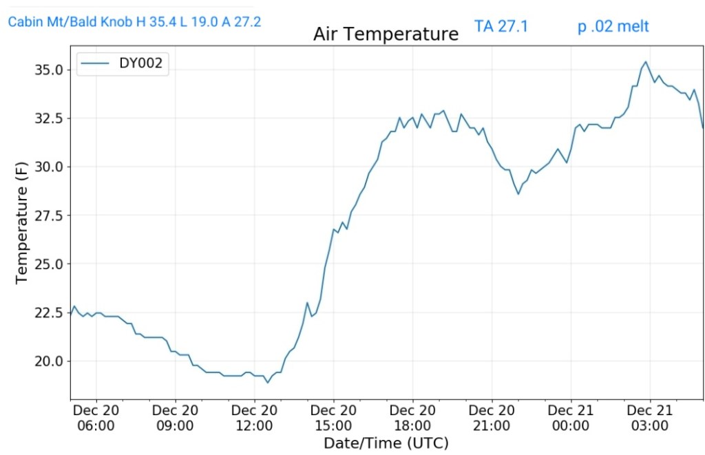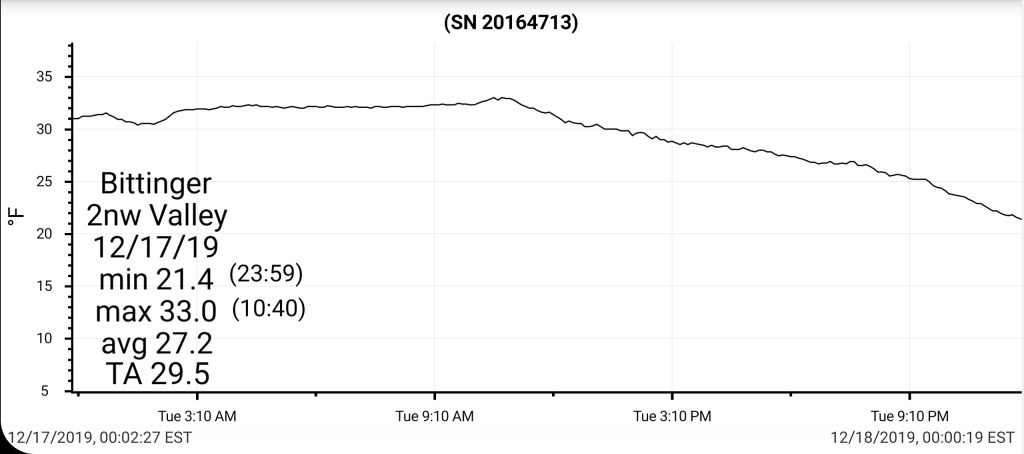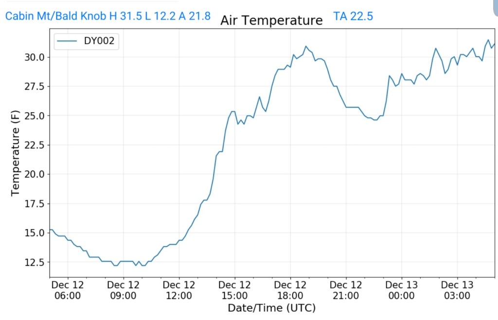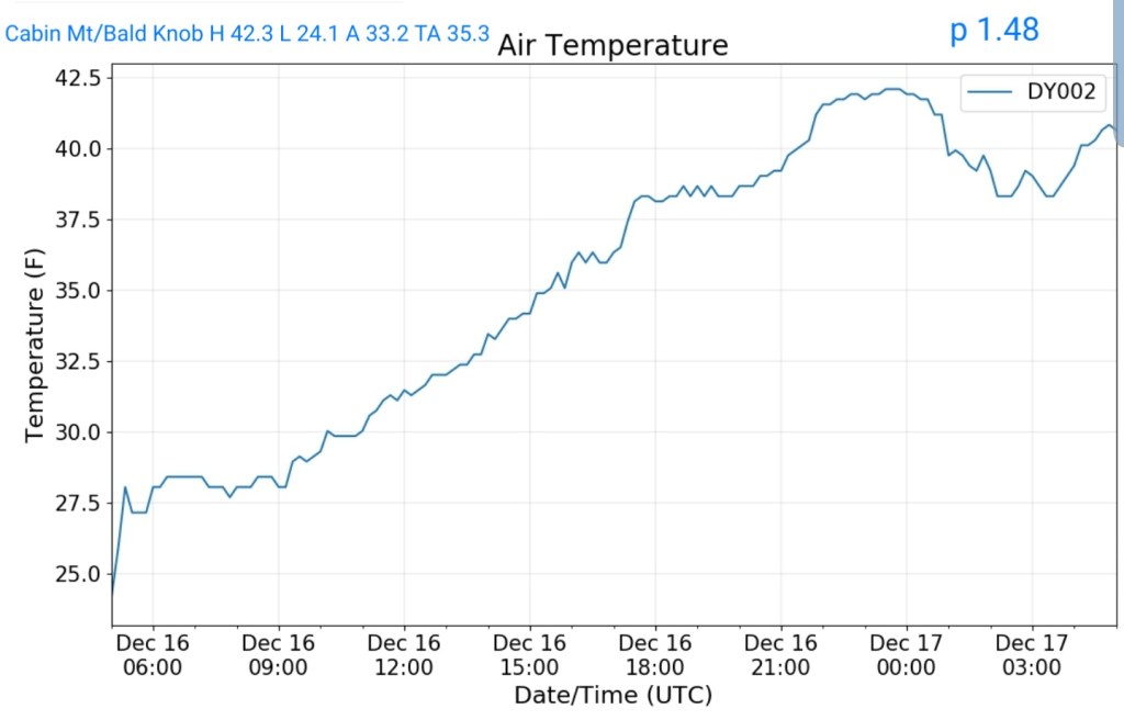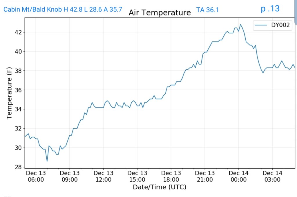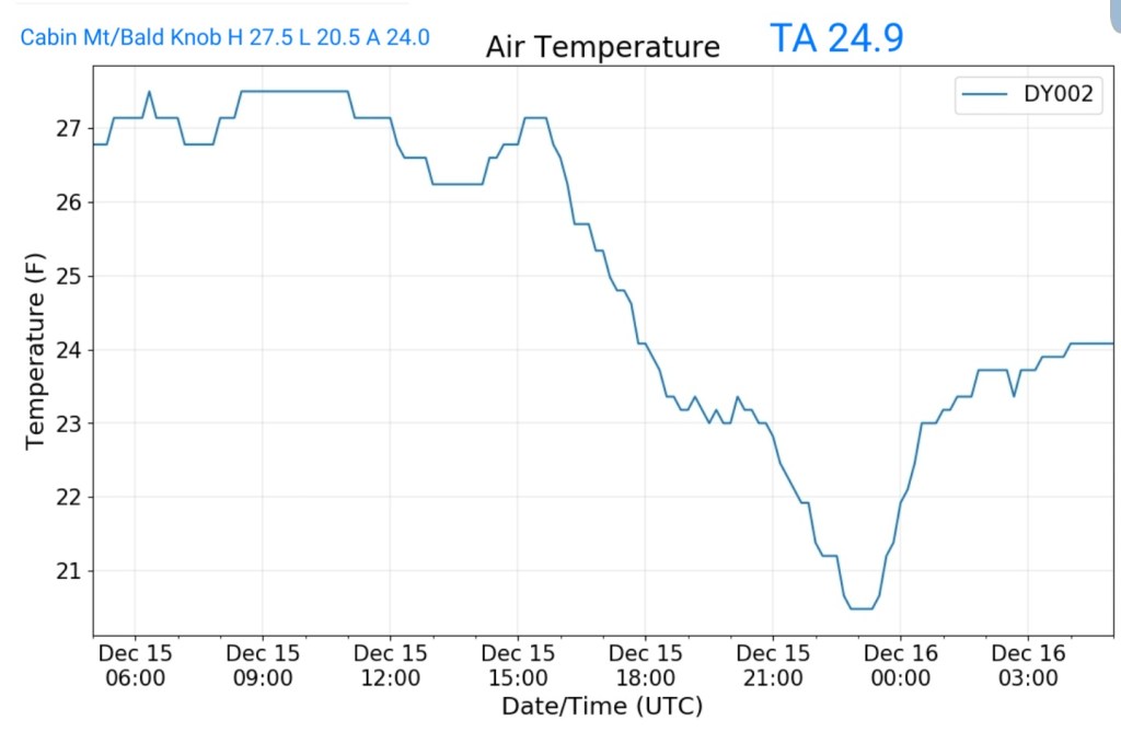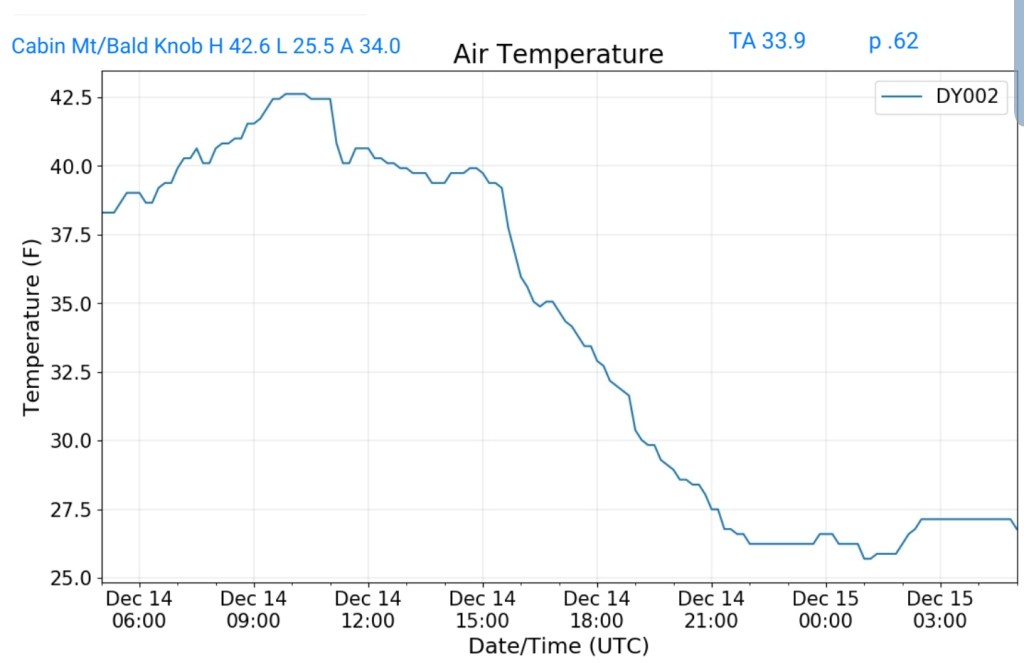 A variety of weather in the area. The classic ice zones got some light glaze, the valleys on the east side of the Mts picked up a quicker glaze in the morning that lead to very slick conditions. Temps varied as you’ll see below and the RTMA gives a good handle. Some deeper colder valleys held below 32.