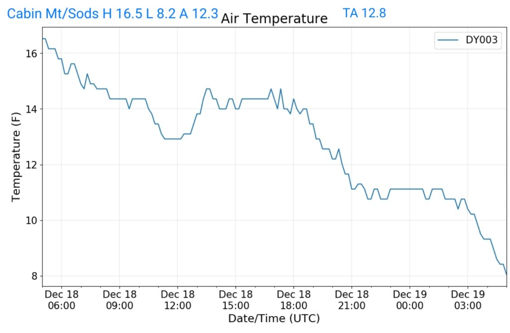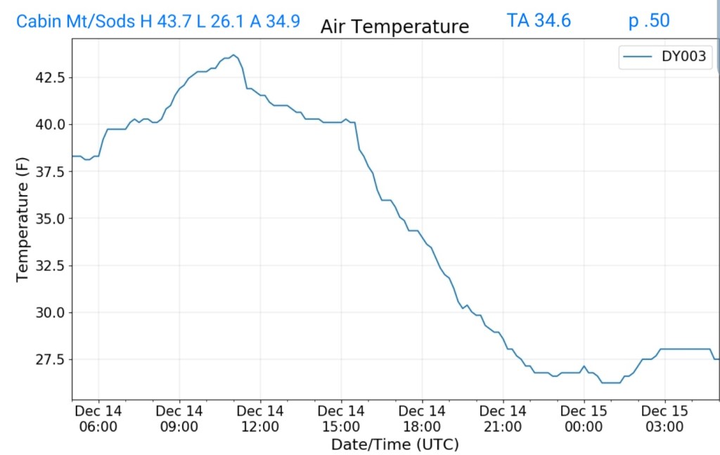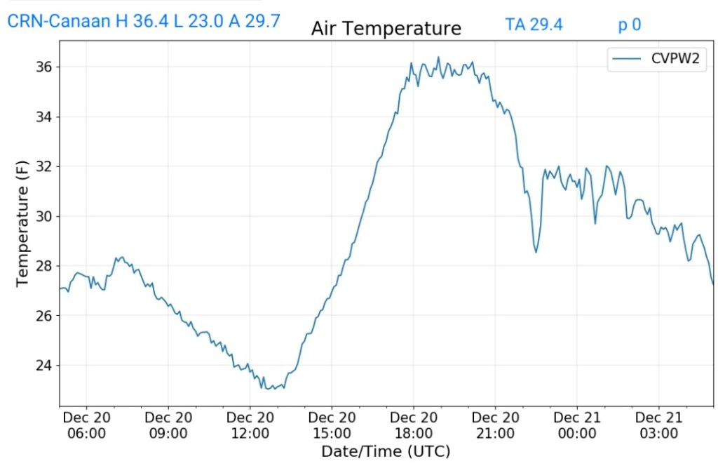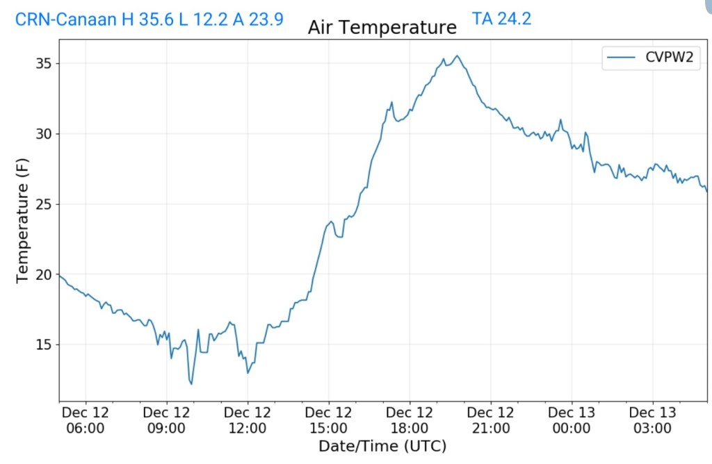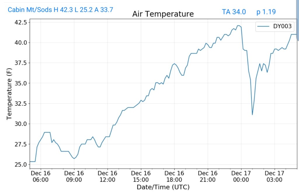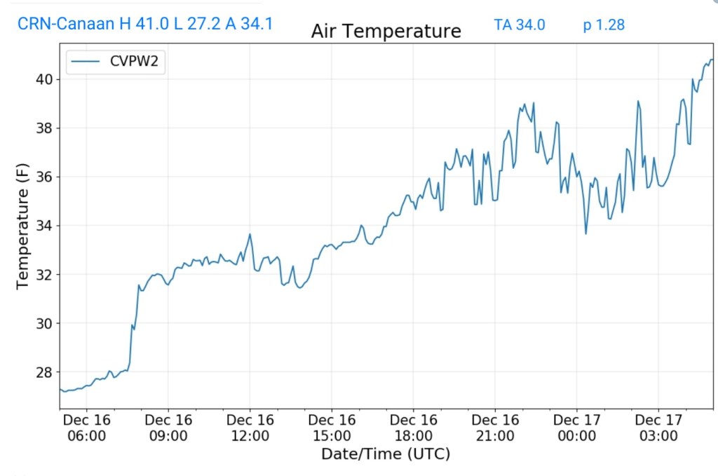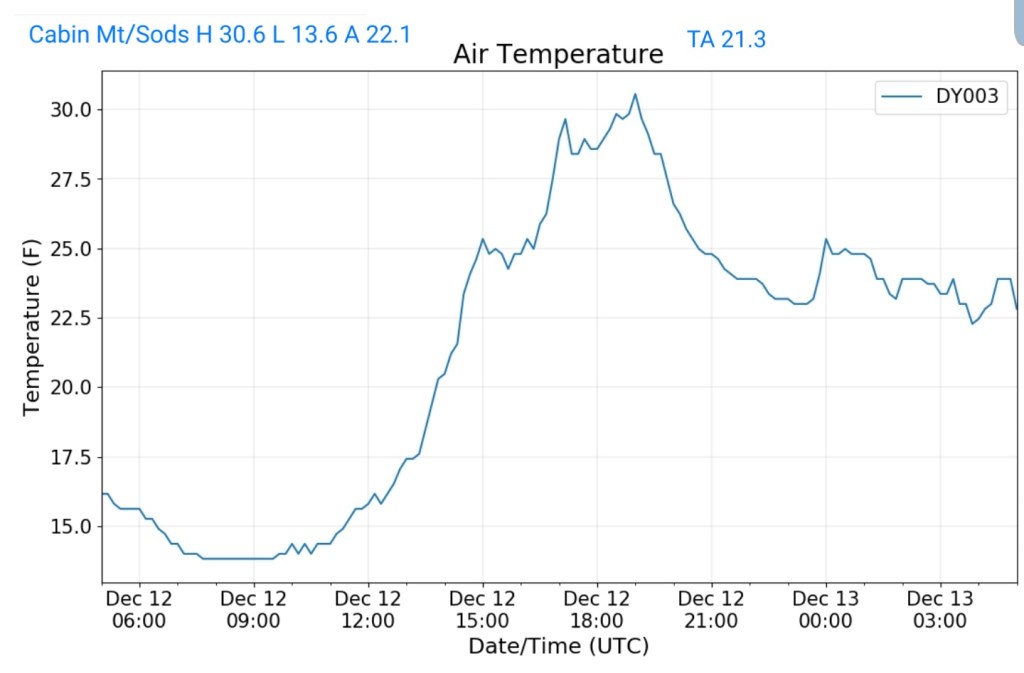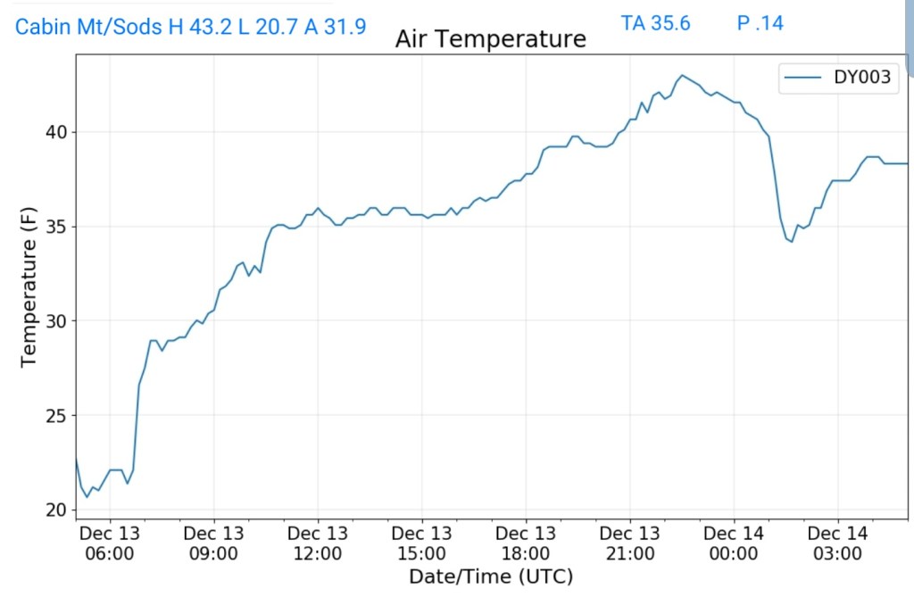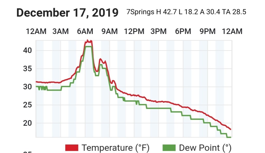 A variety of weather in the area. The classic ice zones got some light glaze, the valleys on the east side of the Mts picked up a quicker glaze in the morning that lead to very slick conditions. Temps varied as you’ll see below and the RTMA gives a good handle. Some deeper colder valleys held below 32.
