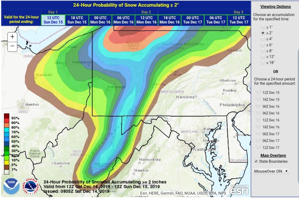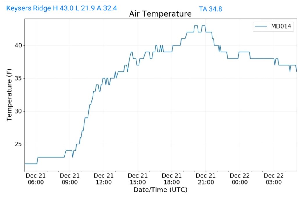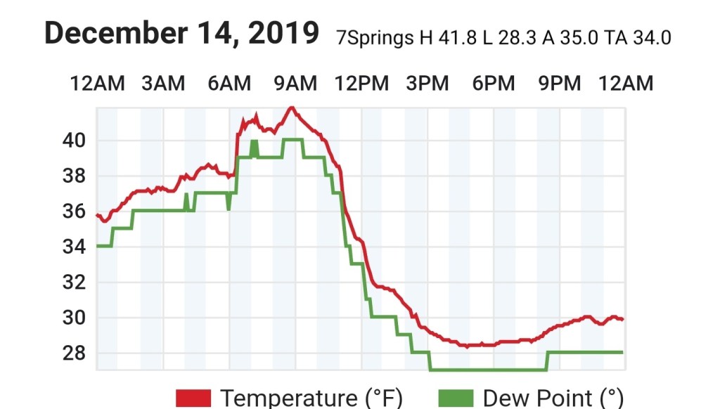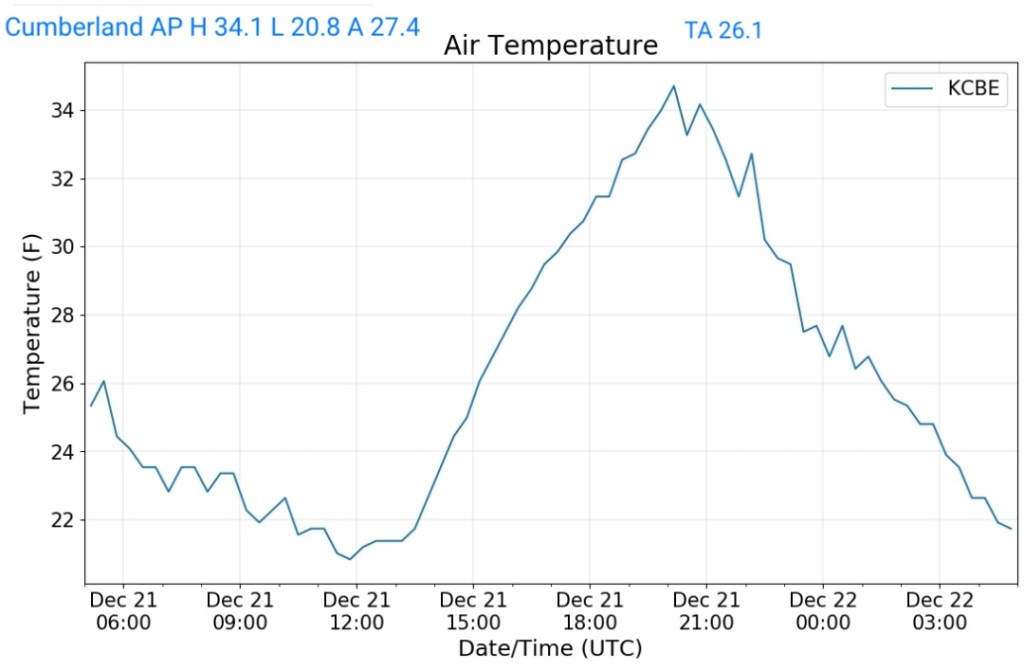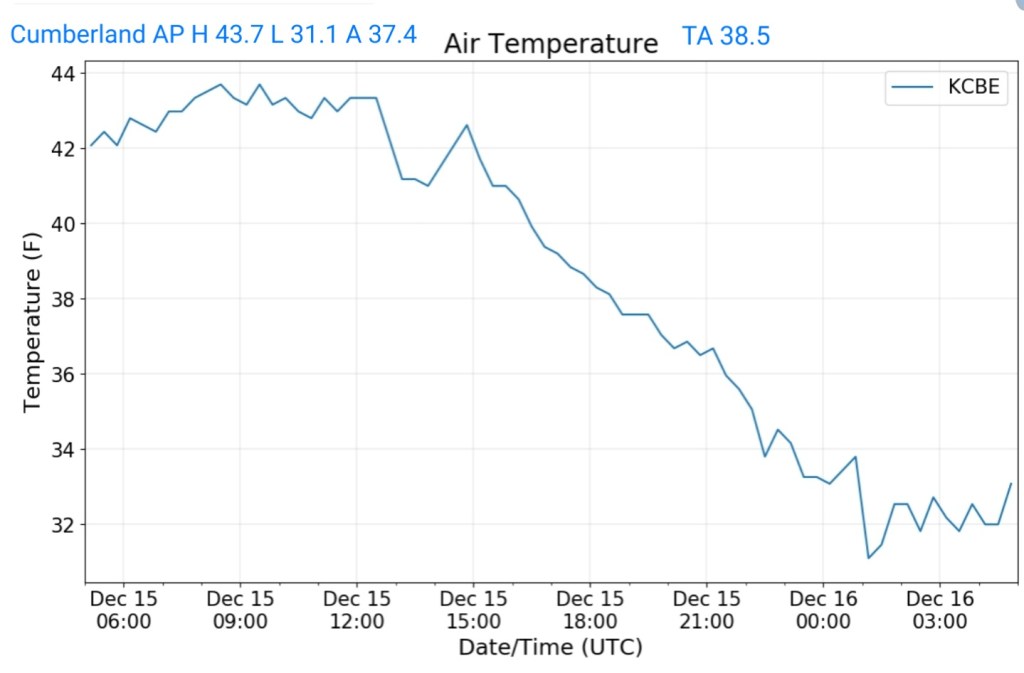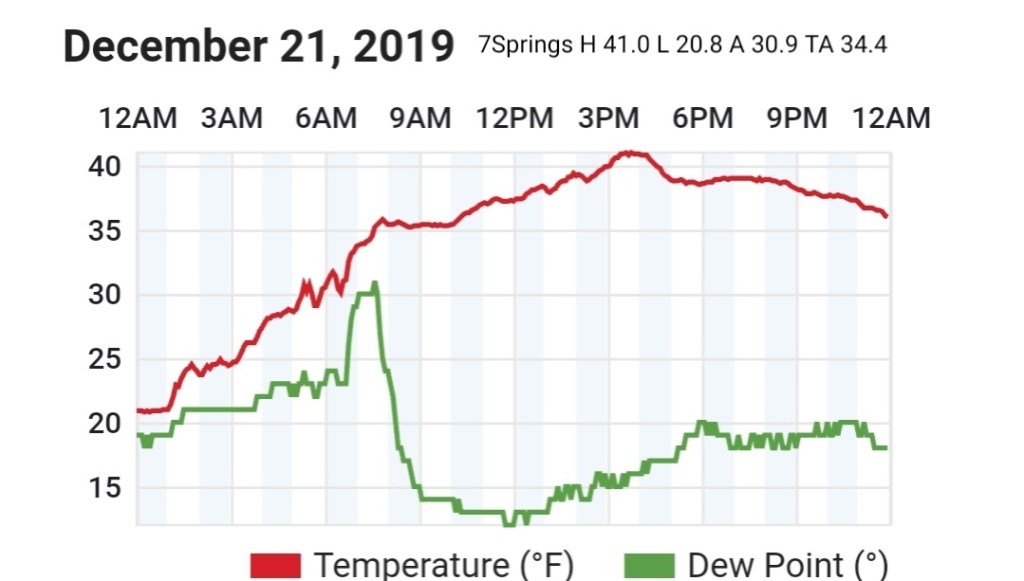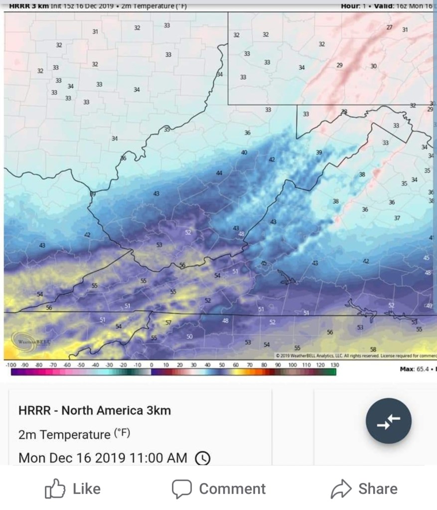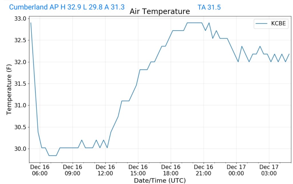 Light precip pushes in to the southern areas in the region in the morning. Main concern is a light freezing rain glazing things over. This pushes north through the day. Overall precip is mostly light. Tomorrow night, any areas in the classic high elevation ice zones(those same spots that’s saw ice on Dec 1) that are typical holdouts for freezing rain, those areas will rise +32 early in the night. The remaining areas to watch for freezing rain turns to the deeper valleys, the Savage River valleys and valleys mainly east of the Allegheny Front. Those pockets may hold below freezing into Saturday morning.