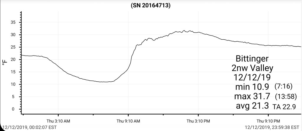 For Garrett… lots of areas colder than forecast mins for daytime maxes today. Temps slow to rise overnight…the mins are and will be colder than forecast.