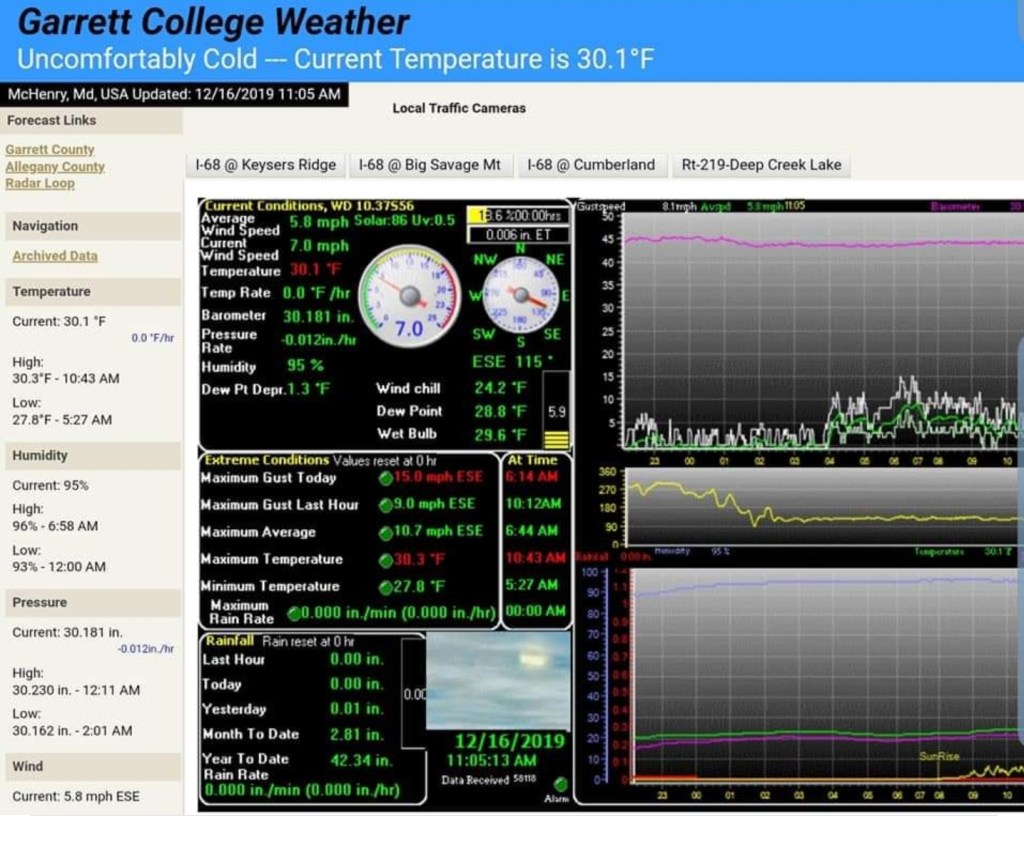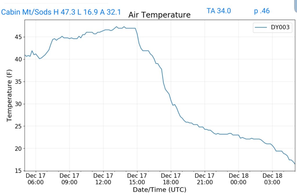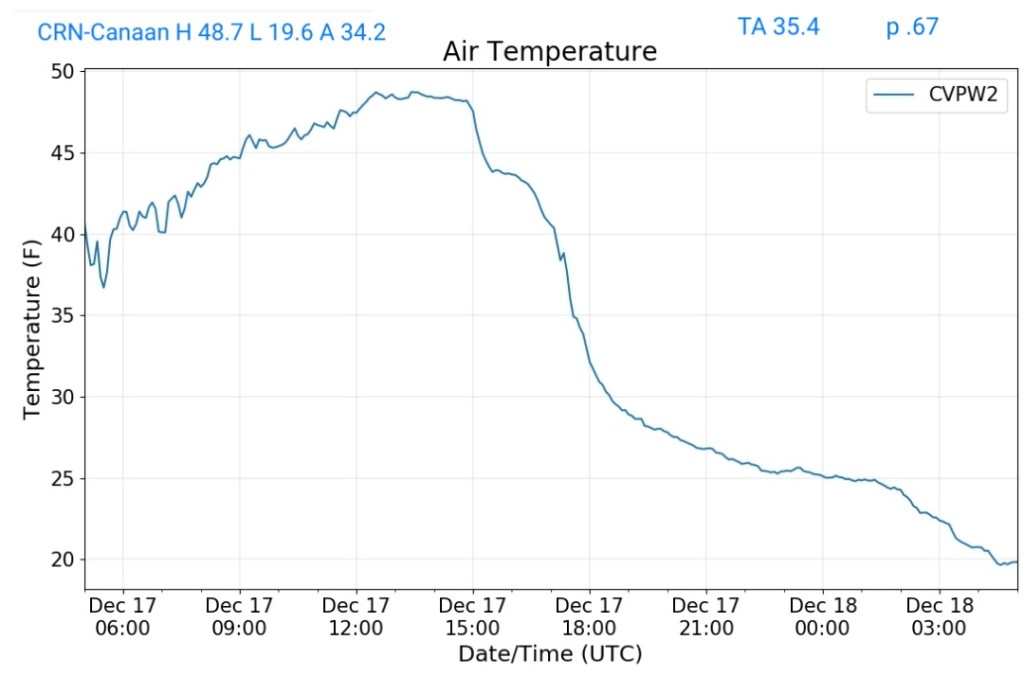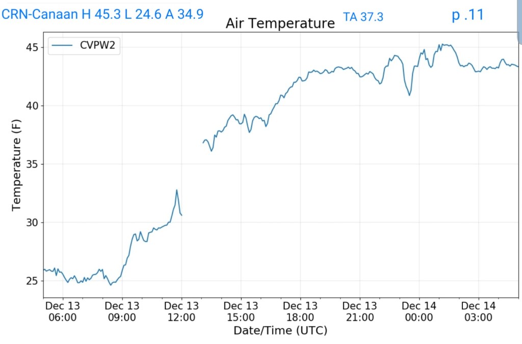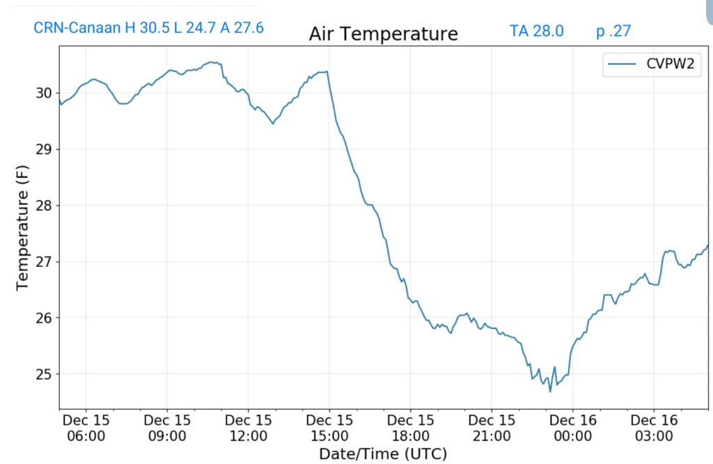Due to the power outage, data is missing for the first 10 hours today. That leaves today’s data incomplete at GCC. The min temp does stand as the min as that occured after power was restored.