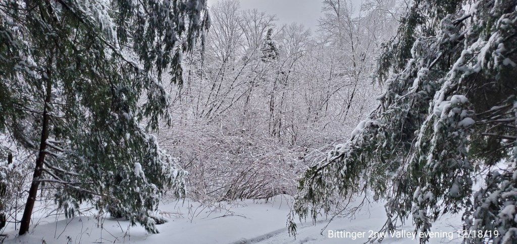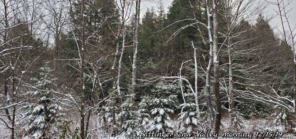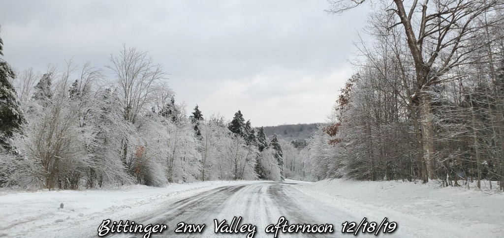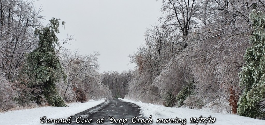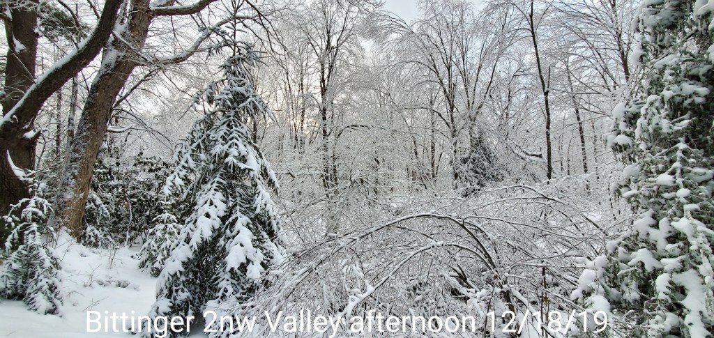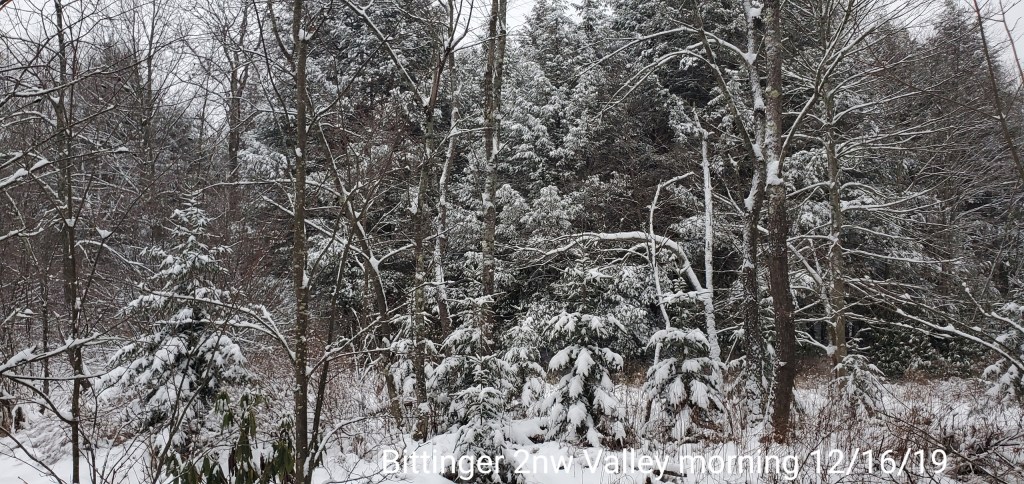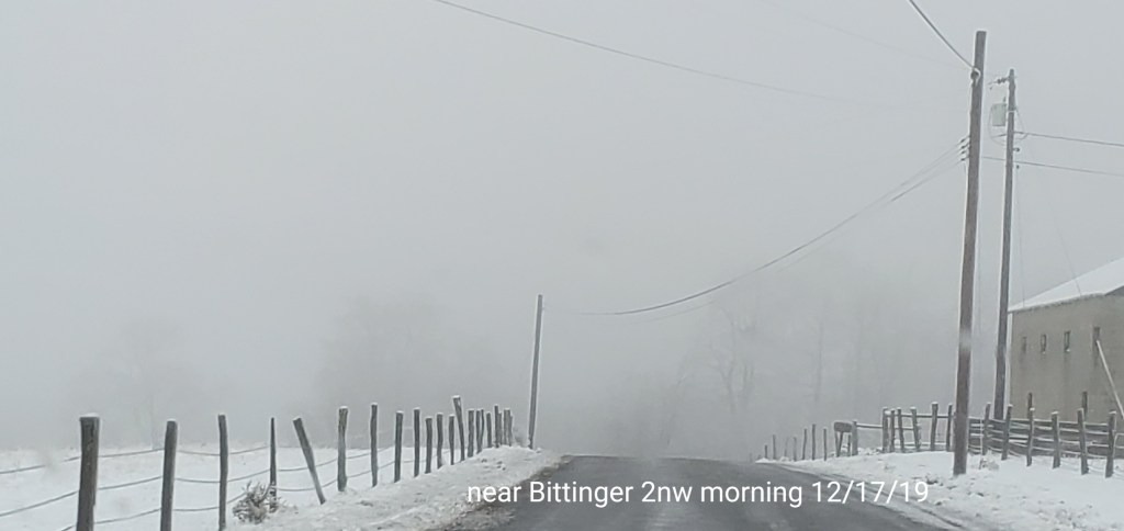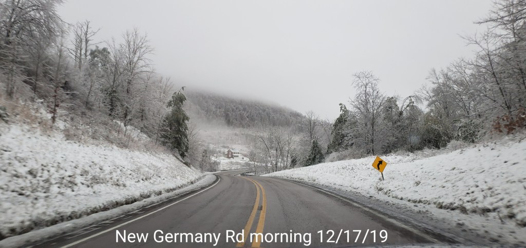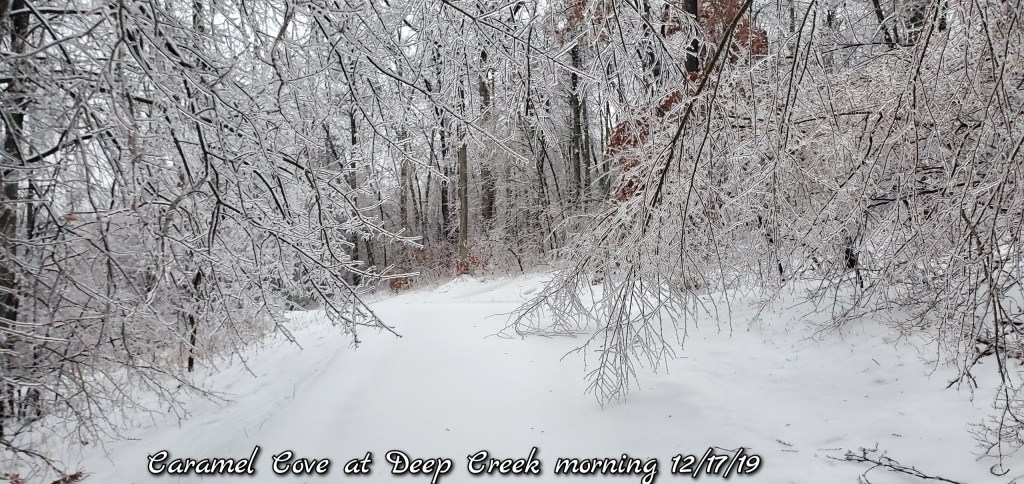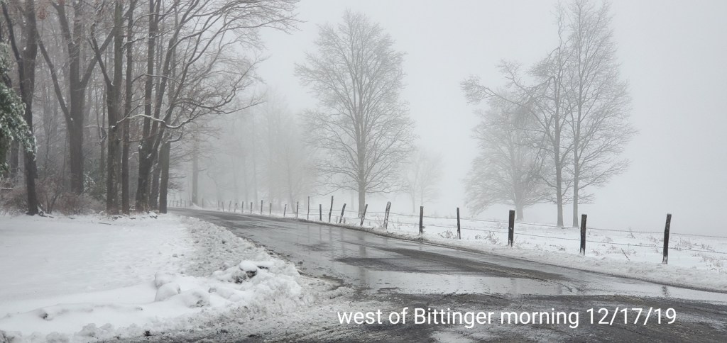 Ice ice baby. Major ice event across the eastern half of Garrett, and in some instances stretched into western Garrett. Overnight as far west as Preston County, before temps moderated there. Trees, limbs began falling 9-10pm and with that, power outages began. Some roadways blocked. All the while, very mild air and a rain out just to the south in Wv. Temps fell to the upper 20s at Mt.Storm early overnight last night, but sat at 50 this morning while below freezing remained in areas in Garrett. A brief surge of milder air came across mid morning, however not enough to scour out the cold in the high valleys in Garrett. The highest elevated areas in the ice zone lost more ice than the lower elevated areas with the brief mild surge that was followed by wind and colder air by midday. Leftover rain today changed to snow early afternoon as the colder air returned. Ice never came off the trees. Some high ground saw a little more melt than valleys in central Garrett with the slightest intrusion of mild air mid morning.