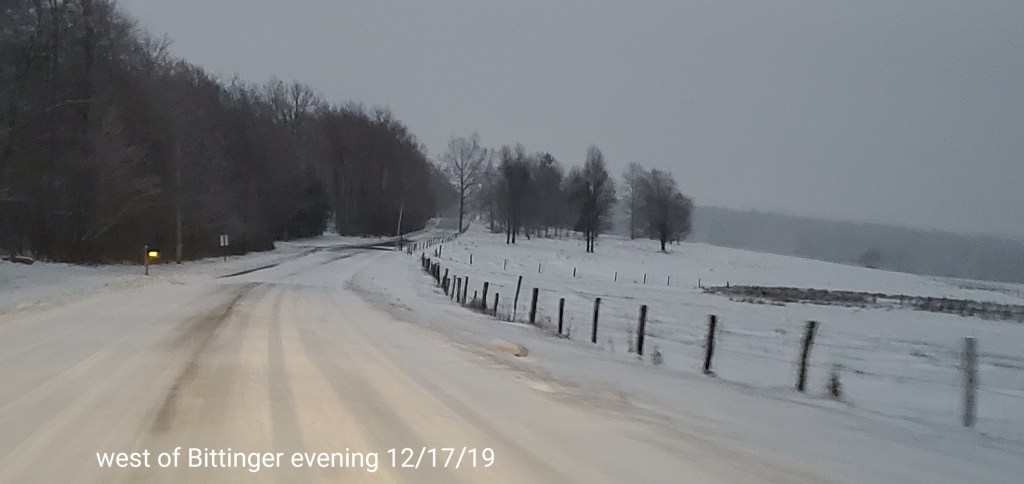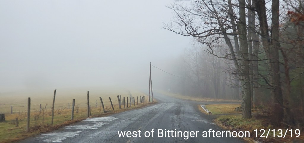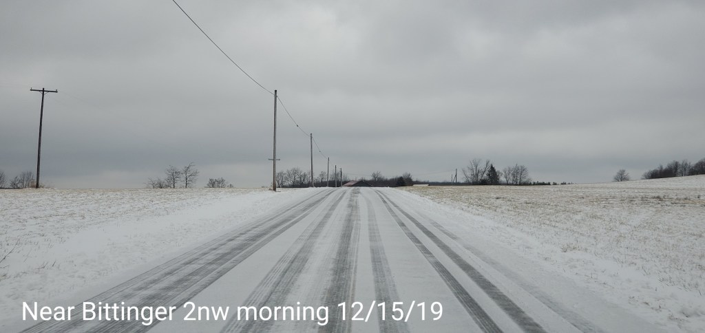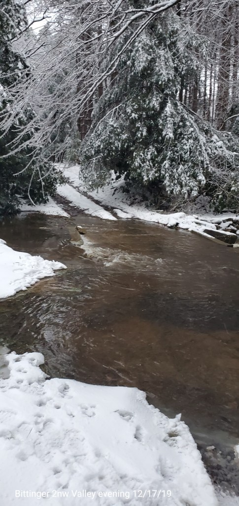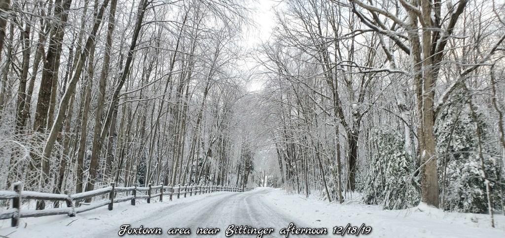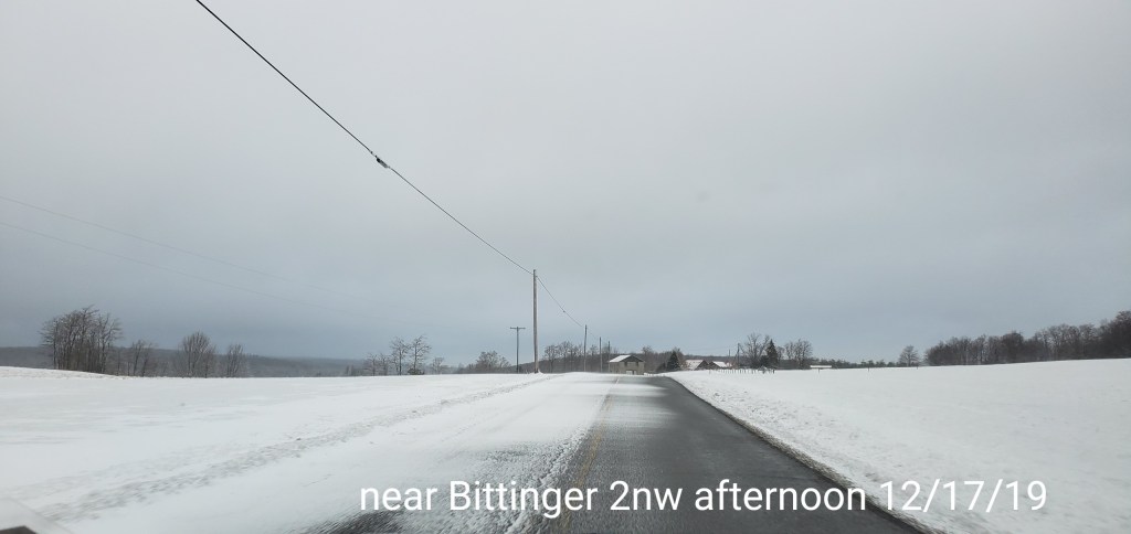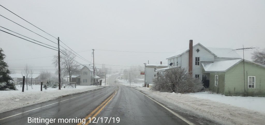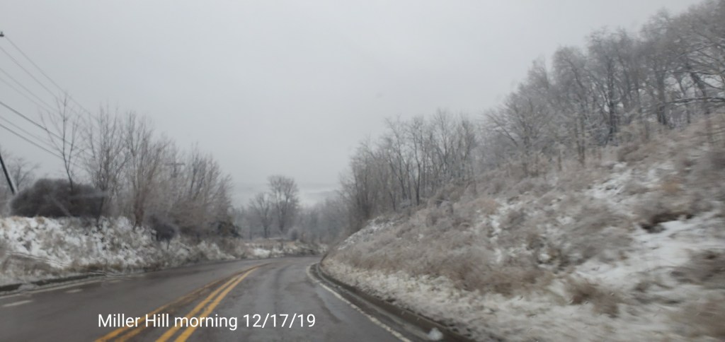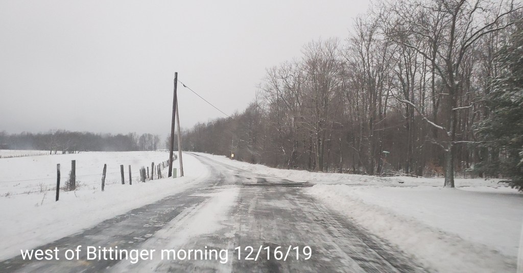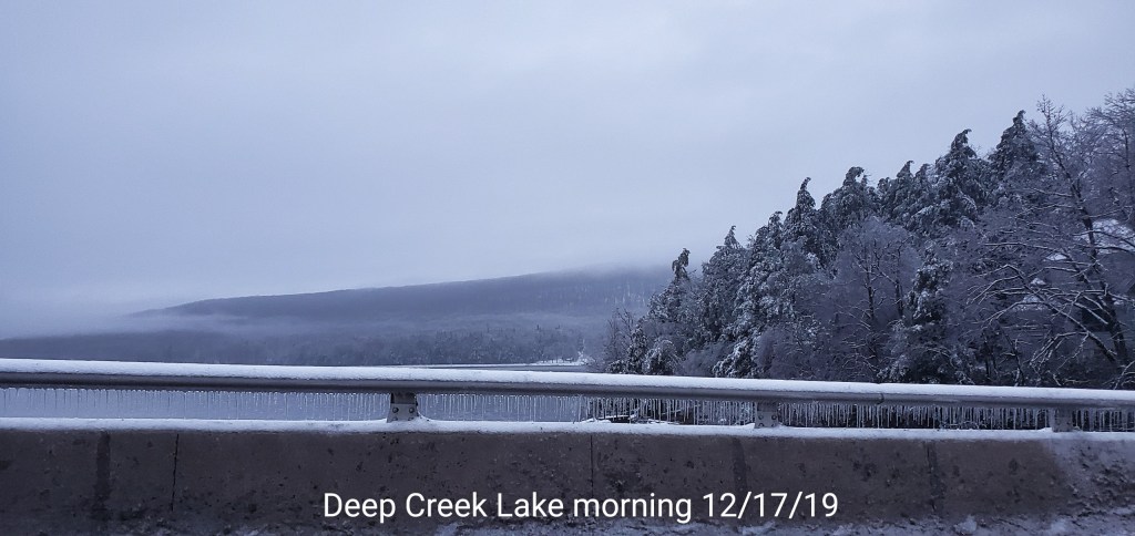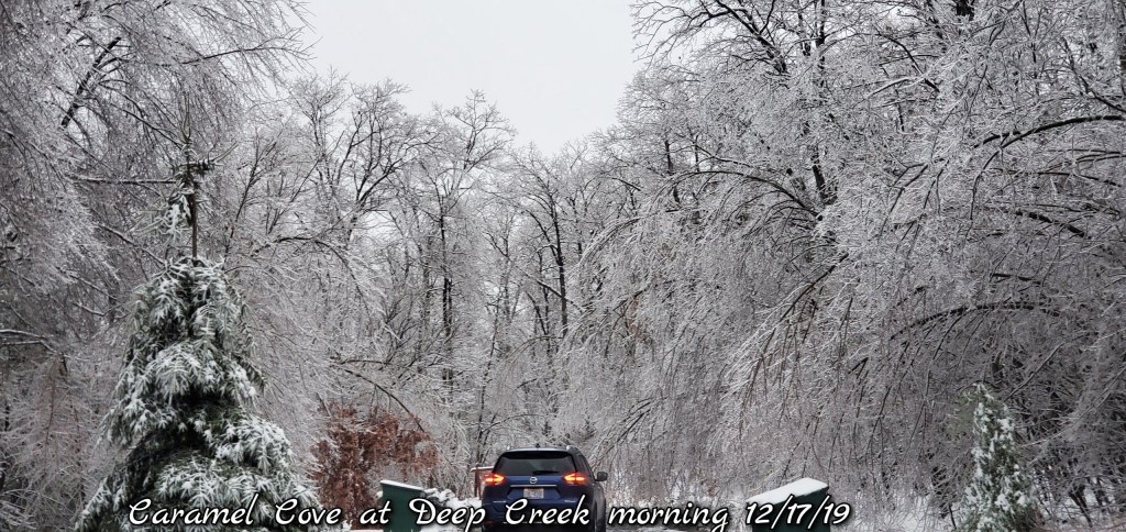 Ice ice baby. Major ice event across the eastern half of Garrett, and in some instances stretched into western Garrett. Overnight as far west as Preston County, before temps moderated there. Trees, limbs began falling 9-10pm and with that, power outages began. Some roadways blocked. All the while, very mild air and a rain out just to the south in Wv. Temps fell to the upper 20s at Mt.Storm early overnight last night, but sat at 50 this morning while below freezing remained in areas in Garrett. A brief surge of milder air came across mid morning, however not enough to scour out the cold in the high valleys in Garrett. The highest elevated areas in the ice zone lost more ice than the lower elevated areas with the brief mild surge that was followed by wind and colder air by midday. Leftover rain today changed to snow early afternoon as the colder air returned. Ice never came off the trees. Some high ground saw a little more melt than valleys in central Garrett with the slightest intrusion of mild air mid morning.