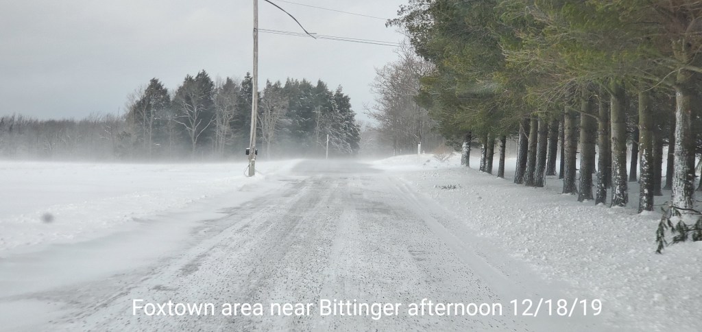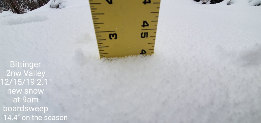 Snowfall- .8″ yesterday afternoon through overnight till 6am , no boardsweep done. Through 5pm another 2.3″ from snowshowers and squalls today for an event total of 3.1″