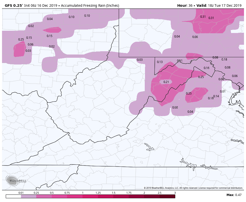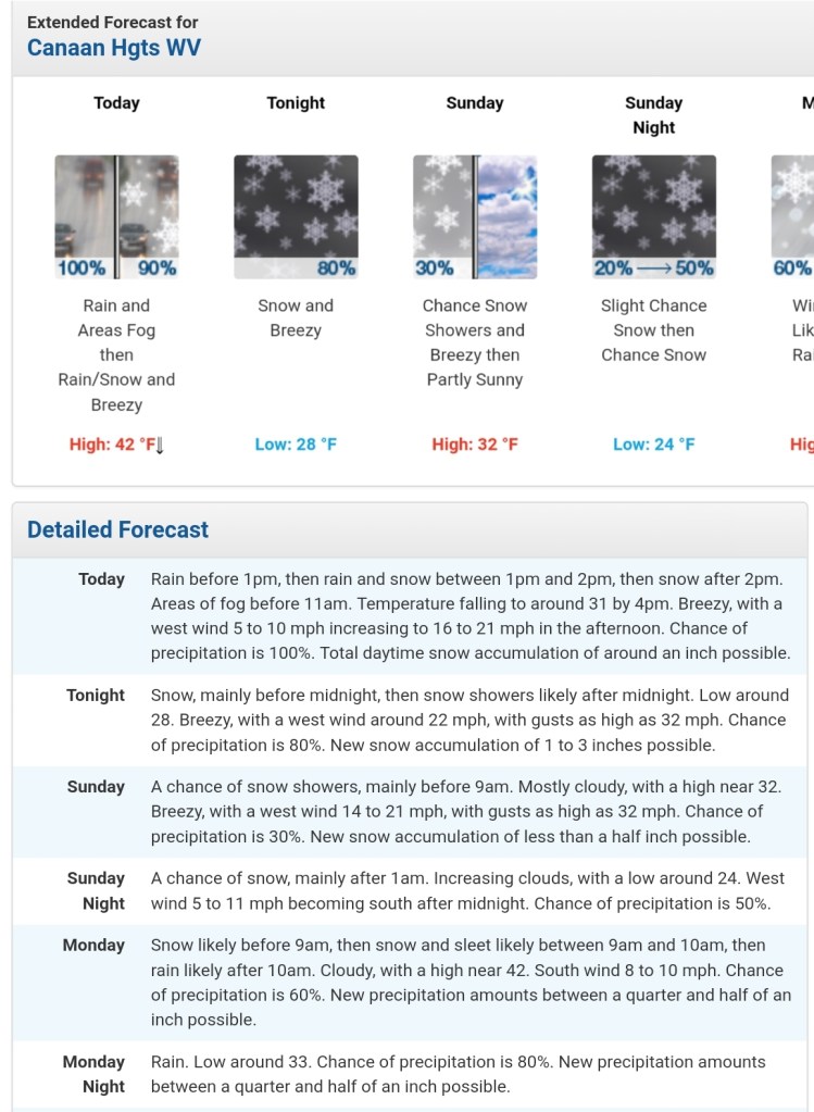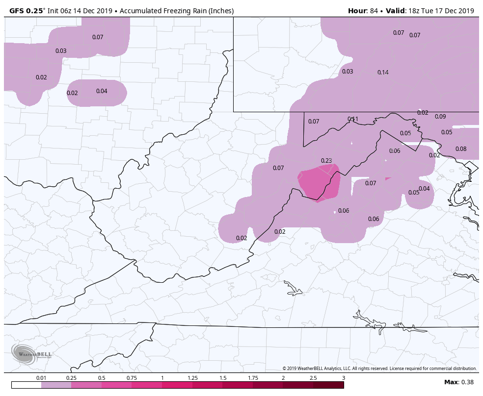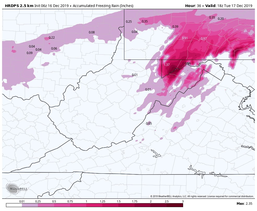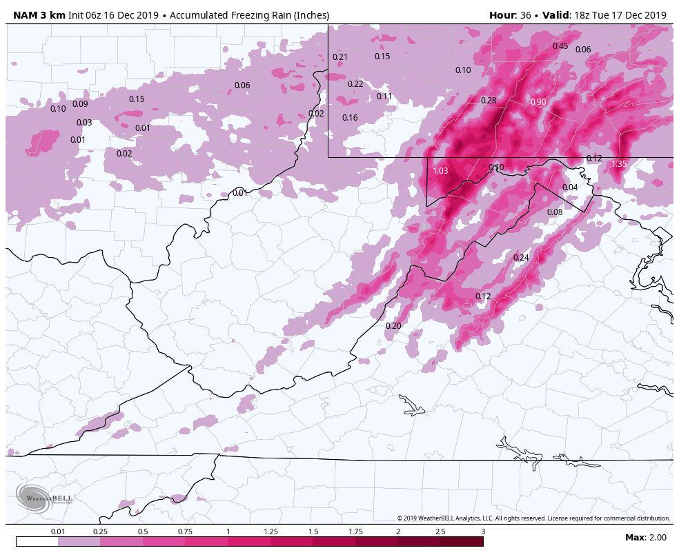 The high WV ground will be the first to change and go to plain rain and will be the less icy of the region. However, it still remains to be seen just how quick that milder air gets in there. Freezing rain should occur back to Backbone and Canaan Mts briefly at least, unlike these past ones.