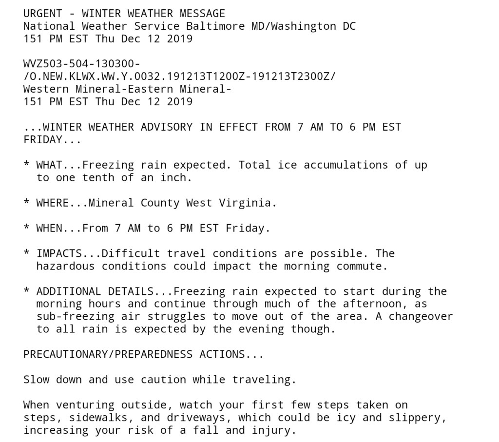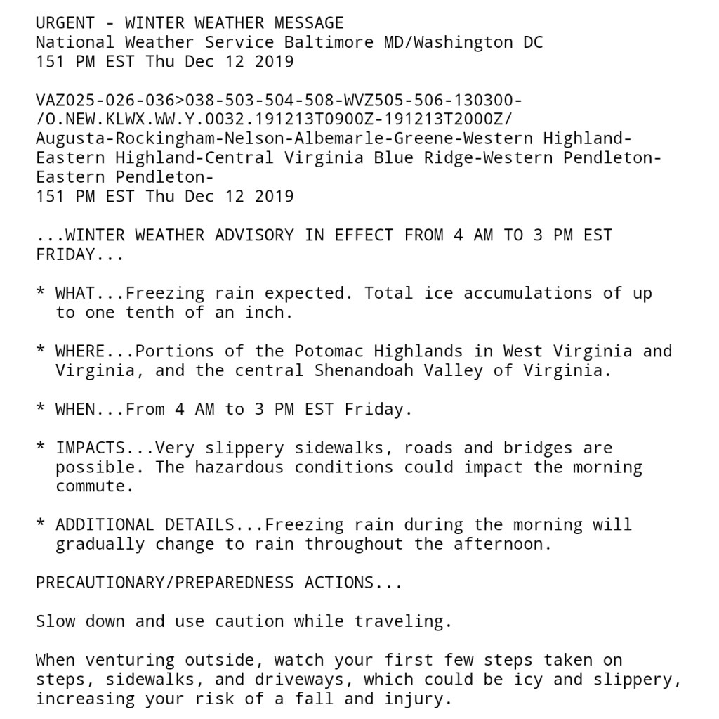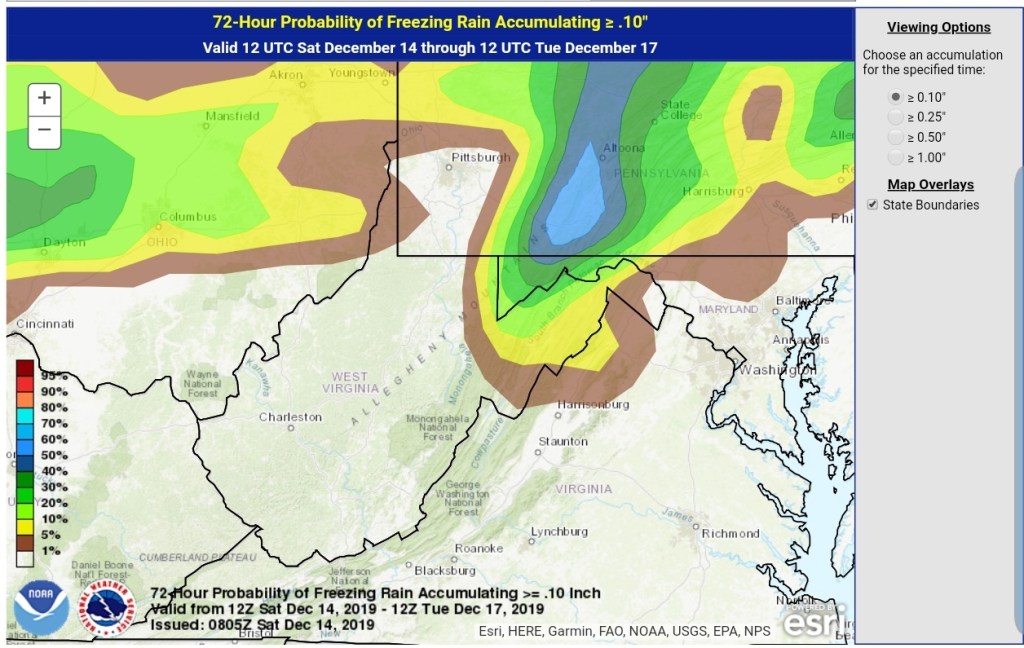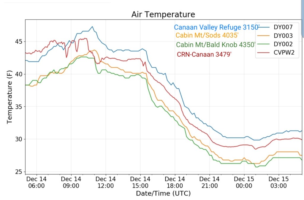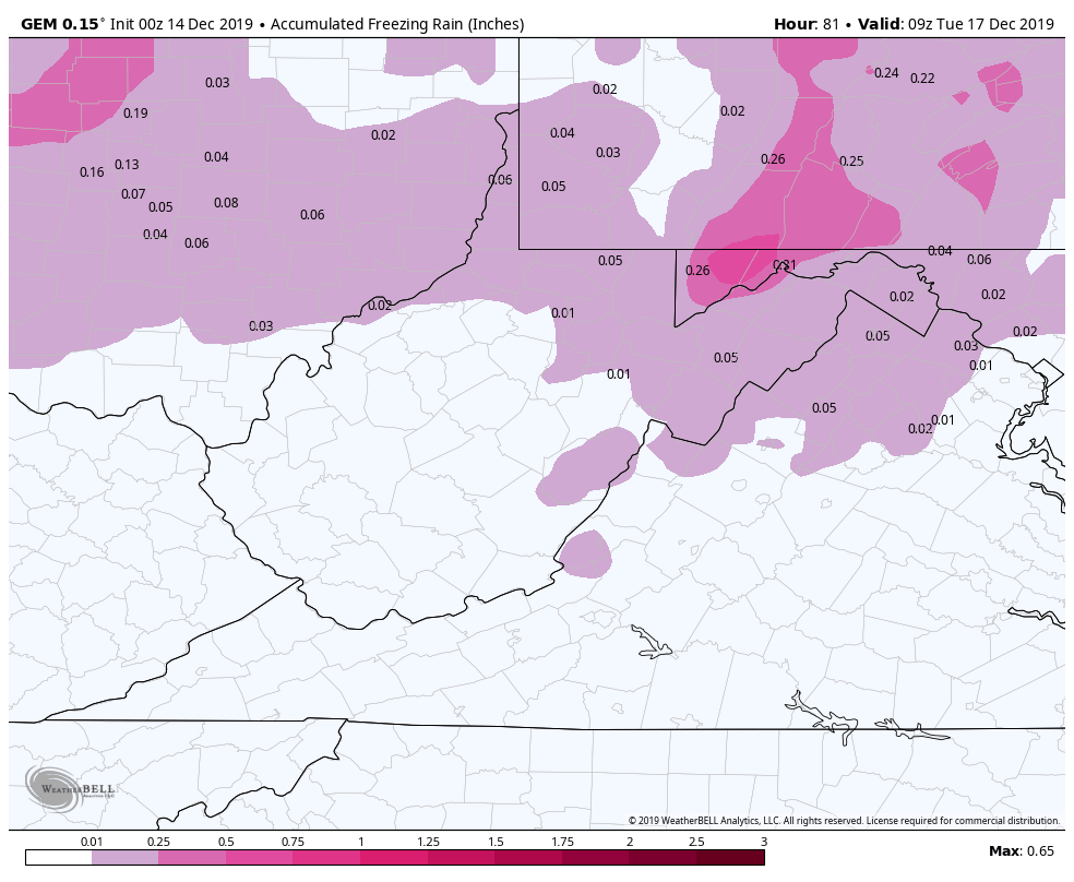 The high WV ground will be the first to change and go to plain rain and will be the less icy of the region. However, it still remains to be seen just how quick that milder air gets in there. Freezing rain should occur back to Backbone and Canaan Mts briefly at least, unlike these past ones.